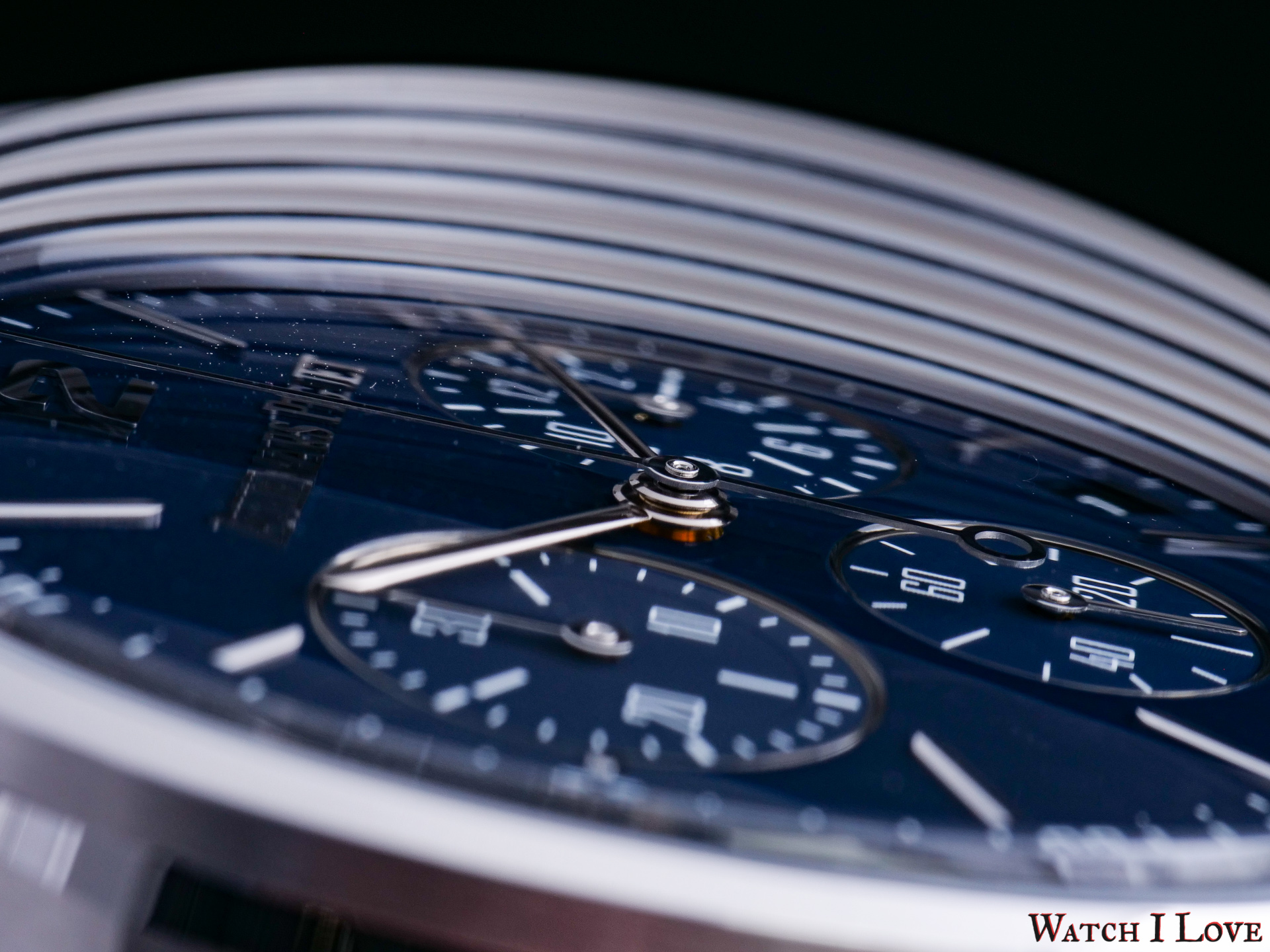 The watch offers good legibility. The baton indexes make a good delimitation of the hours. The three chrono subdials with relative large numerals and indexes are easy to read. The tachymetric scale from the inner bezel gives an even sportier connotation. The baton hands have a touch of a familiar feeling, the brand using often these simple style hands.