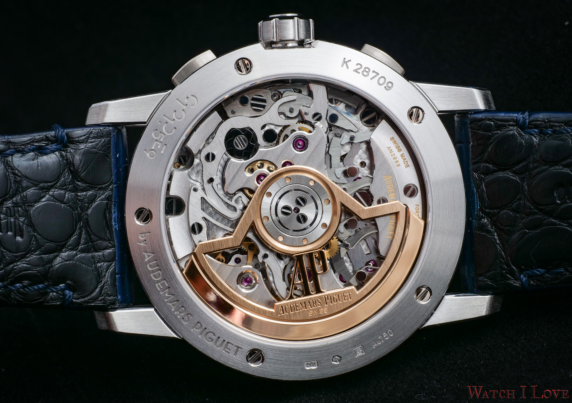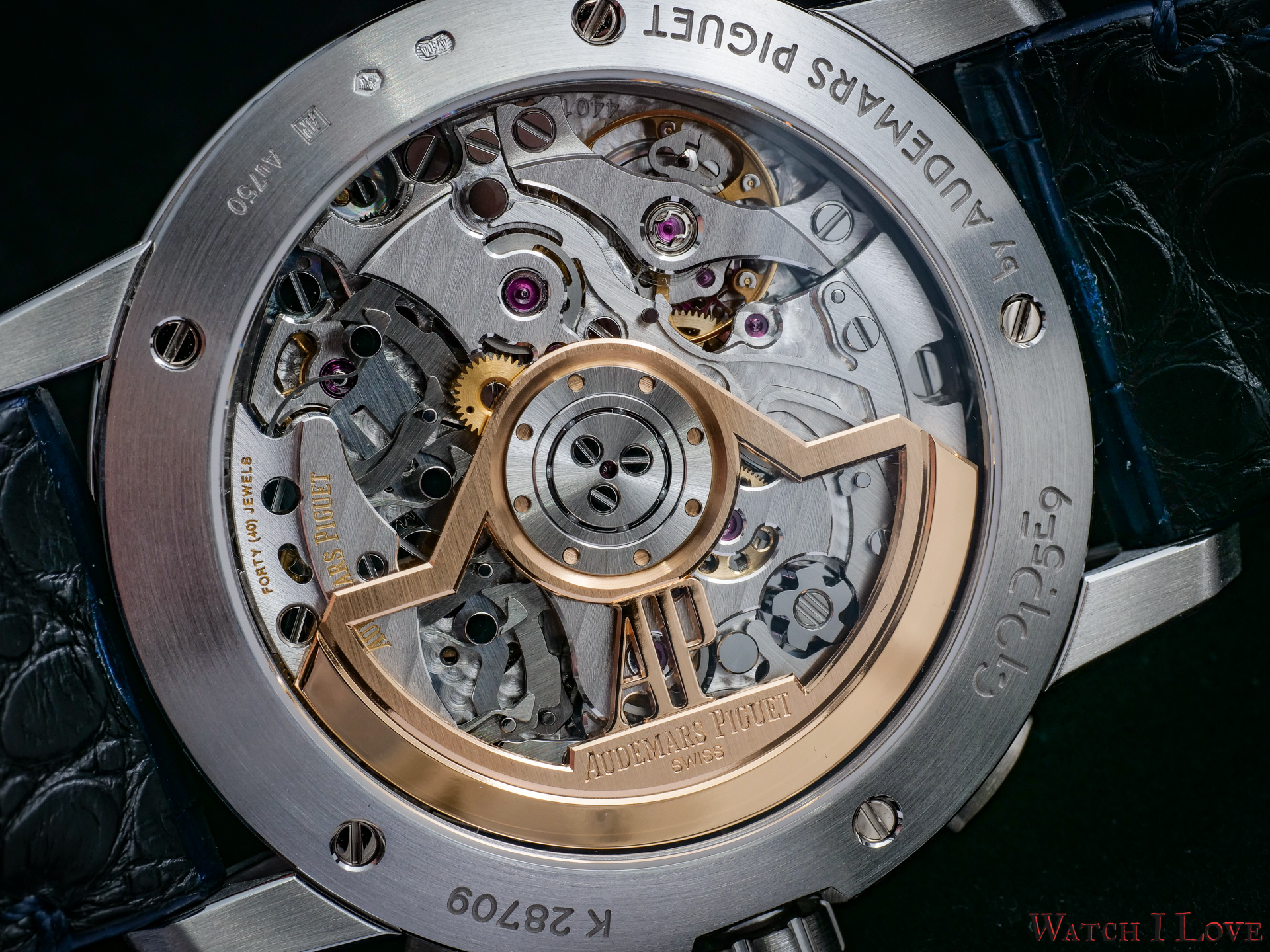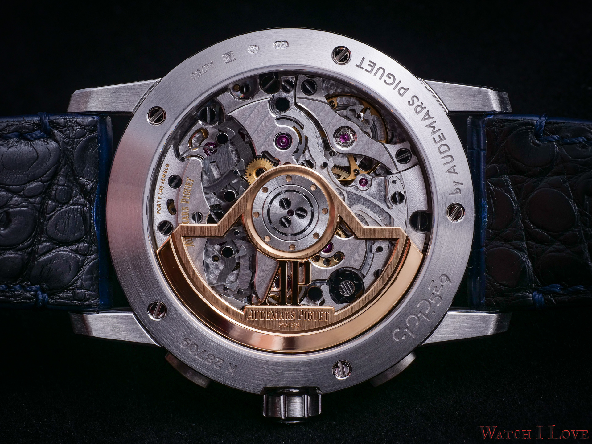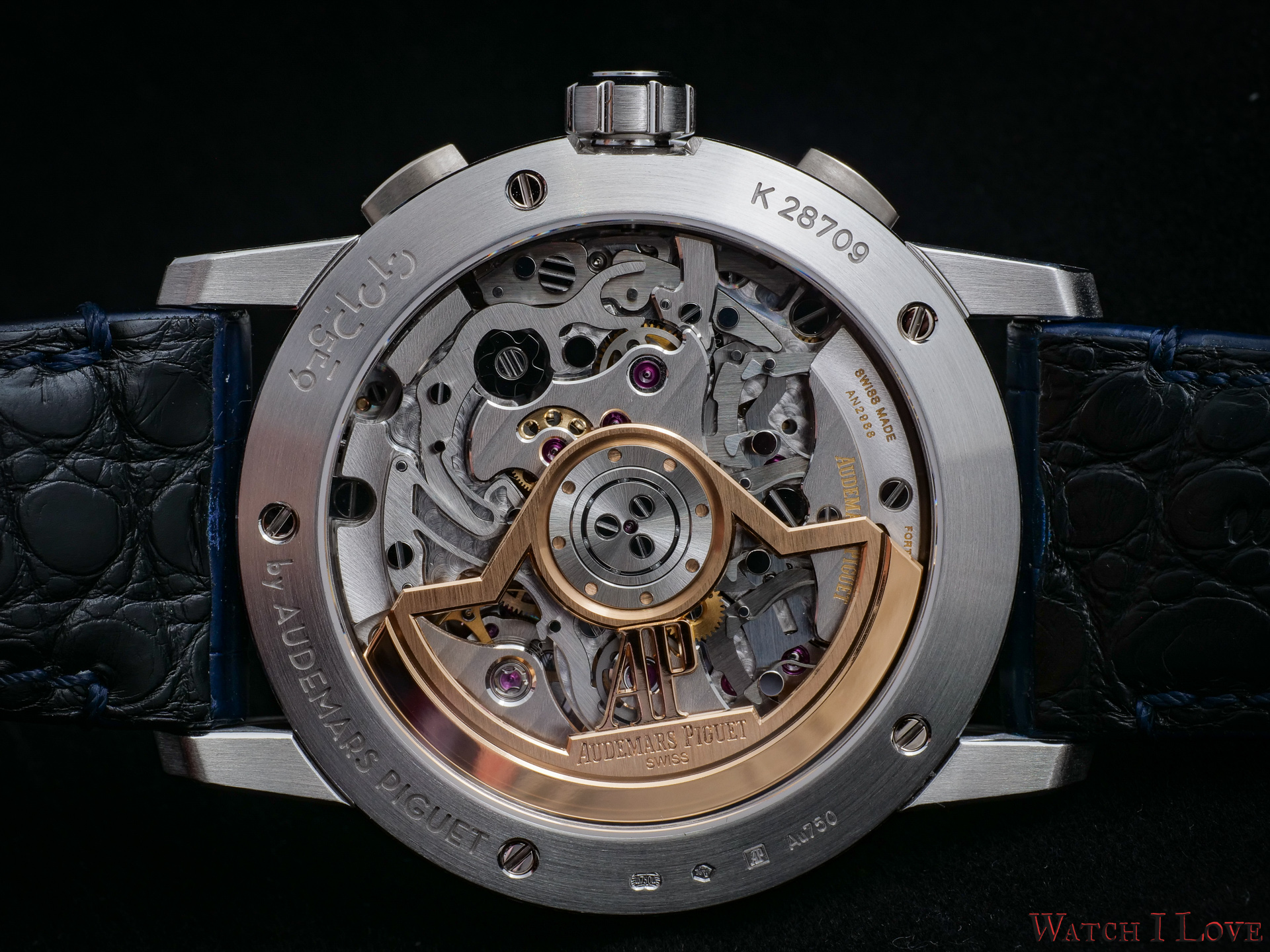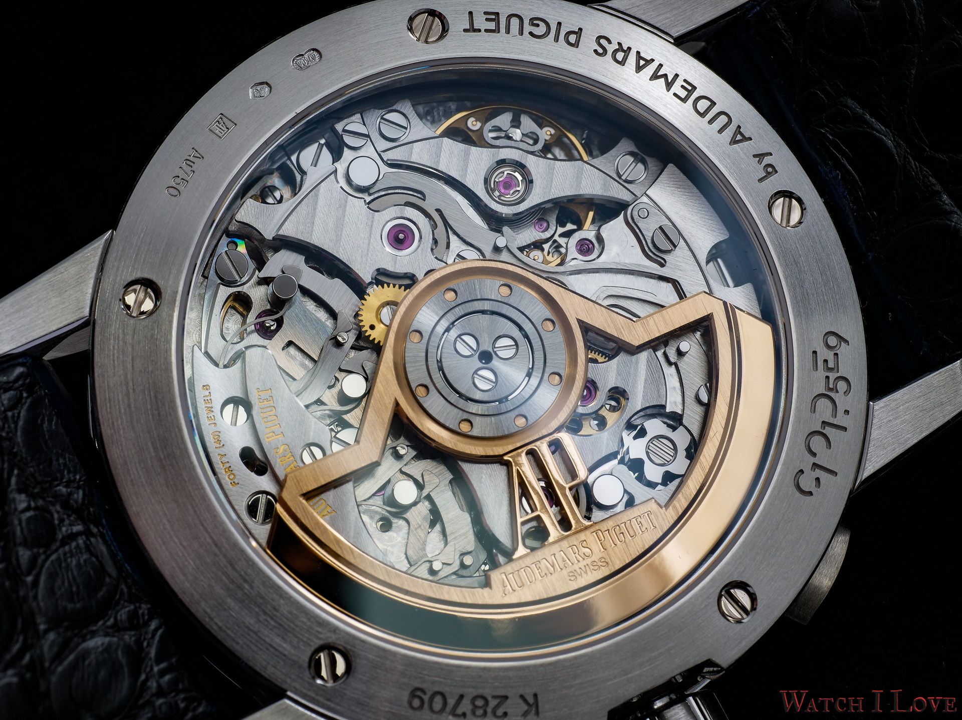 A closer look reveals that the lugs make absolutely no connection on the backside of the watch. This approach permits the multi-part case construction. Audemars Piguet made intensive and extensive research to find the best compromises between the lugs size and mechanical resistance. The secret lies in the fact that the lugs can use the caseback as support in case of higher mechanical stress.