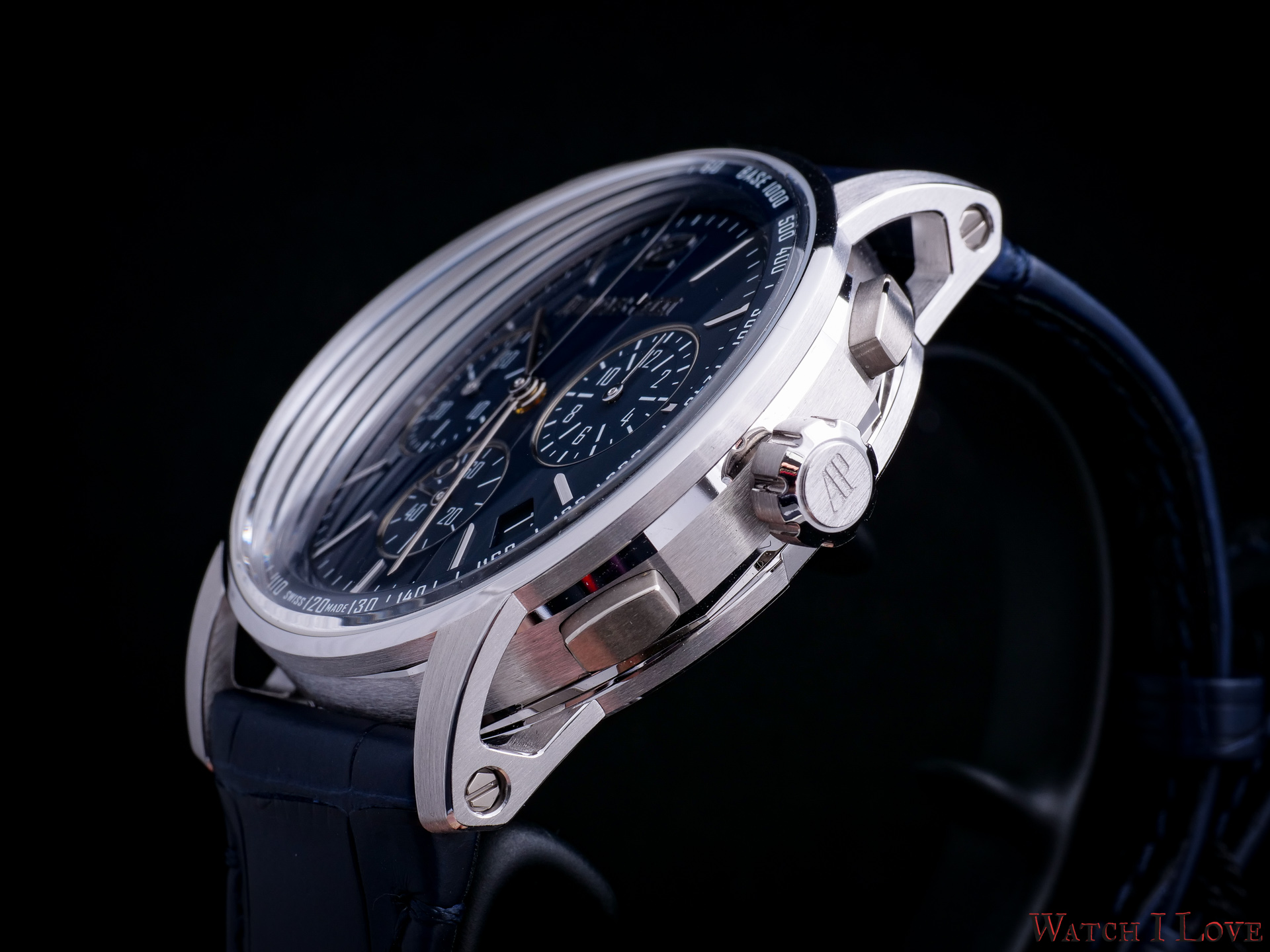 The watch offers comfortable wear. The case and lugs construction go perfect with my rather small wrist. For me, the 41mm diameter is a preferred choice in sports pieces sizes. What is interesting: the case construction with its spectacular crystal on top gives the impression of a much larger watch. But no, the Code 11.59 Selfwinding Chronograph is an enjoyable companion.