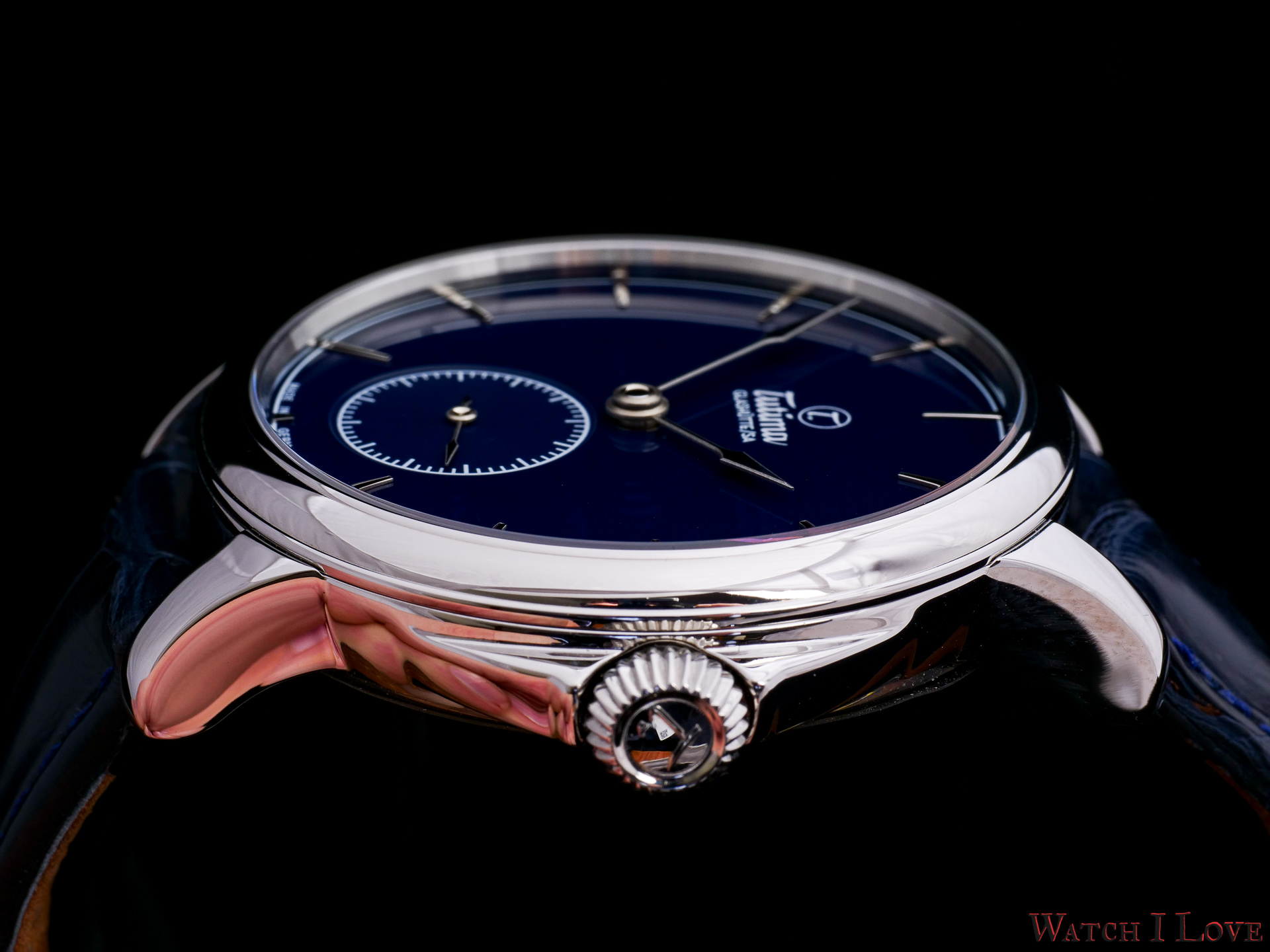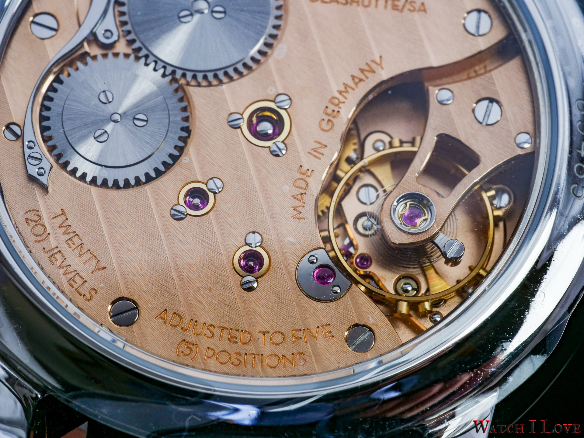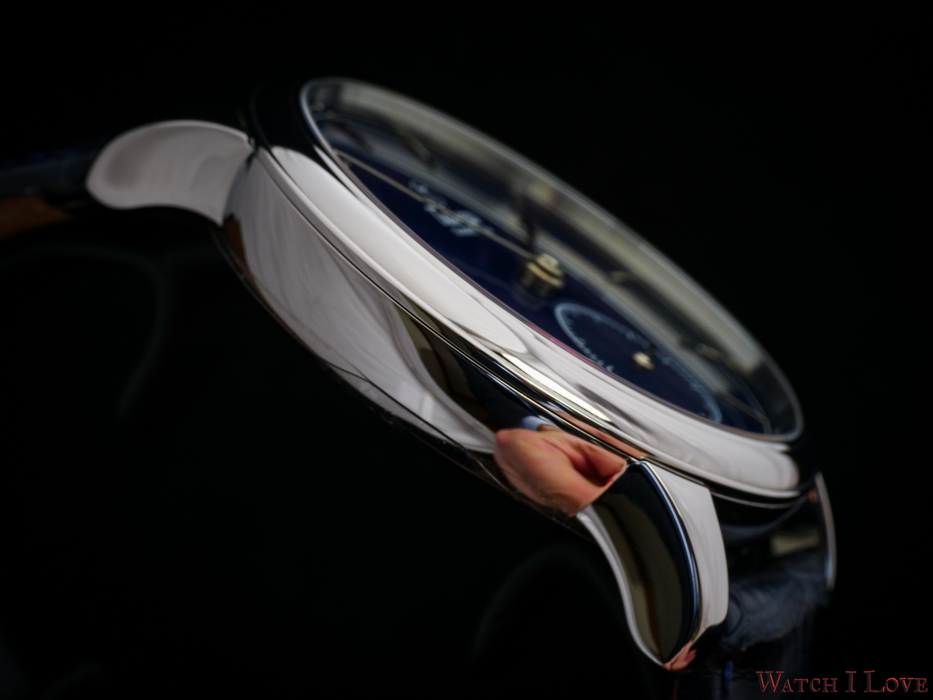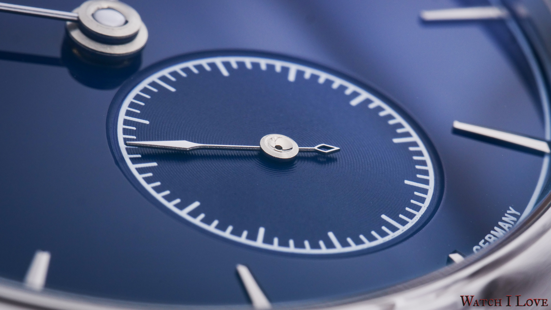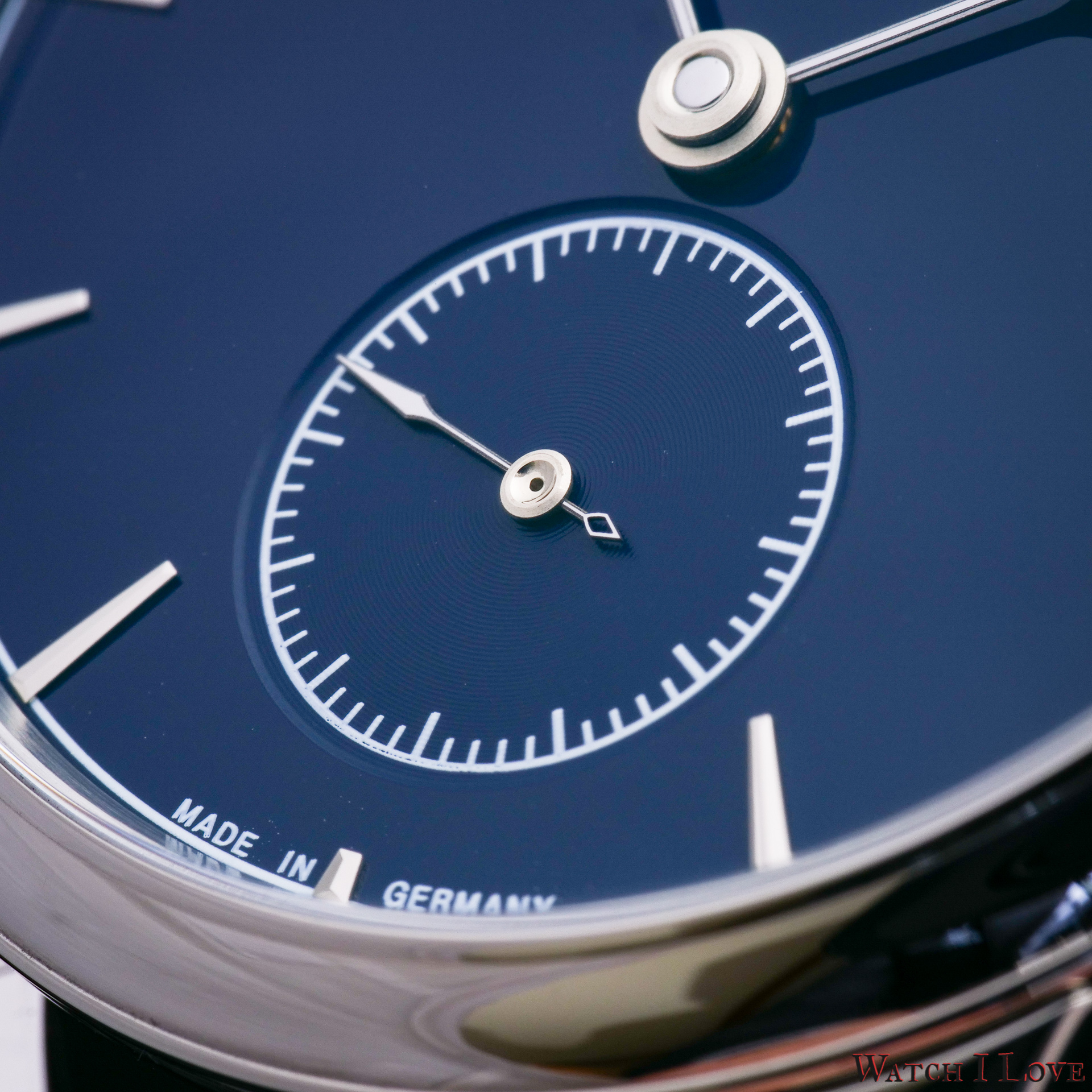The lance hands are gorgeously sculpted. They remind me of another Glashütte originated brand, that using purple lance hands. The slender and three-dimensional fly over the dial like a crane over a clear, deep and cold mountain lake – natural elegance.