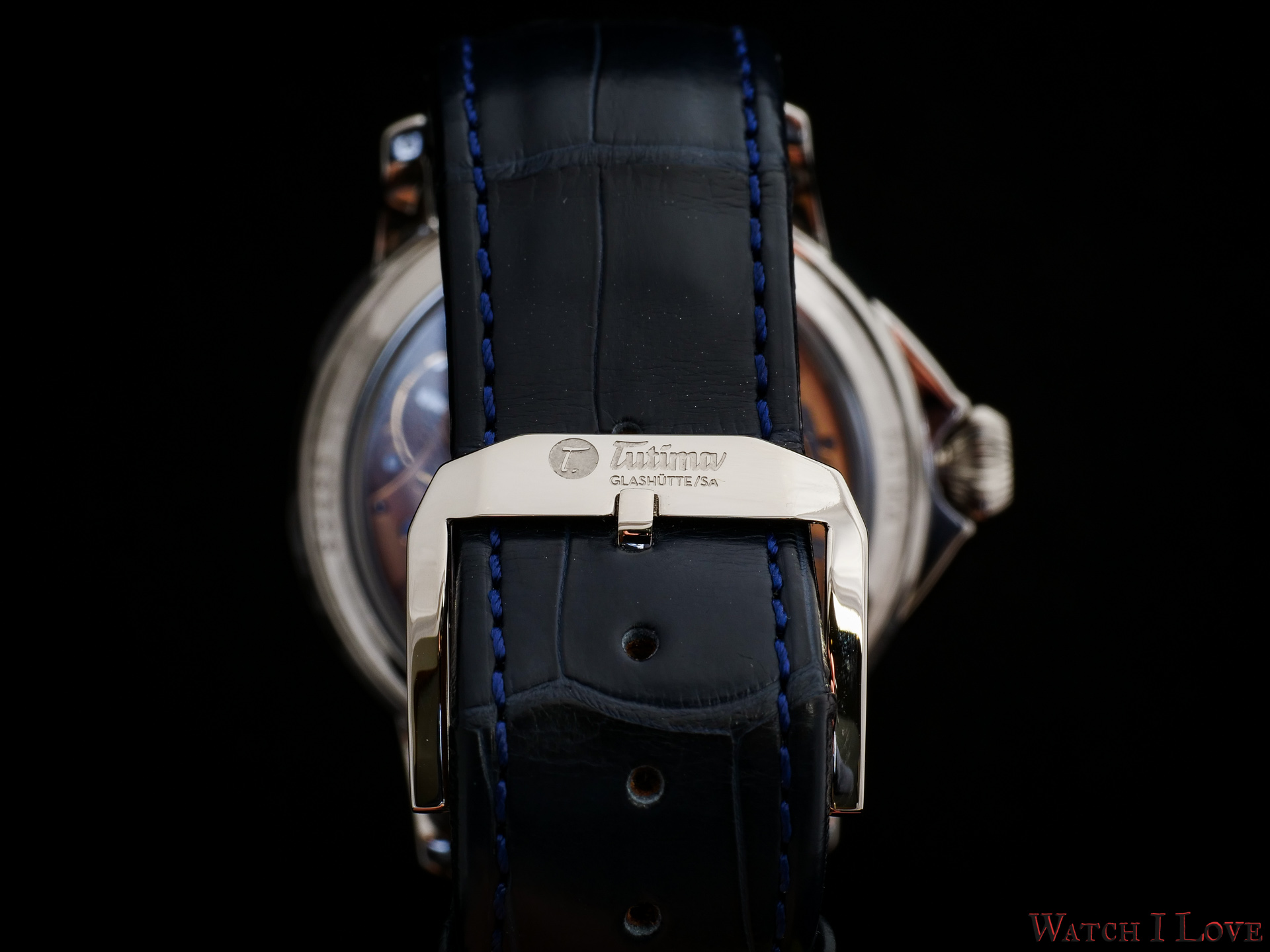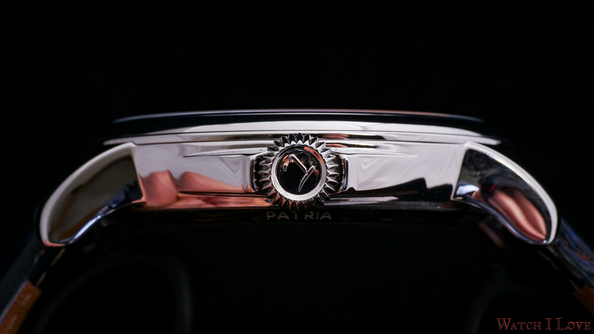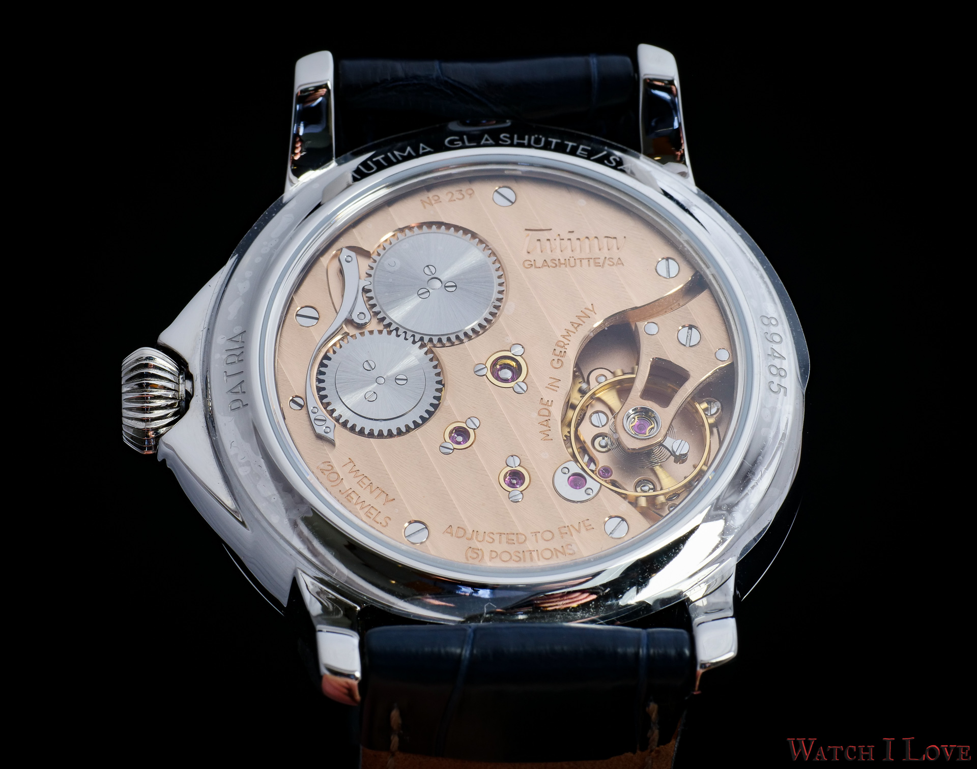 The crown is also from the Patria Collection territory – onion-shaped with an excellent grip. It is decorated with Tutima logo embossed in a recessed background.