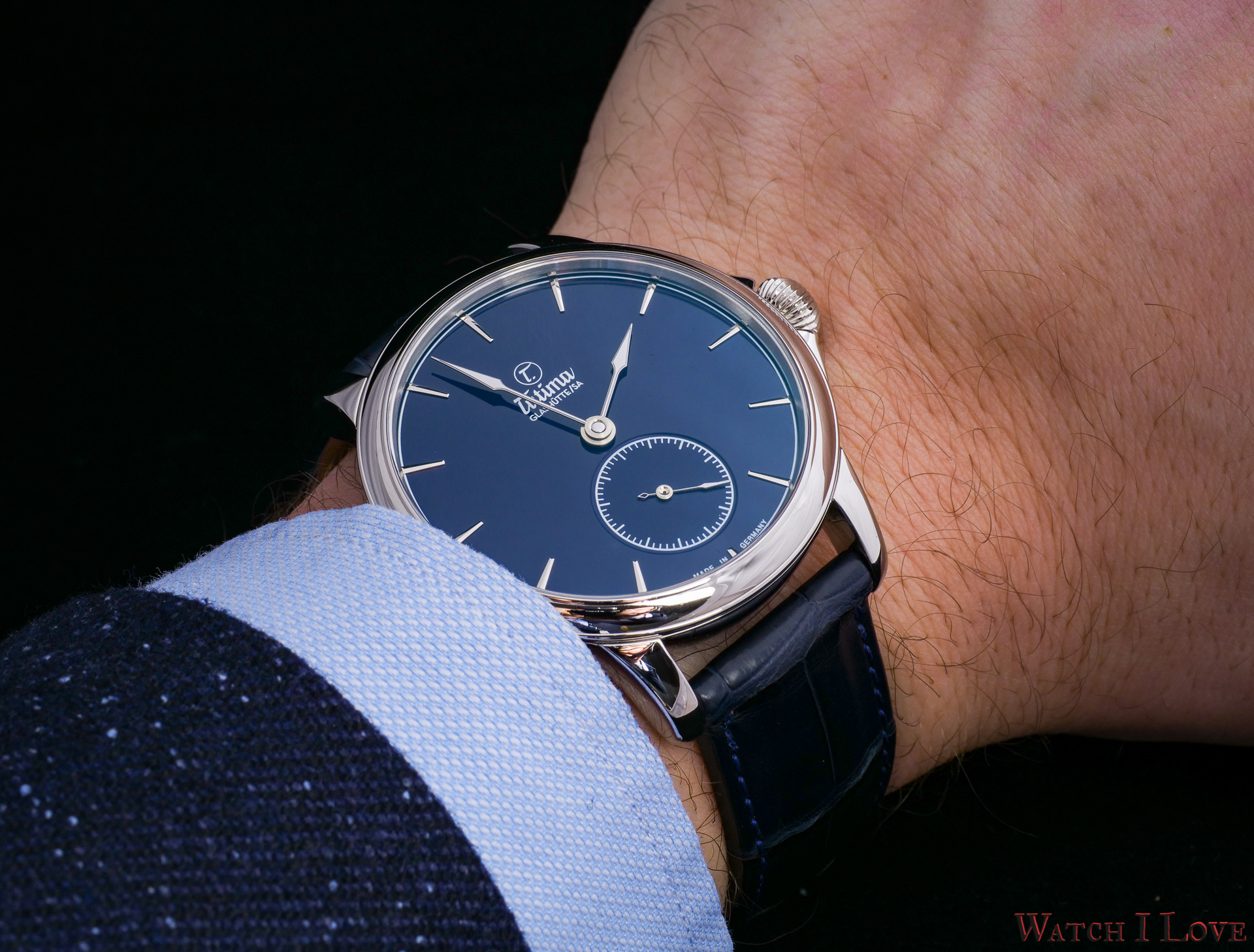 The 43mm case wears smaller as expected. Due to curved lugs and relatively low profile, the case gives a more close to a 41mm impression. It is a great achievement considering this piece is oriented more to the dress watch experience.