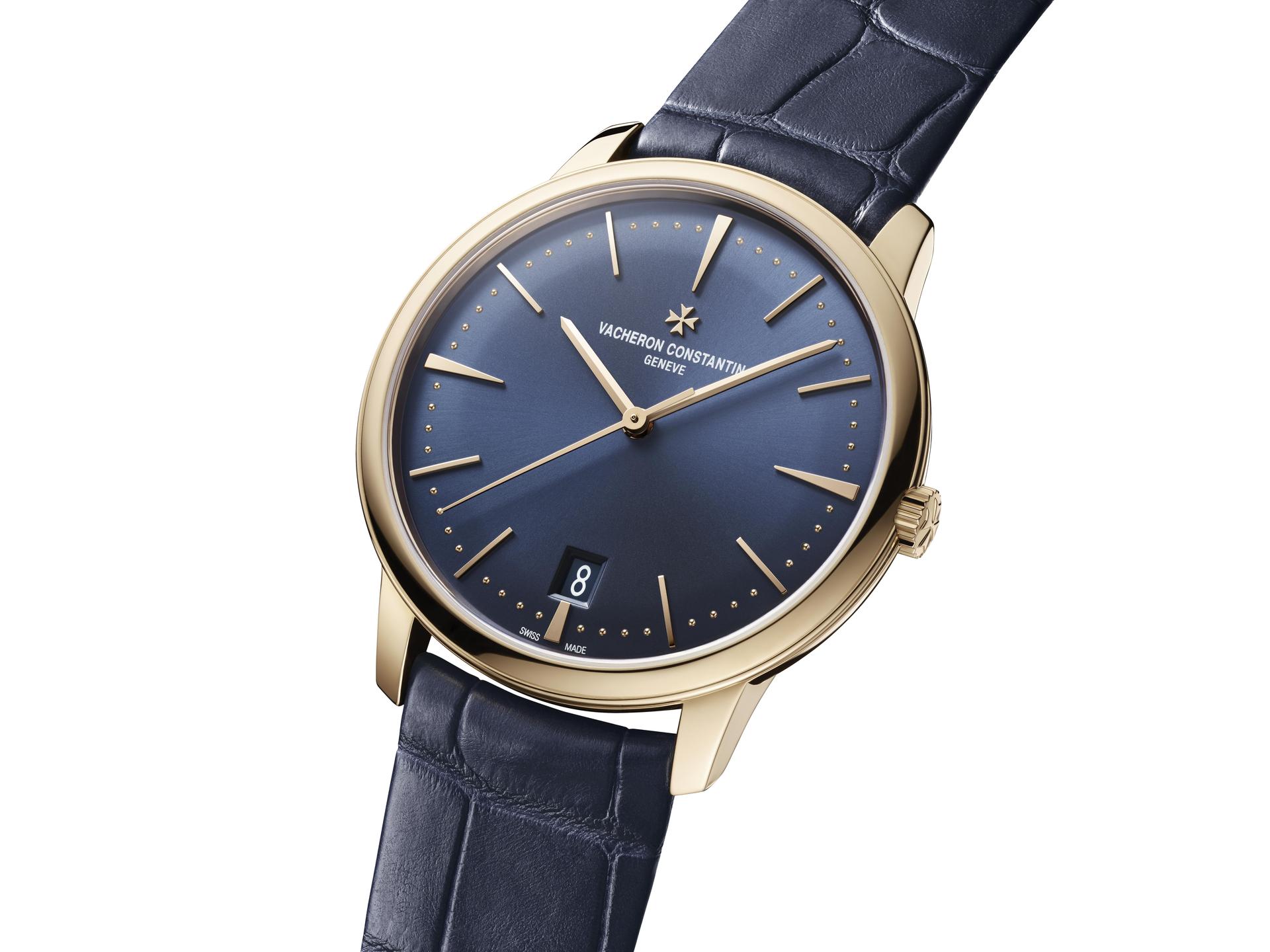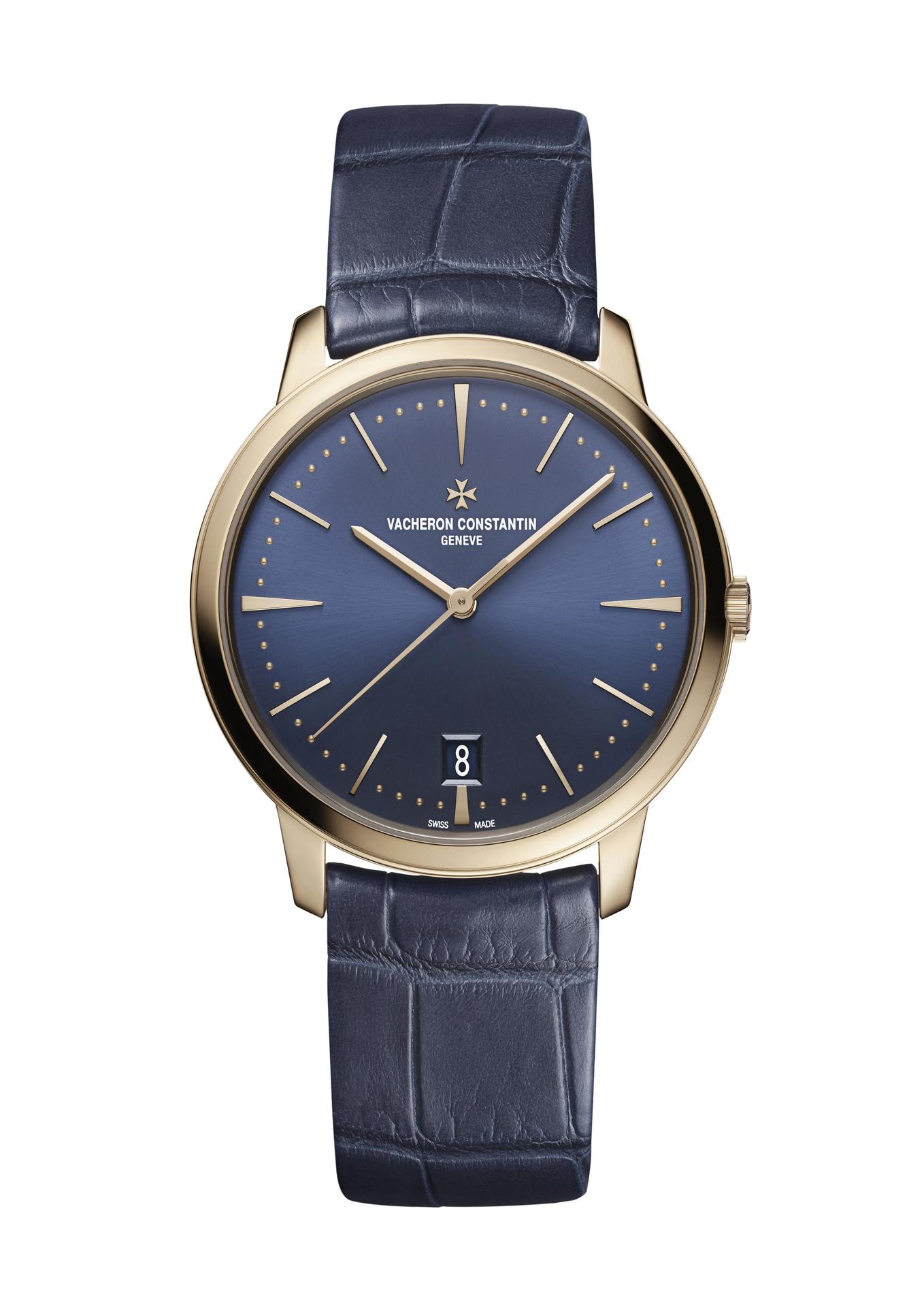 The Patrimony self-winding model is the ideal watch for women who cultivate their appearance with impeccable taste. Self-assured and precise by nature, their character is revealed on the wrist in a fine 36 mm pink gold case framing a midnight blue dial. Creating shimmering reflections and light effects achieved by the sunburst satin finish, this mysterious shade is discreetly punctuated by slender hour-markers, a “pearl” minute-track slightly recessed into the dial surface and a date display at 6 o’clock. This marvel of sobriety and elegance is swept over by slender pink gold hours and minutes hands. In addition, each passing moment is marked off by the large central seconds hand that is delicately curved to follow the dainty outline of the dial. Behind the scenes, the tempo is set by the mechanical self-winding 2450 Q6/2 calibre. Its ethereal 22 carats gold oscillating weight is inspired by the Maltese cross. The watch embraces the wrist with a slim and apparently seamless strap made of dark blue alligator leather matching the dial colour.Vacheron Constantin Patrimony self-winding