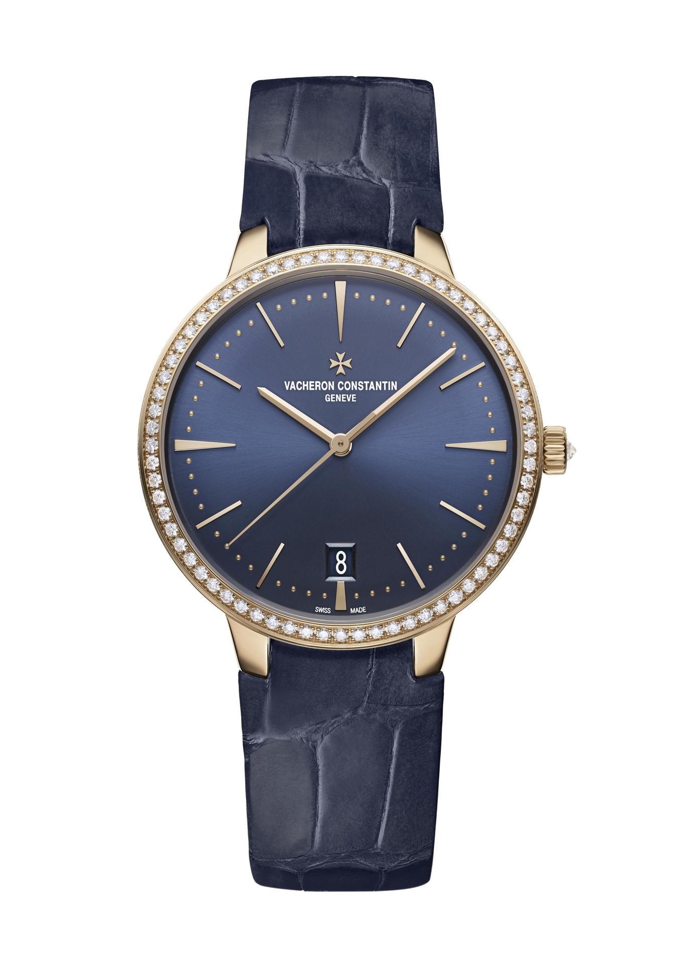 Available in two 36 mm and 36.5 mm feminine versions, the Patrimony self-winding watch adopts a new sunburst satin-finish blue dial making a perfect match with the pink gold of its case. A chic and timeless signature, pared down or set with diamonds. Simply quintessential!