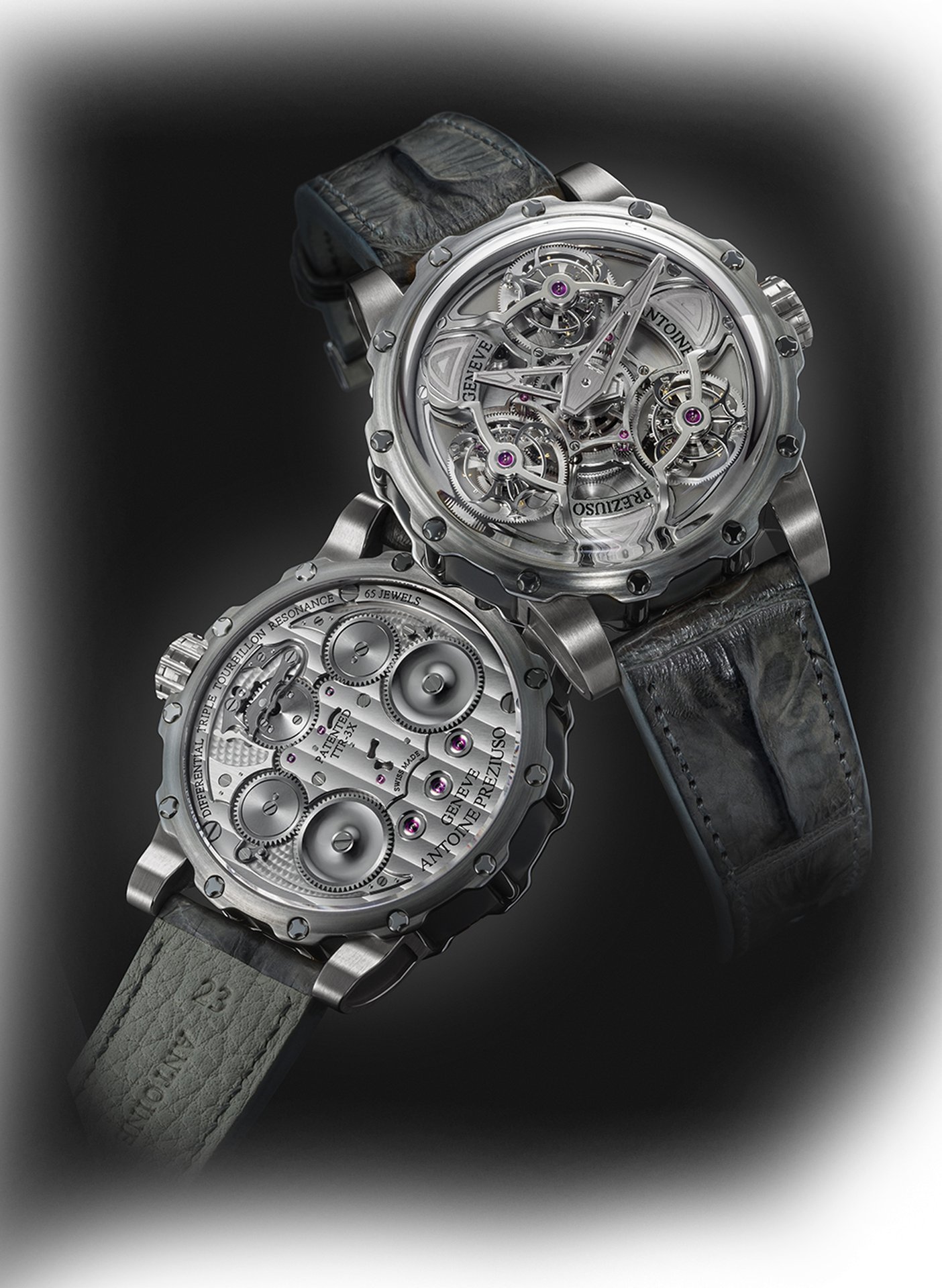 Three international patents protect the Tourbillon of Tourbillons, reflecting the creativity and capacity for innovation of ANTOINE PREZIUSO GENÈVE, where the project was brought to fruition after a decade of research.