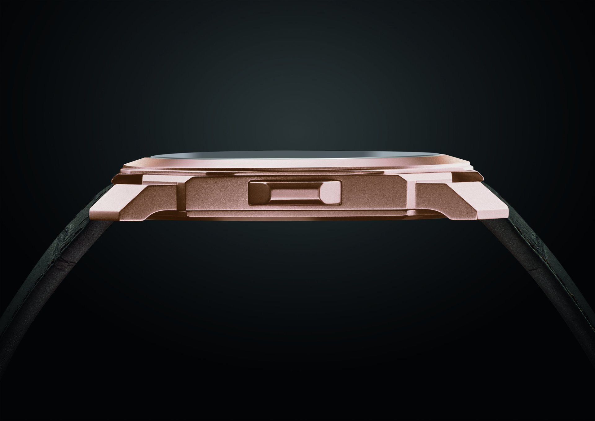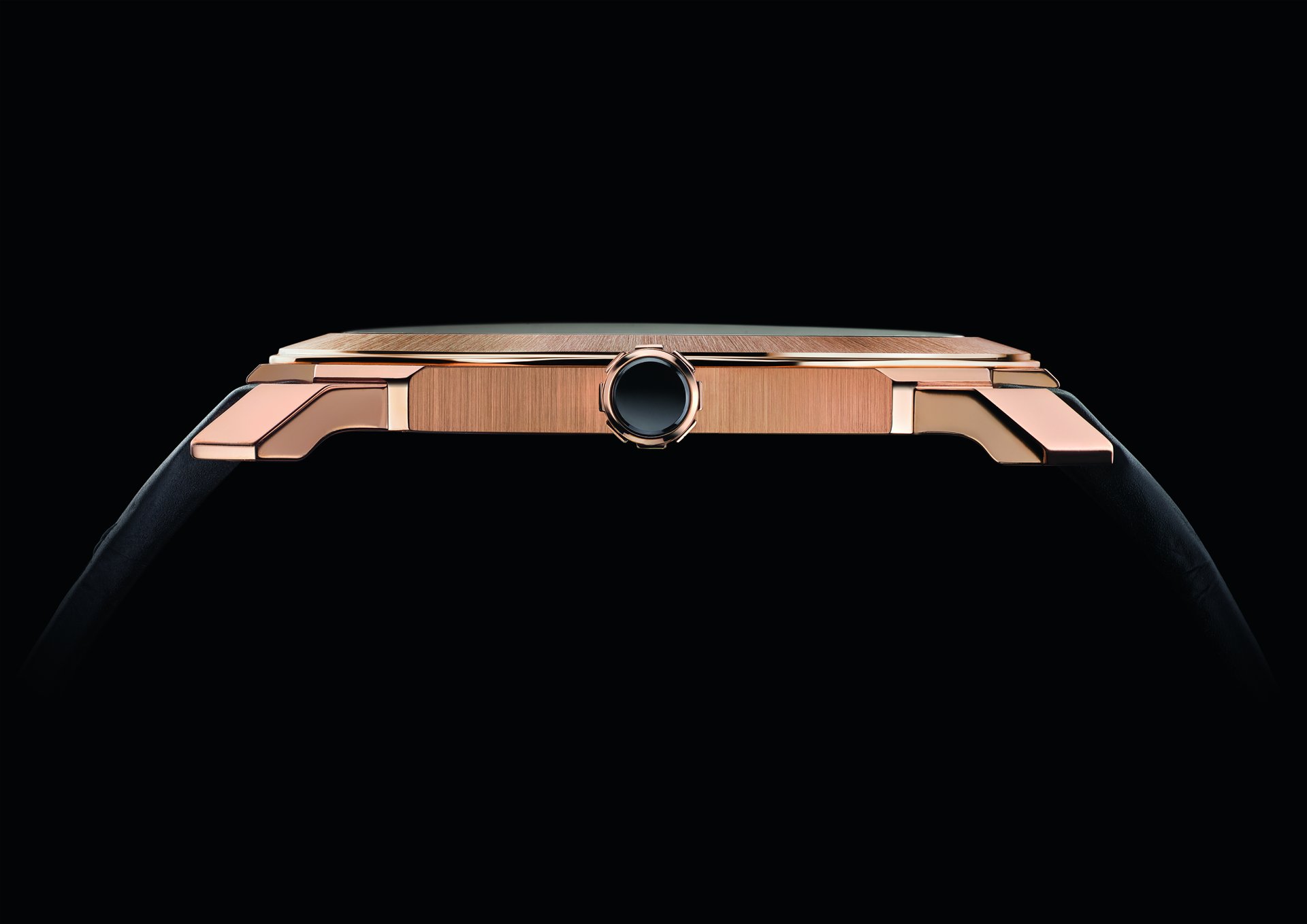 40mm extra-thin satin-polished 18kt rose gold case (5.25mm thick), transparent caseback; 18kt satin-polished rose gold screw-down crown set with ceramic inlay; black lacquered dial, flat diamond rose gold plated hands; water-resistant to 100m.