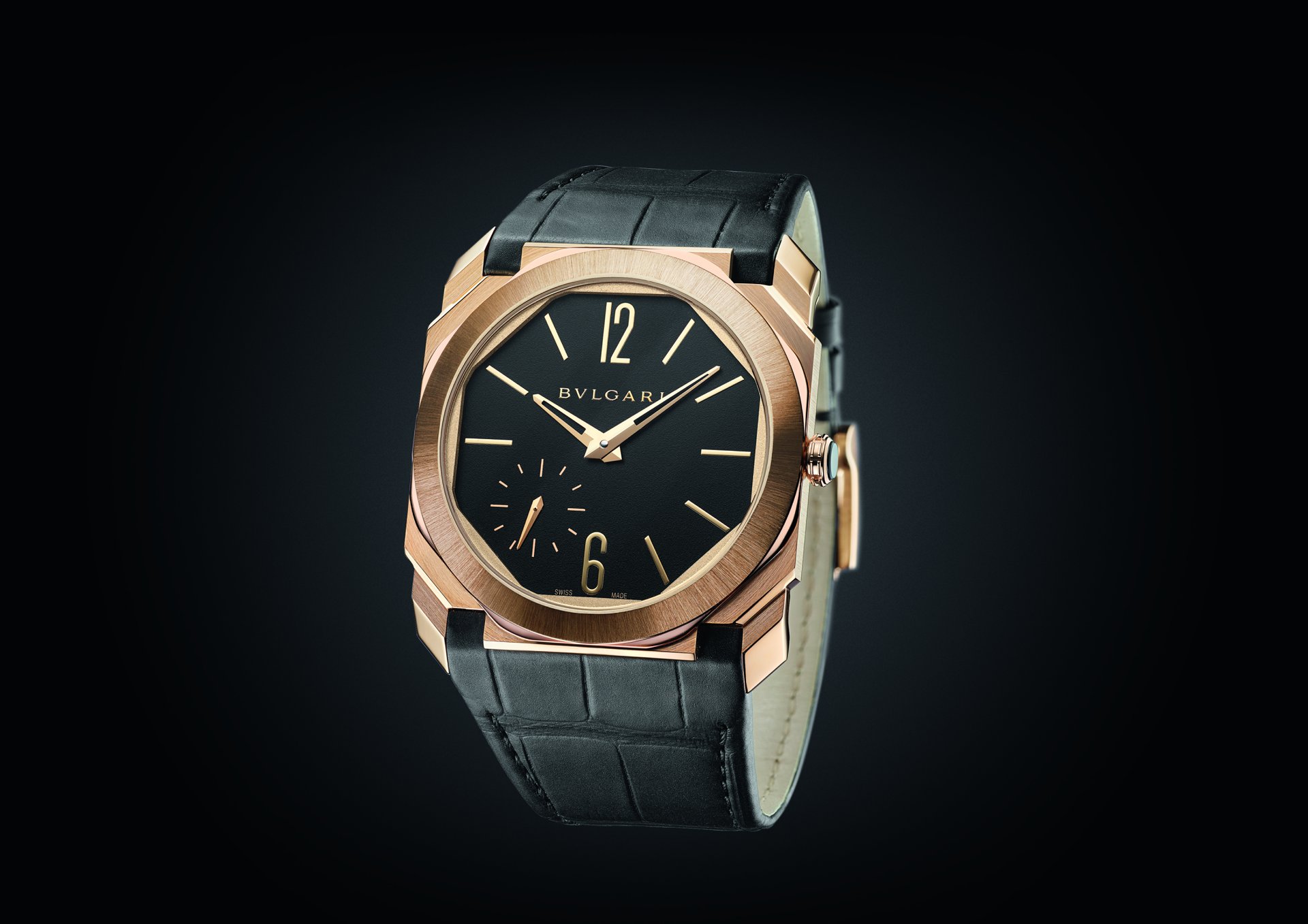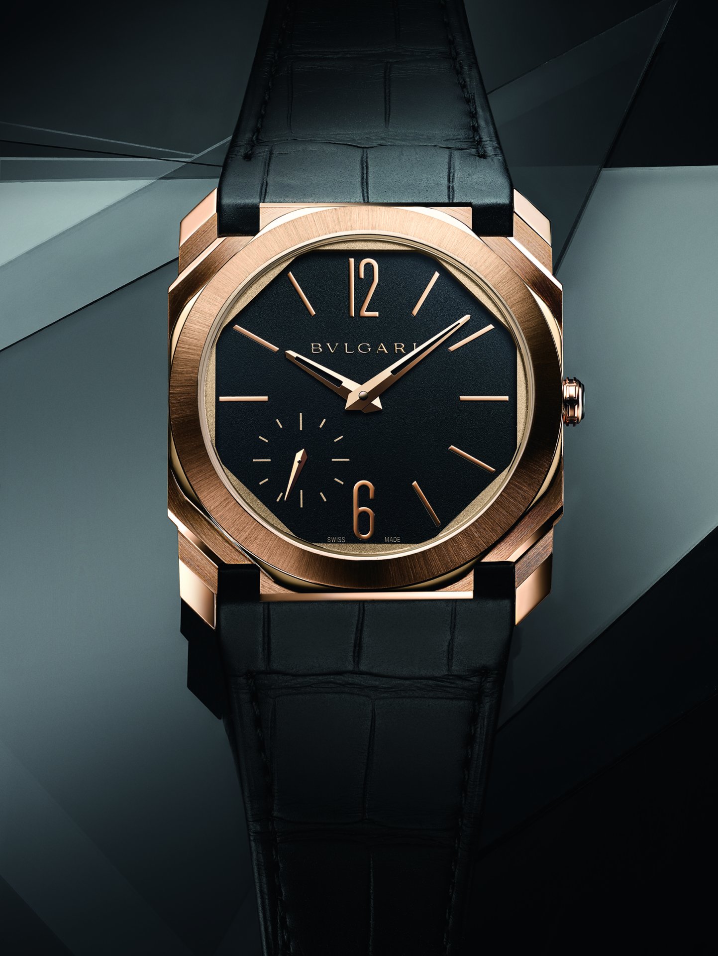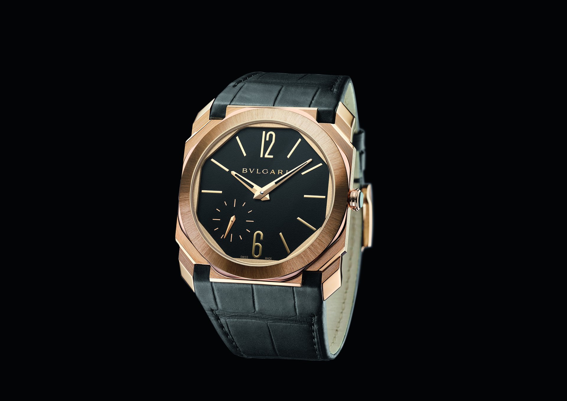 Octo Finissimo once again channels that rare fusion of edgy Italian design and Swiss engineering with the introduction of two new satin-polished non-monochromatic timepieces: the Octo Finissimo Automatic Satin-Polished Steel and the Octo Finissimo Automatic Satin-Polished Rose Gold. These are both powered by the 2.23mm thick BVL 138 Finissimo calibre and feature a polished black lacquer dial, fitted in the sophisticated Finissimo case. The rose gold edition comes on an alligator strap, perfectly integrated and complemented with a pin buckle.
