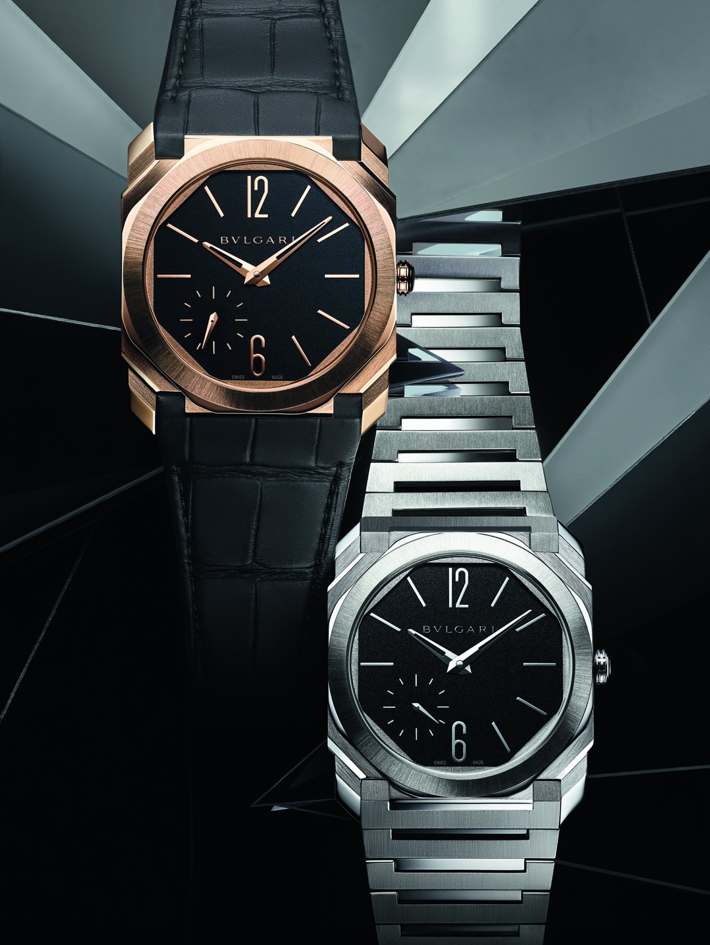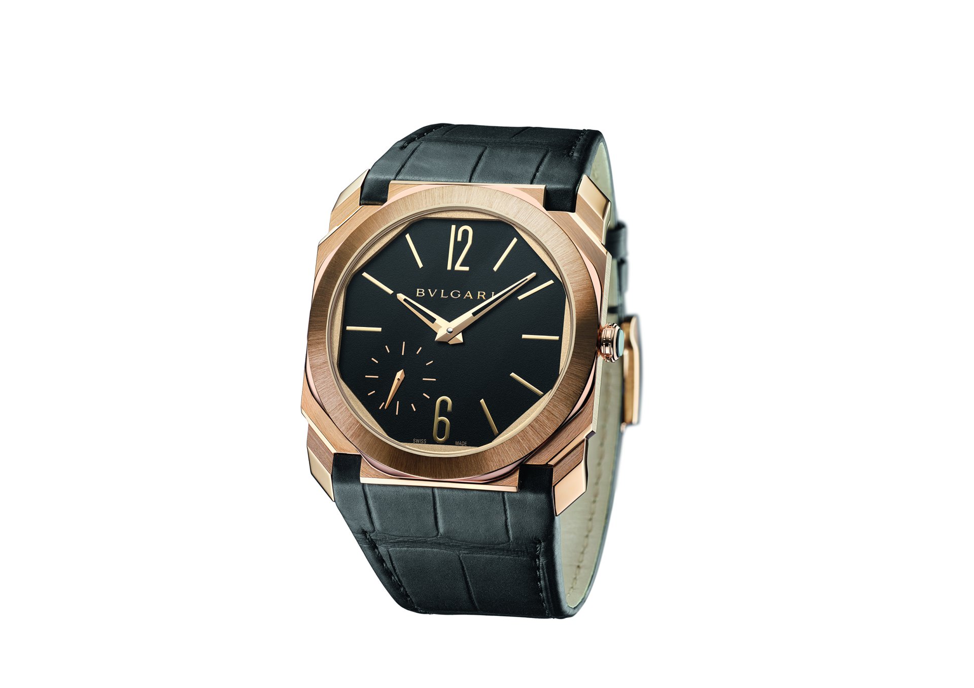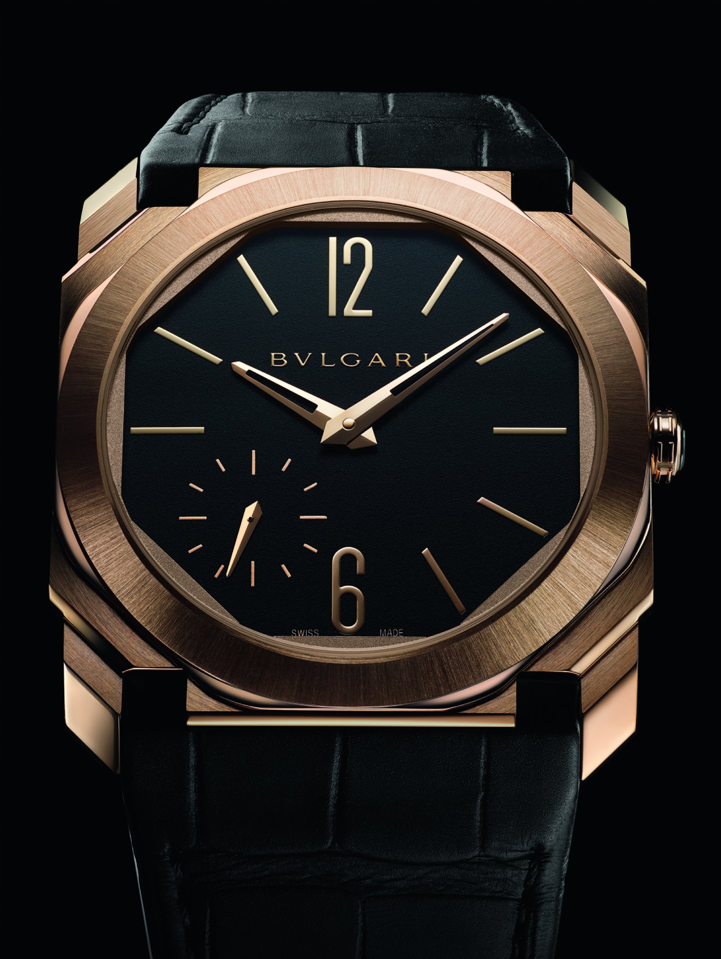 Octo Finissimo once again channels that rare fusion of edgy Italian design and Swiss engineering with the introduction of two new satin-polished non-monochromatic timepieces: the Octo Finissimo Automatic Satin-Polished Steel and the Octo Finissimo Automatic Satin-Polished Rose Gold. These are both powered by the 2.23mm thick BVL 138 Finissimo calibre and feature a polished black lacquer dial, fitted in the sophisticated Finissimo case. The rose gold edition comes on an alligator strap, perfectly integrated and complemented with a pin buckle.