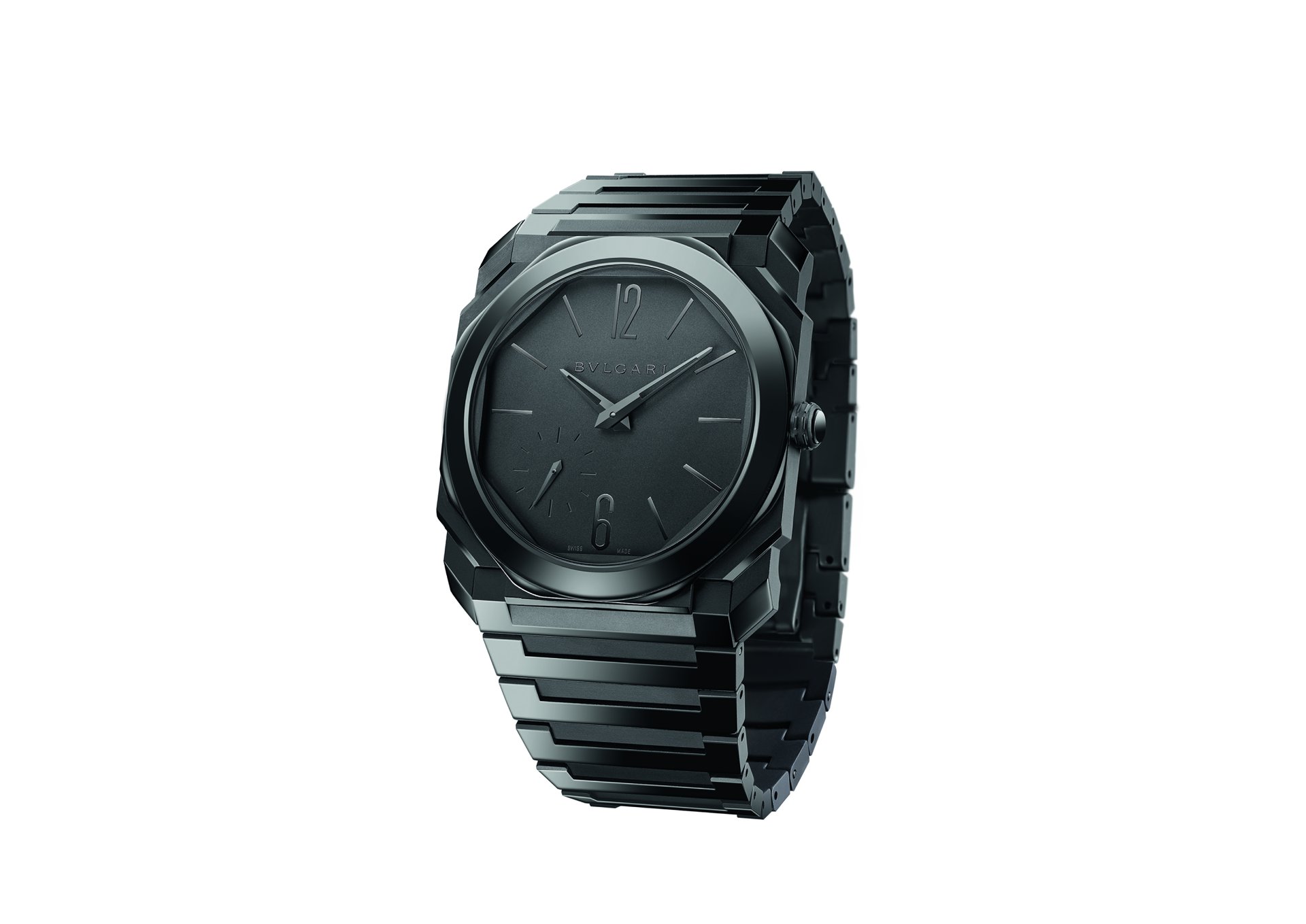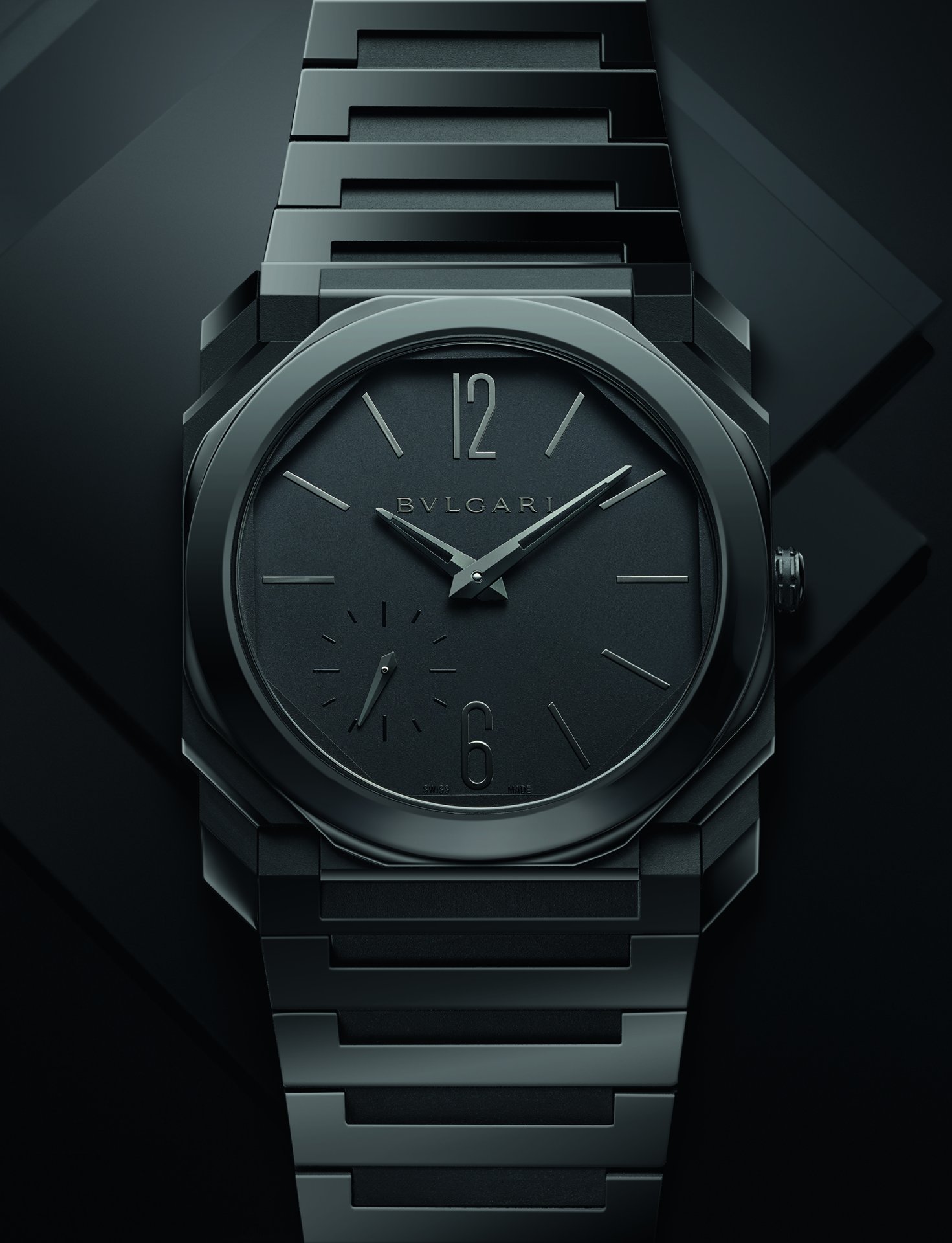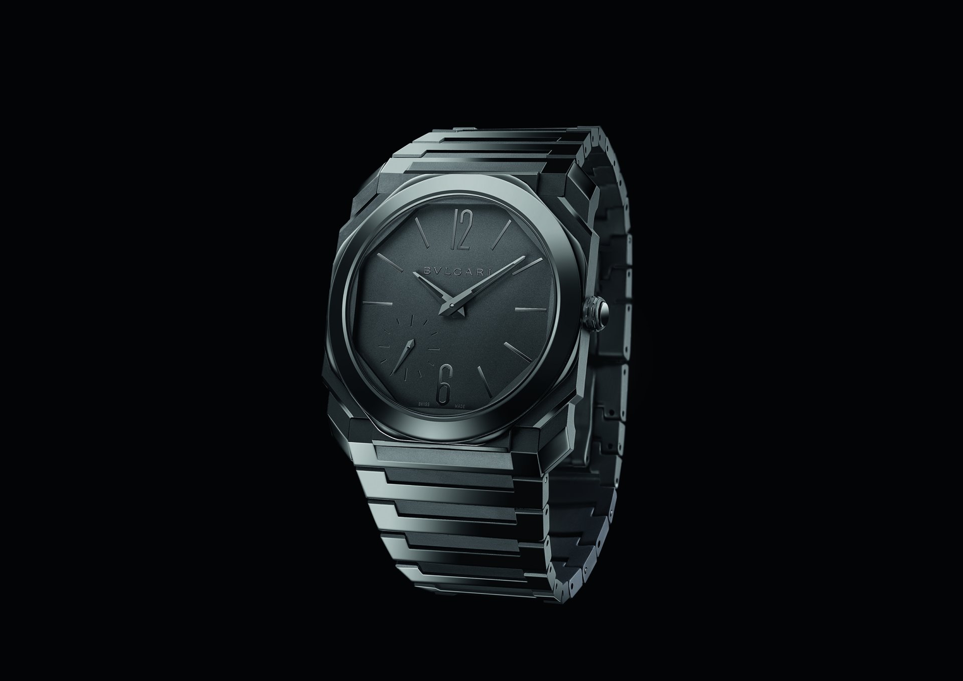 The Octo saga presents its next chapter with the unveiling of the Octo Finissimo Automatic in Black Sandblast-Polished Ceramic, featuring a new sandblast-polished ceramic case and bracelet and sandblasted ceramic dial. A new signature monochromatic look, which alternates matte and brilliant surfaces, thus reflecting light in a way that feels fresh, innovative and new. To achieve the case’s extraordinary thinness in fine ceramic is a difficult feat — and requires the Roman Jeweler’s daring and delicate touch.