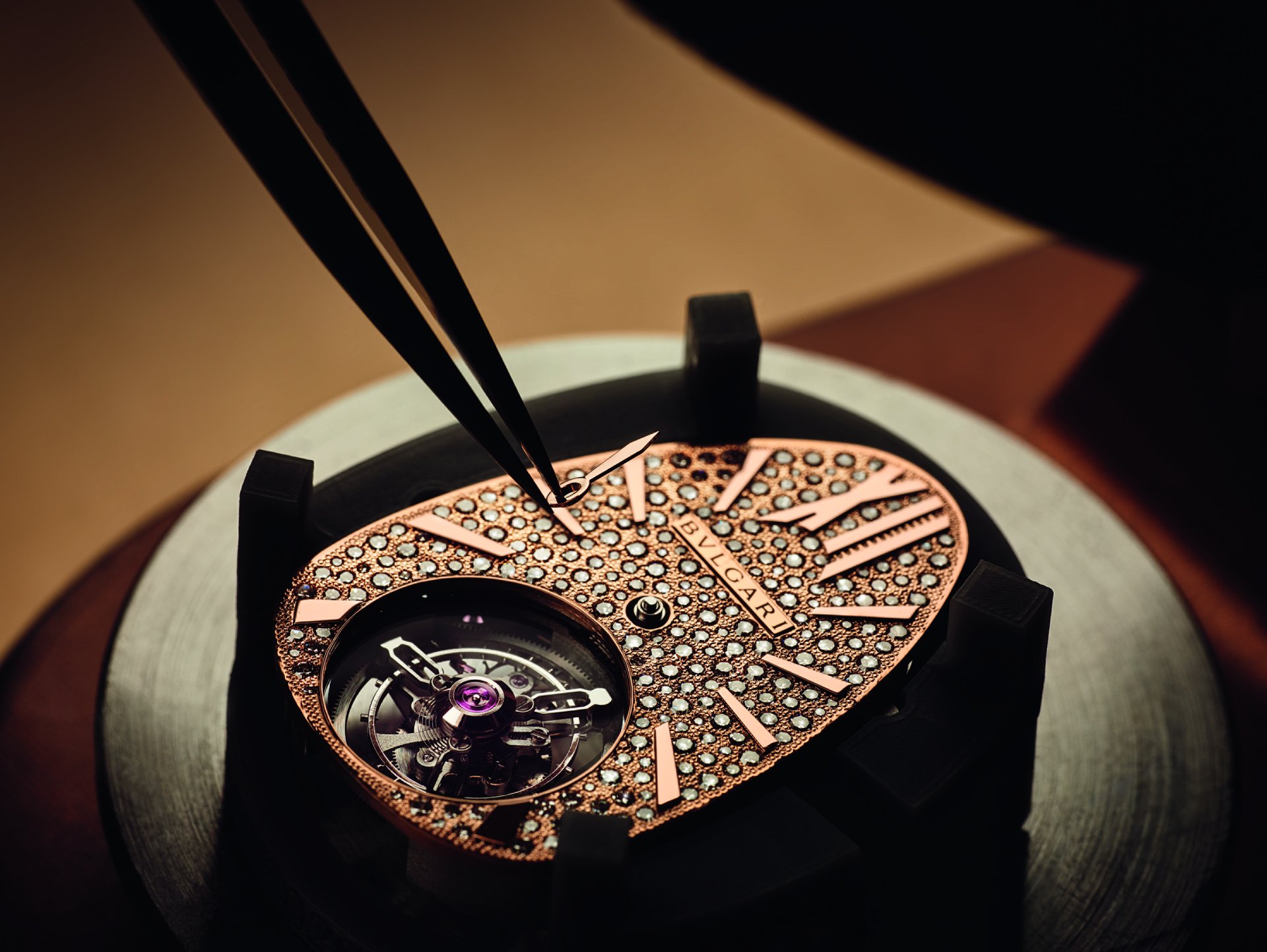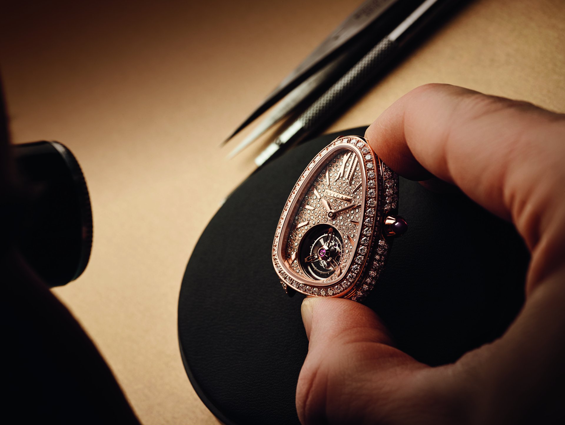 When it was presented last year, the Serpenti Seduttori reimagined the Serpenti cult watch. The women’s watch that is Born to Be Gold, it elevates the preciousness of time and marks the golden moments of a woman’s life. Now, Serpenti Seduttori continues its journey with the debut of new models that are Born to Shine, including the rare tourbillon movement for women, BVL150 Caliber. The movement of the new Seduttori represents that synthesis of Swiss knowledge and jewelry-making savoir-faire that only Bvlgari can execute — and is a pinnacle of design as the smallest tourbillon on the market. It revives the lost tradition of the small mechanical movements that were replaced by the quartz in the early 70’s.