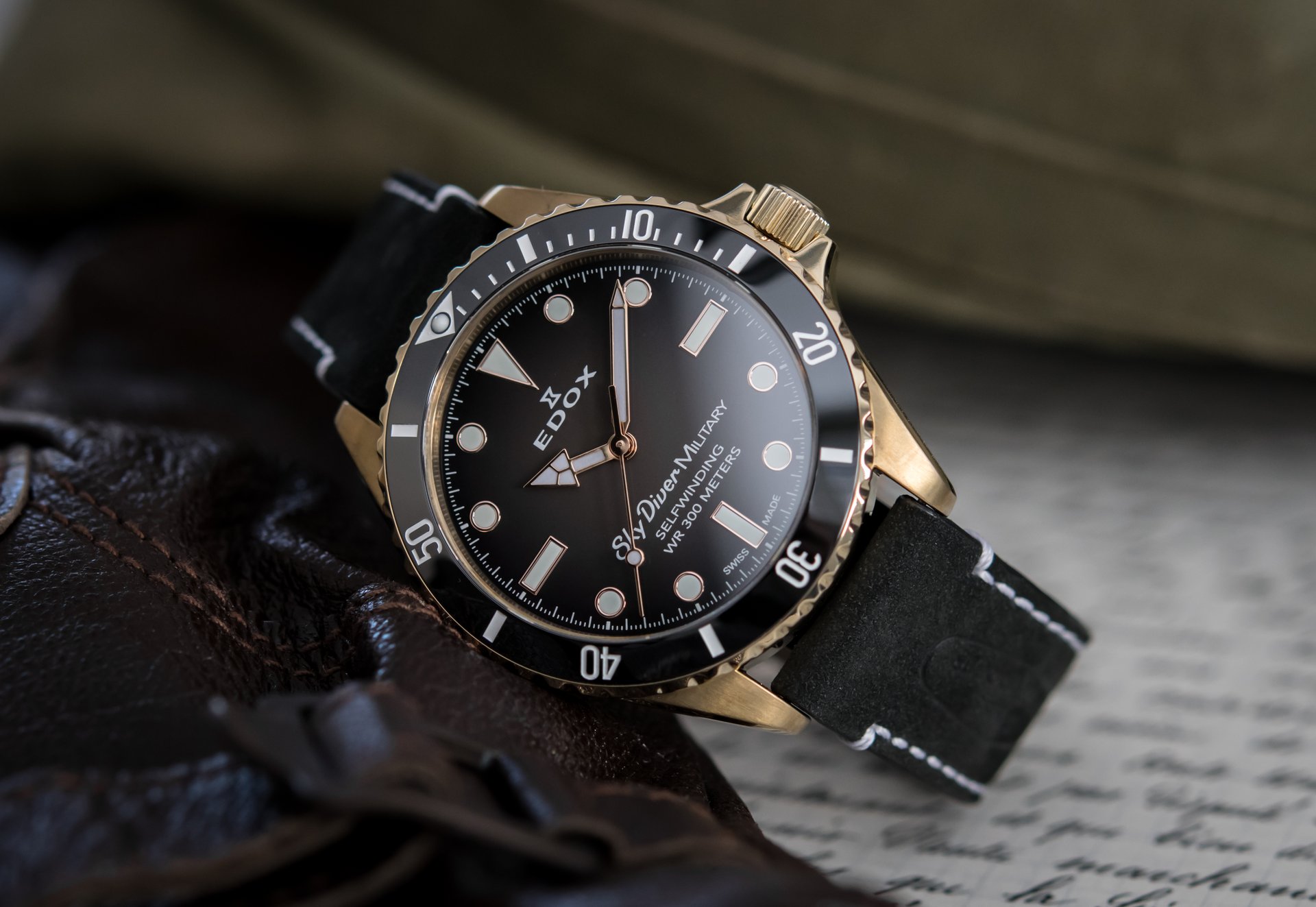 Edox released a new timepiece in the Skydiver Collection. The Edox Skydiver Military Bronze Limited Edition comes in a bronze case with ceramic bezel and a black degrade dial.