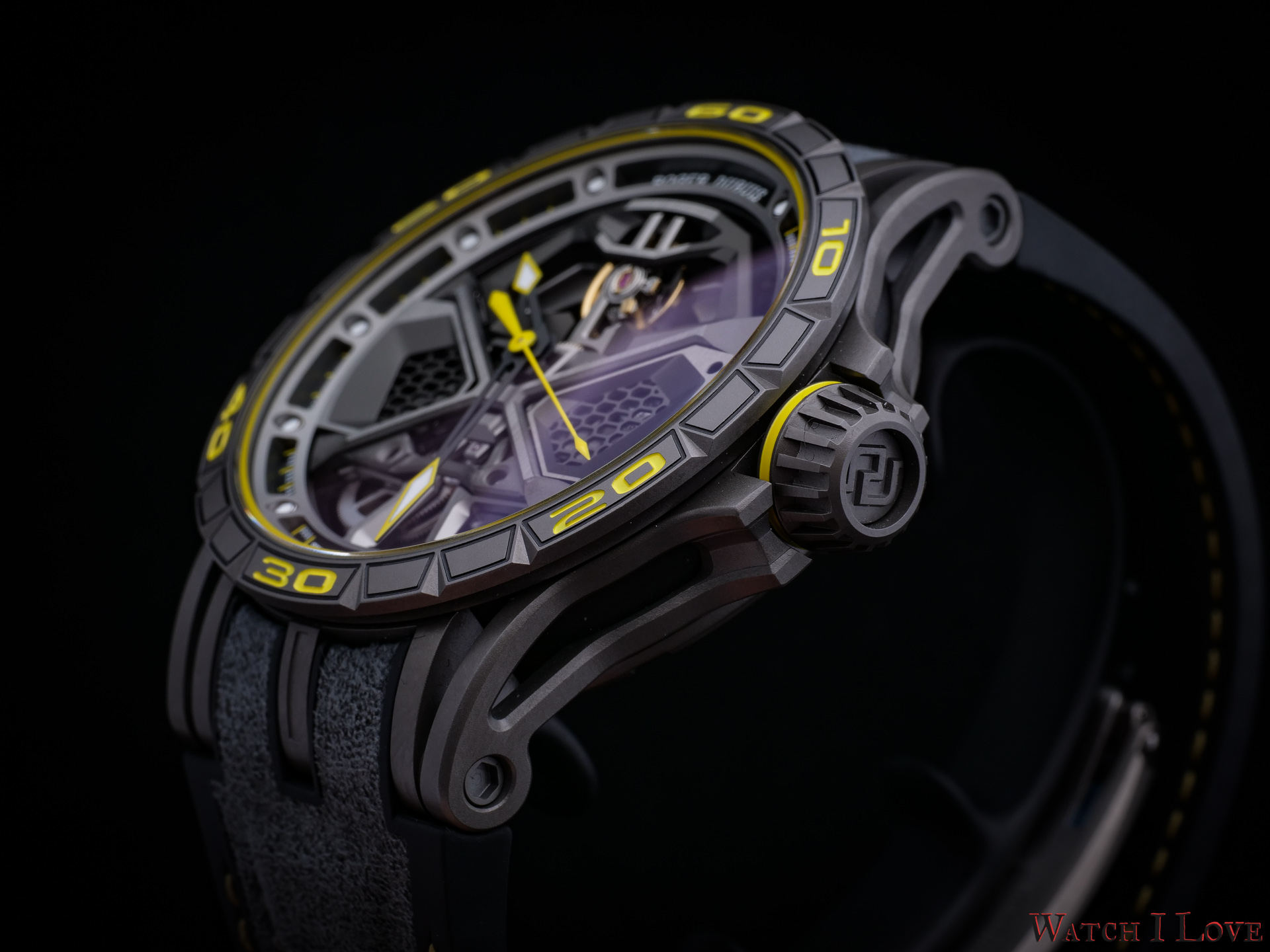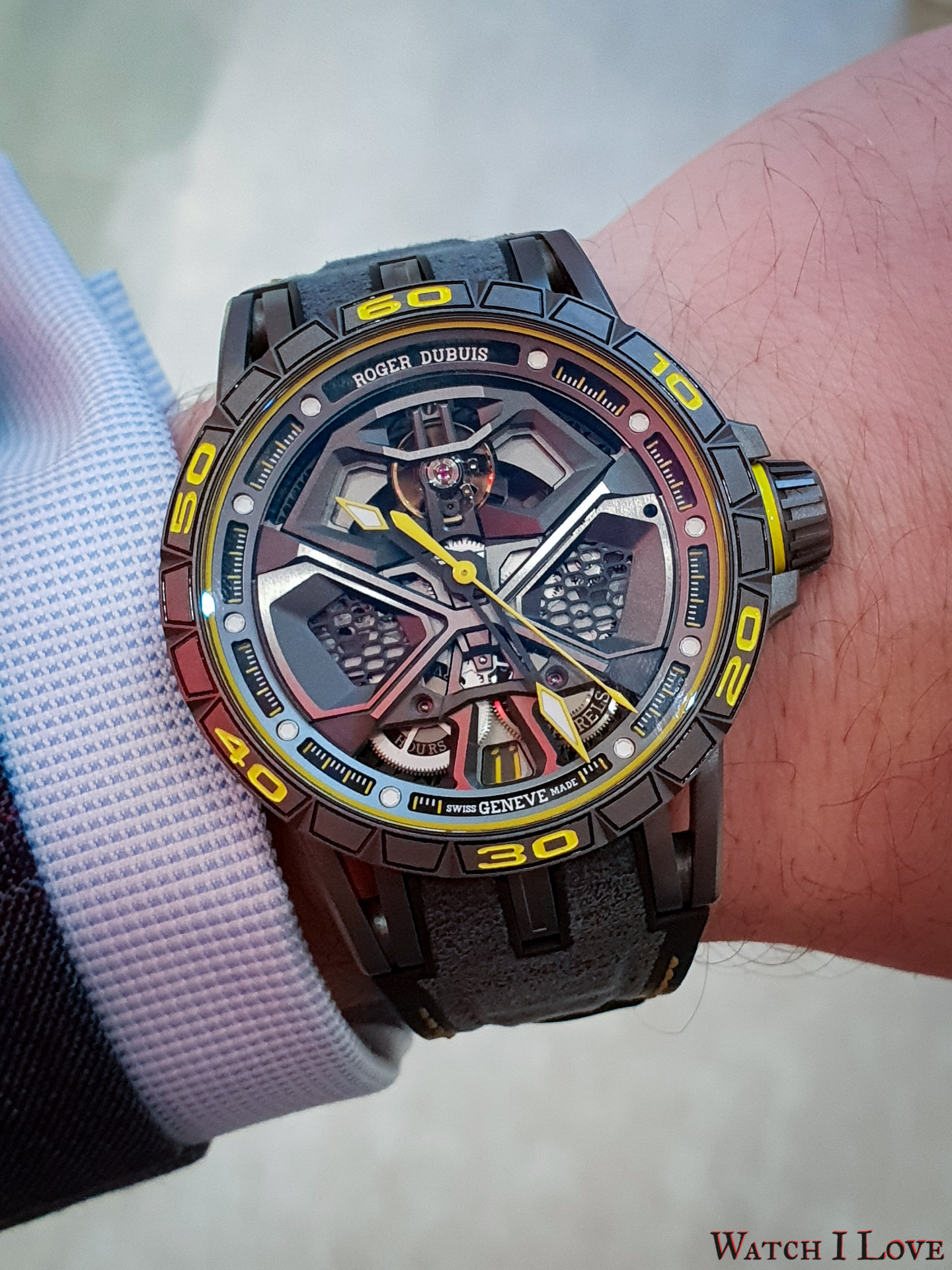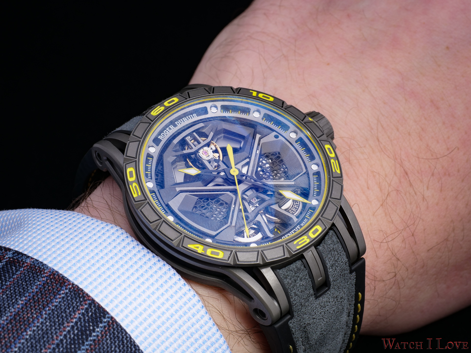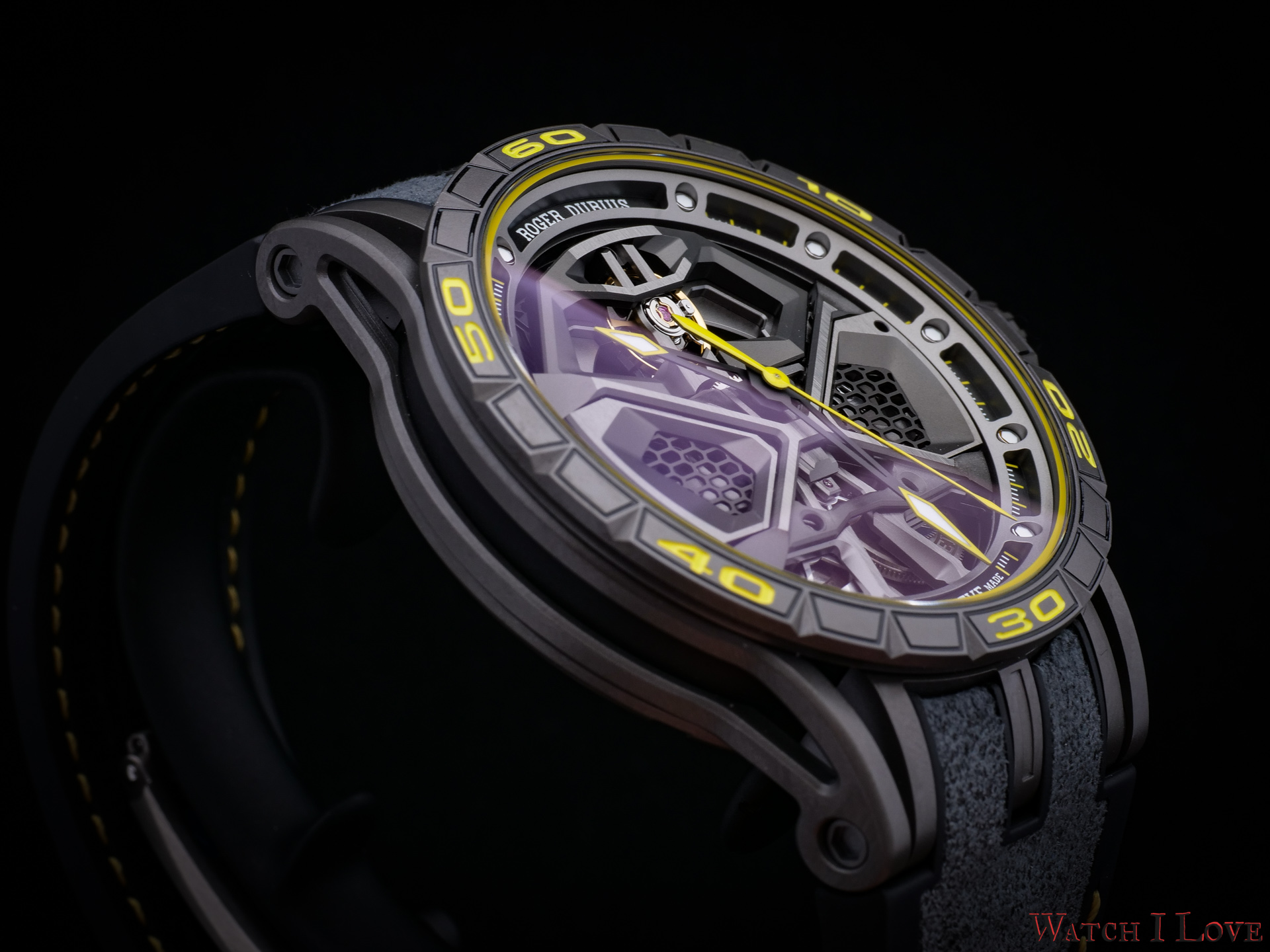 Despite the complex layered design, the case has a thickness of only 13.3mm. The curved lugs design and the light-weight choice of material makes from the Roger Dubuis Excalibur Huracán Performante an ultra-comfortable wrist companion.