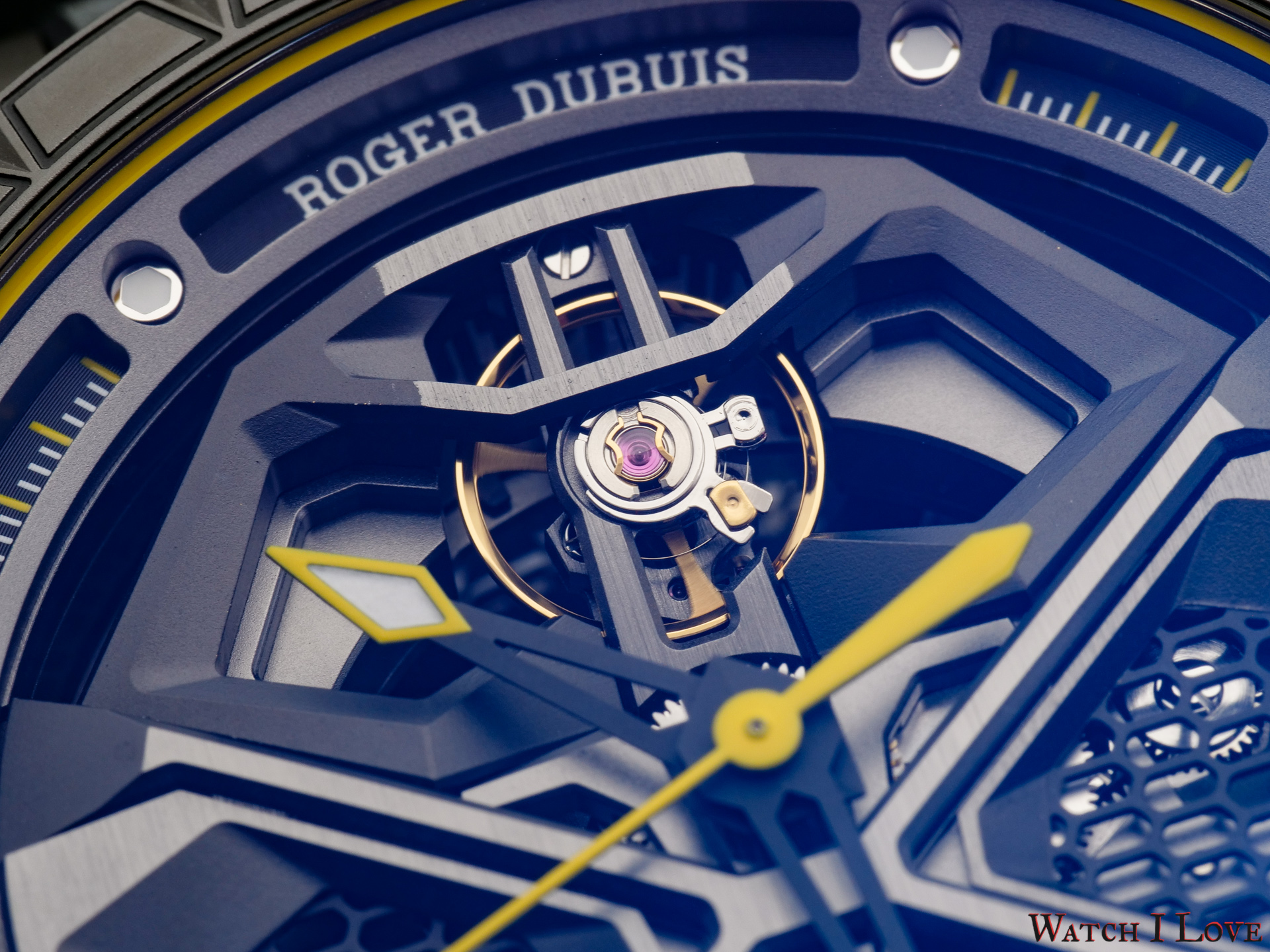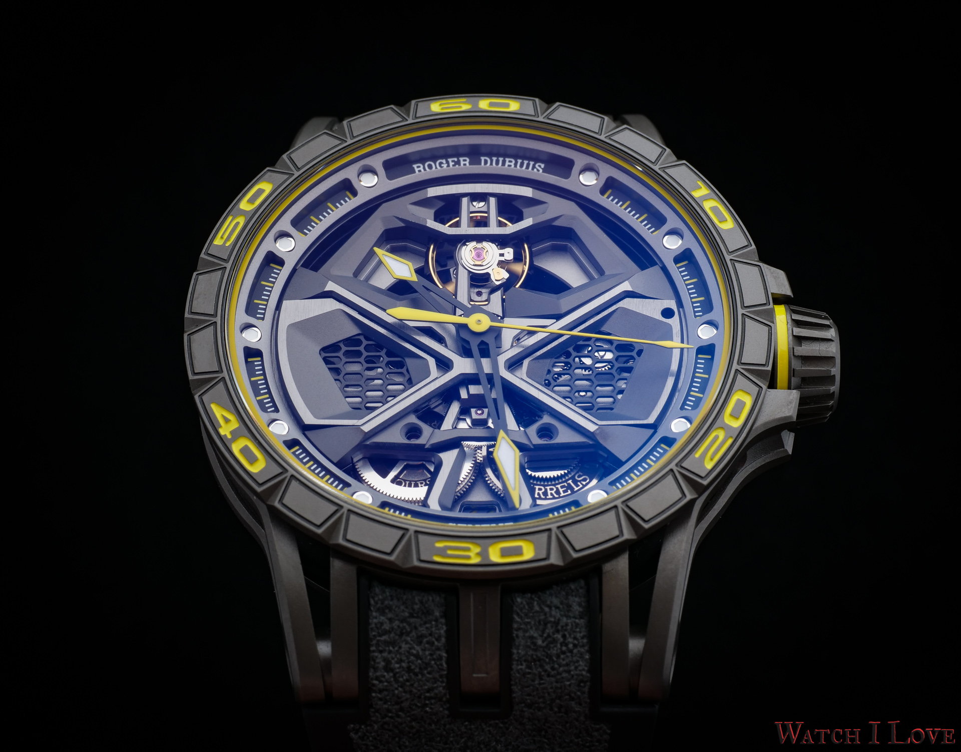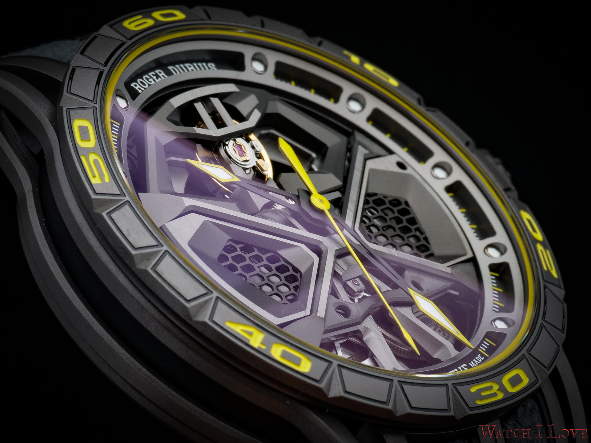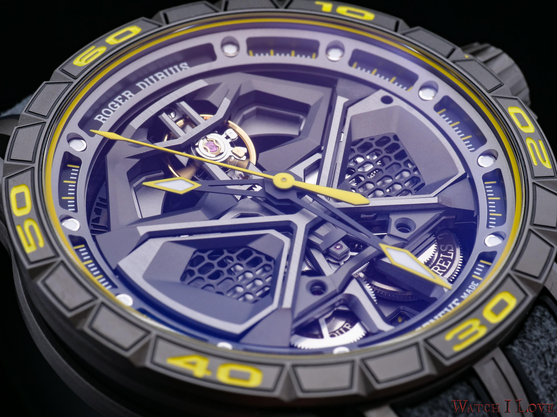 Roger Dubuis Excalibur Huracán Performante is by name, look and construction a high-performance timepiece. The watch is a bold appearance and catches anyone’s attention as something special. The selected materials are the top ones used in high end automotive. The watch inherits not only the fabulous look of the Lamborghini Huracán Performante but also the lightweight feel and top performances.