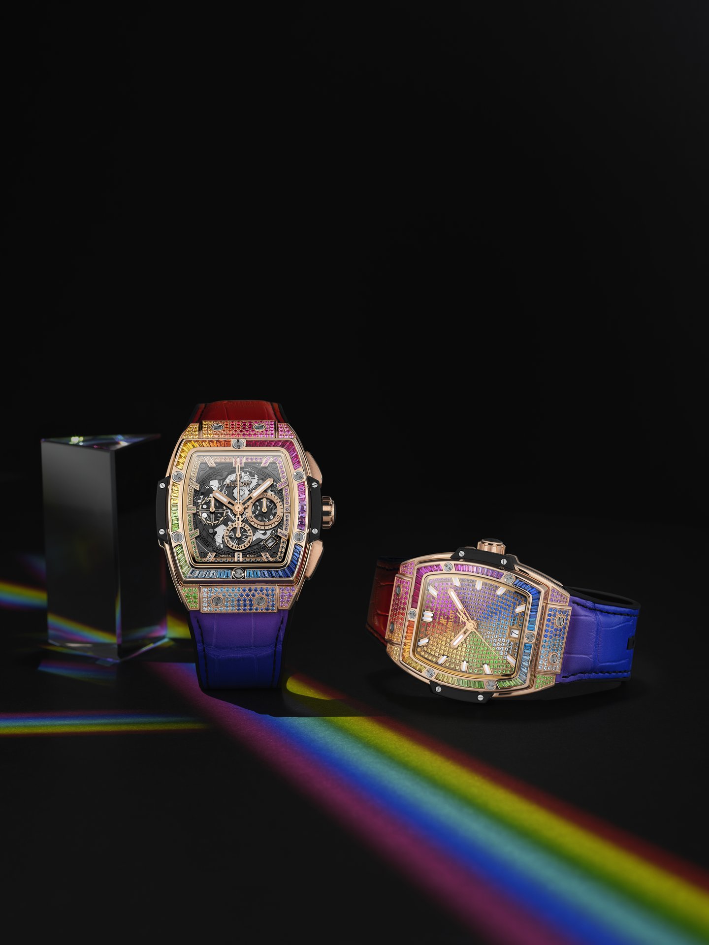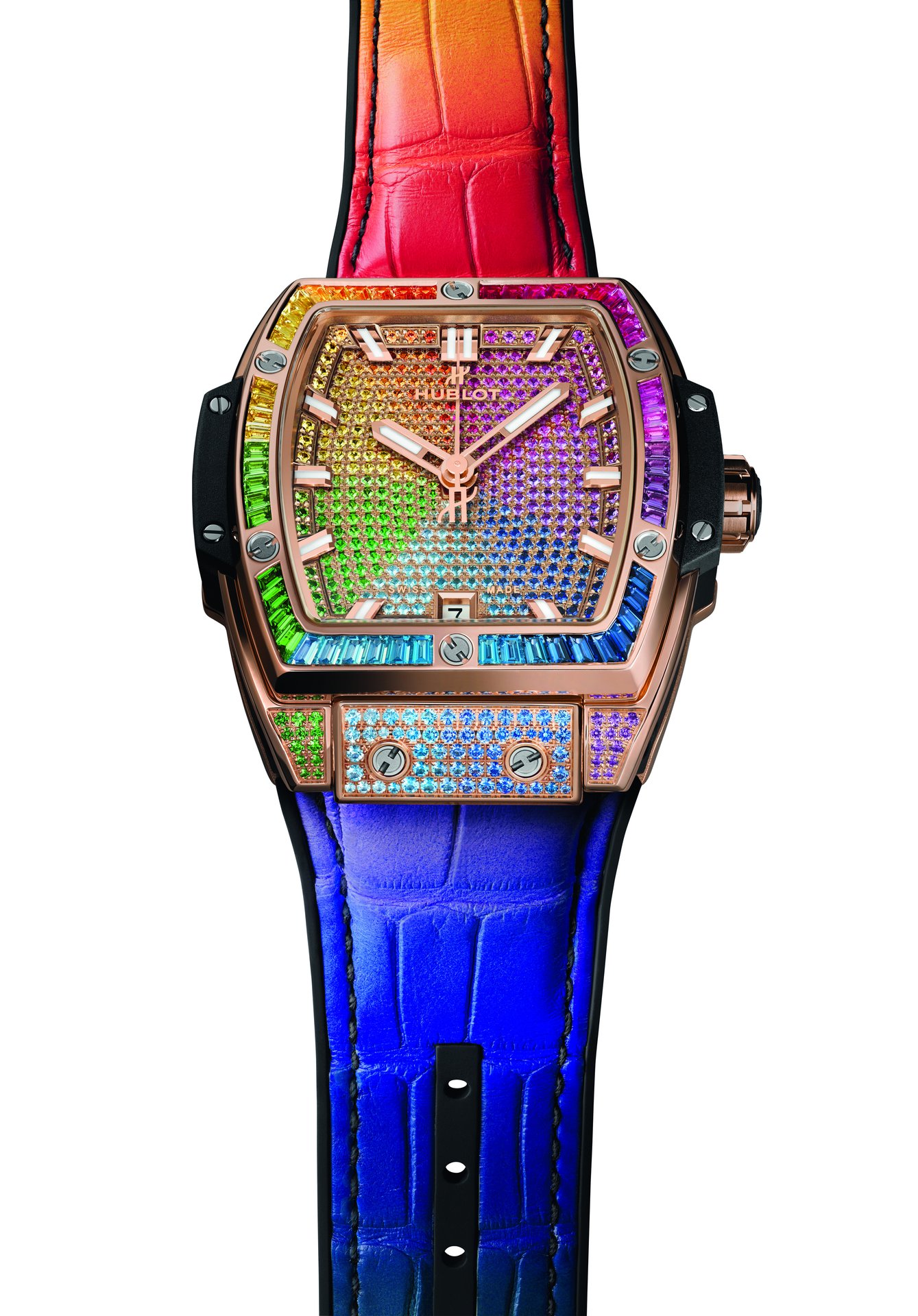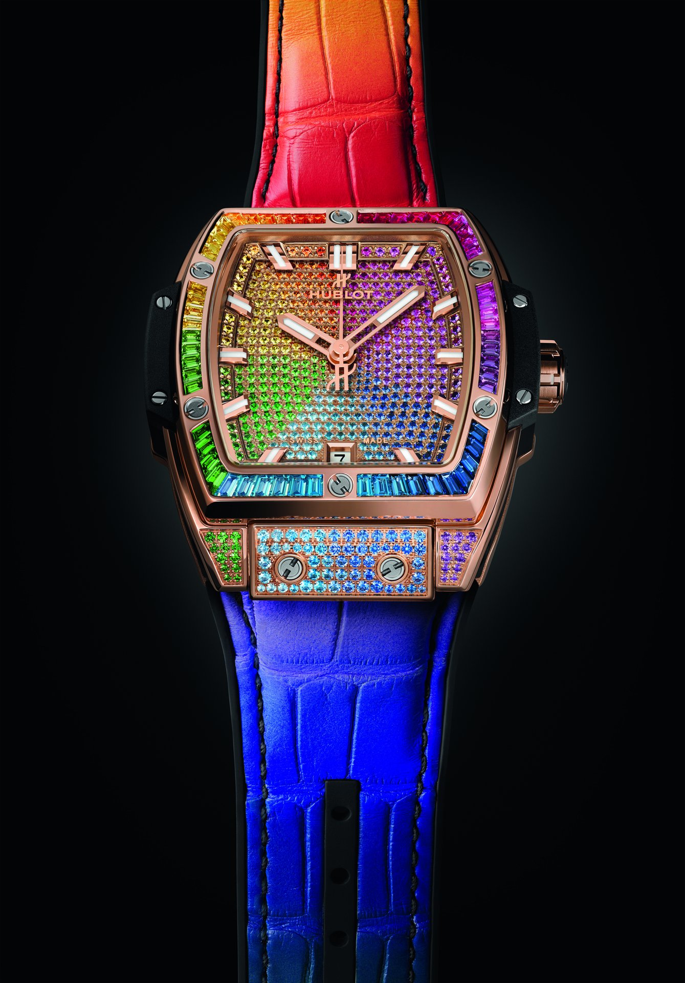 A celestial or divine manifestation that called for reverence or hope depending on the civilisation, this bridge between the earth and the sky was deconstructed by Isaac Newton in his theory on light and colours. These days, however, the rainbow remains a symbol of peace, joy and optimism. Like a modern alchemist, the master of the Art of Fusion, Hublot has rendered this fleeting optical phenomenon immutable by designing the Hublot Spirit of Big Bang Rainbow, two 39-mm and 42-mm timepieces, thus enshrouding the beginning of 2020 with good omens. Like a rainbow of gemstones, they make this colour spectrum sparkle, prolonging its hitherto ephemeral appearance.