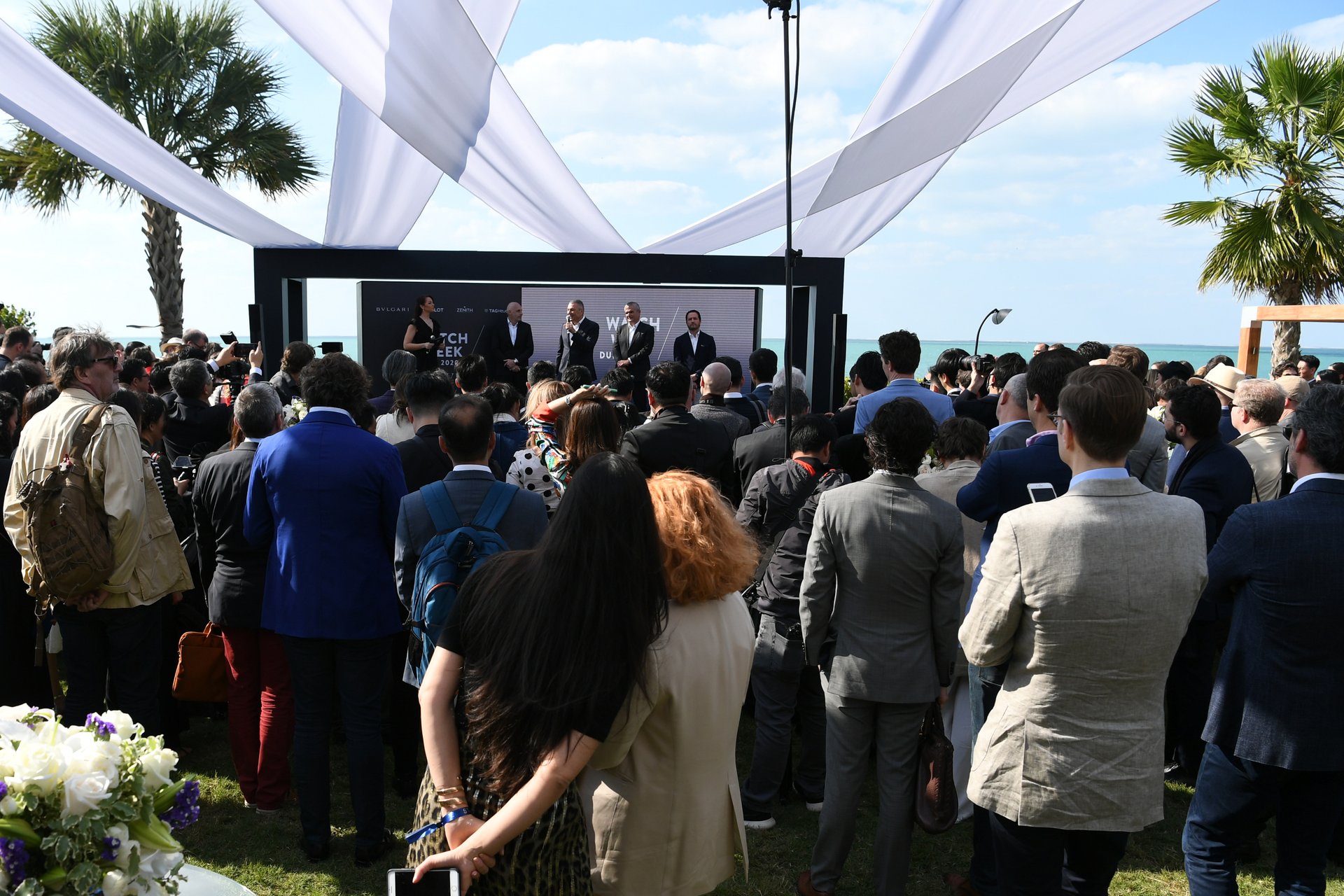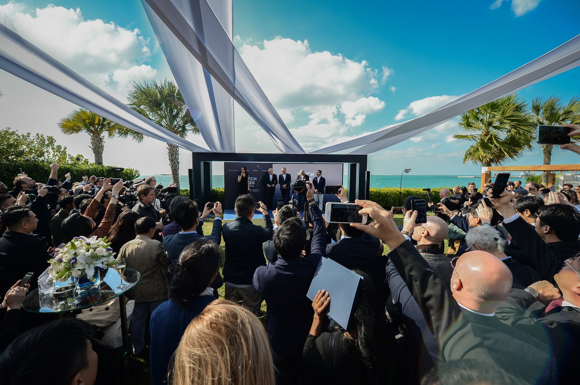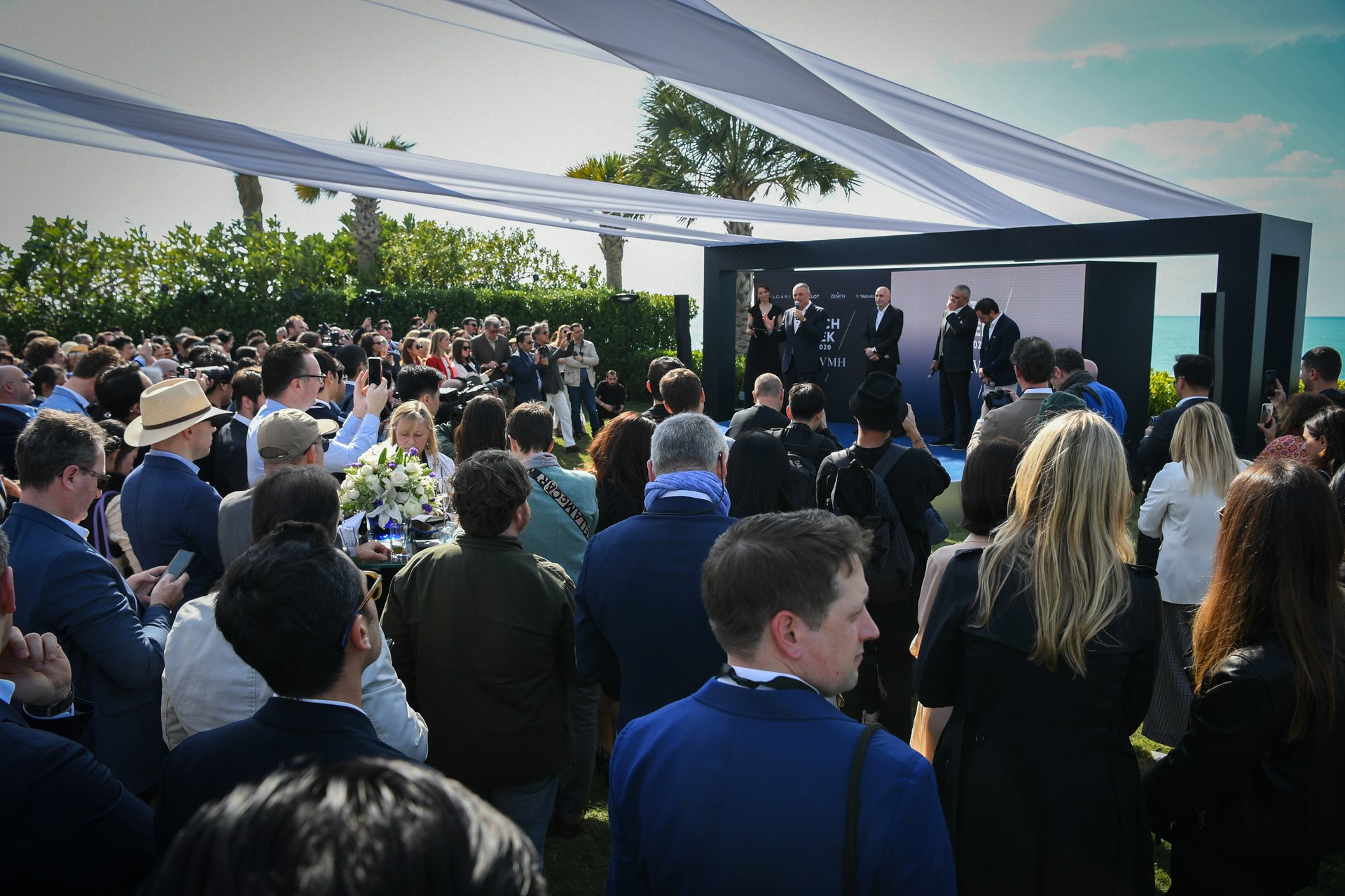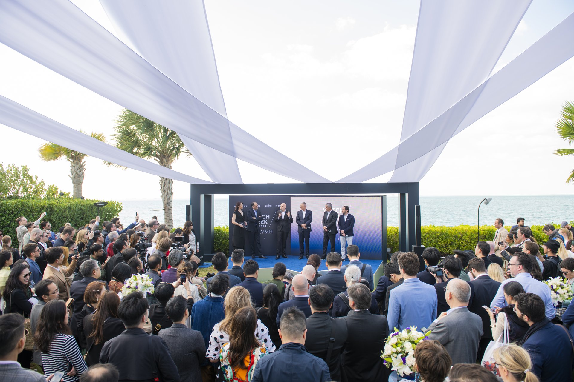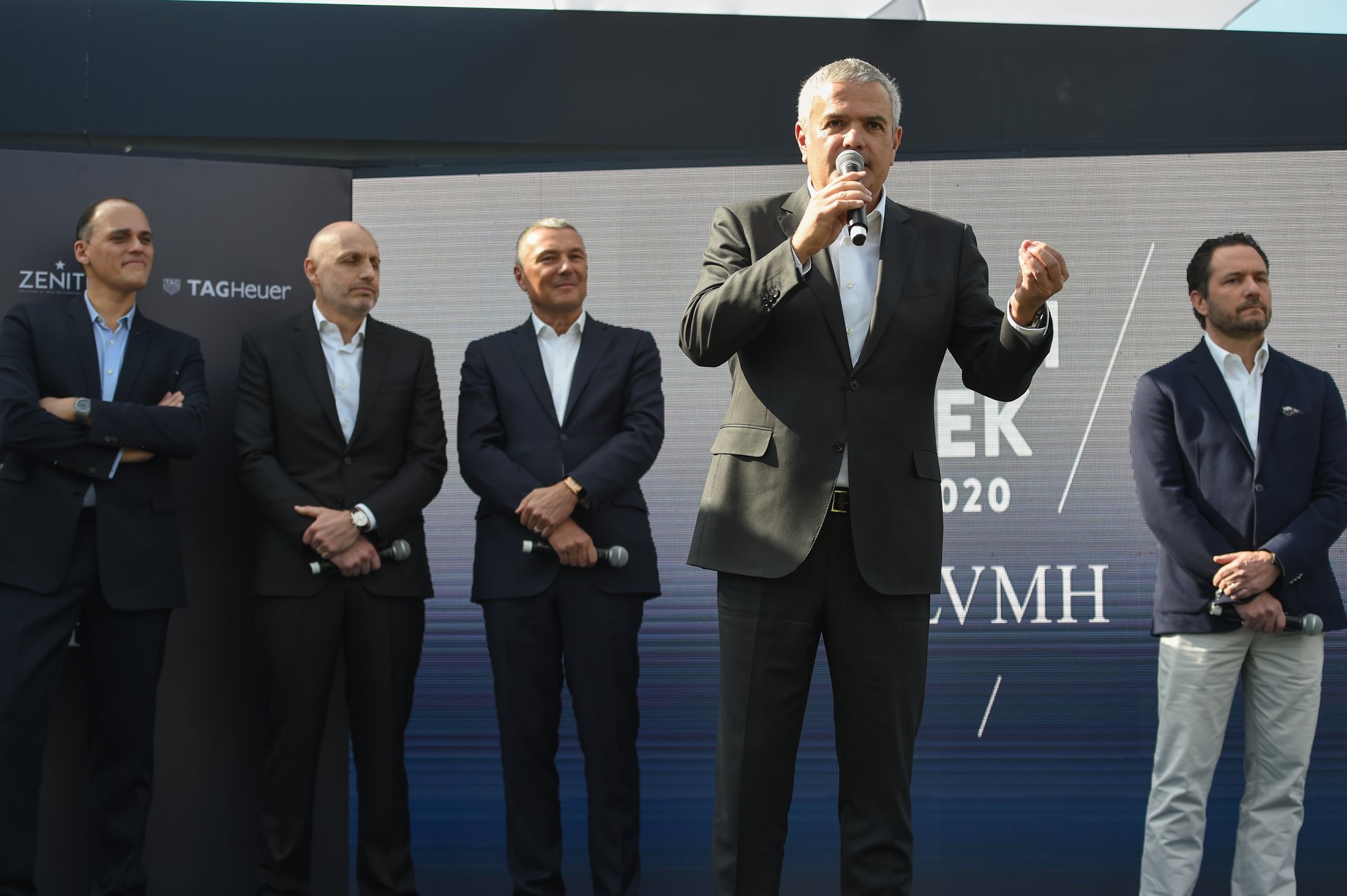 The event kicked off with a welcome press conference held in the garden of the Bvlgari Hotel Yacht Club. In attendance were Stéphane Bianchi, CEO of the LVMH Watchmaking Division and CEO of TAG Heuer, Jean-Christophe Babin, Bulgari CEO, Ricardo Guadalupe, Hublot CEO, and Julien Tornare, Zenith CEO.