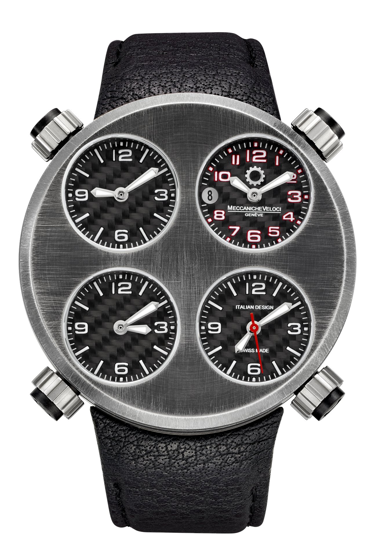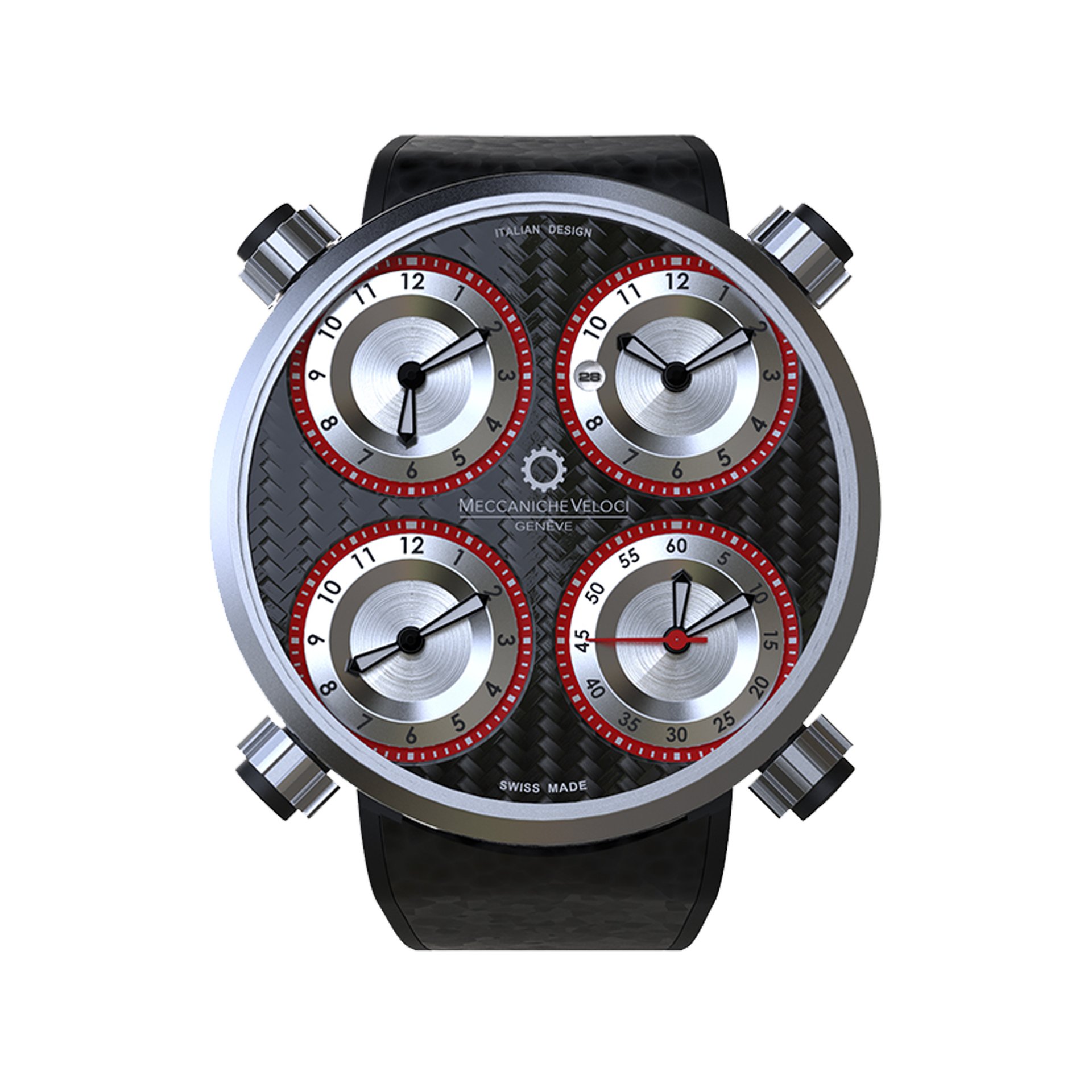 Since 2006, Meccaniche Veloci has been producing watches with a distinct, unmistakable aesthetic, featuring a piston-shaped case, 4 dials and inexhaustible passion originating from the world of engines. In 2016 the company moved to Switzerland and the brand became Meccaniche Veloci – Genève. Its essence remained unchanged, but a new “engine” was developed for the timepiece with the manufacture calibre MV8802, a unique movement capable of handling the brand’s characteristic four time zones simultaneously. Production is concentrated on the Icon and QuattroValvole models. This marked a new direction for the Meccaniche Veloci, which has now joined the ranks of 100% Swiss Made independent high-end watchmaking brands