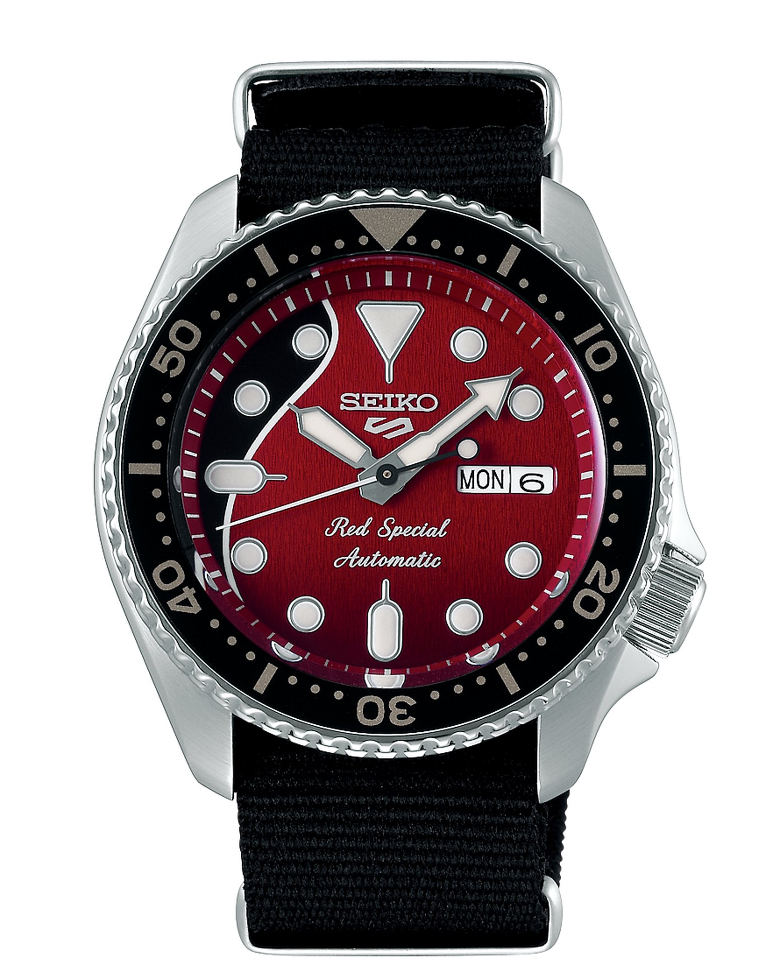 With the long-trusted caliber 4R36 at its heart, 10 bar water resistance, a Hardlex crystal and its robust steel case, it has all the qualities that have made Seiko 5 Sports so many fans down the decades. The dial has the same red and black color scheme as the ‘‘Red Special’’ and features a delicate wood-like pattern like the body of the guitar.