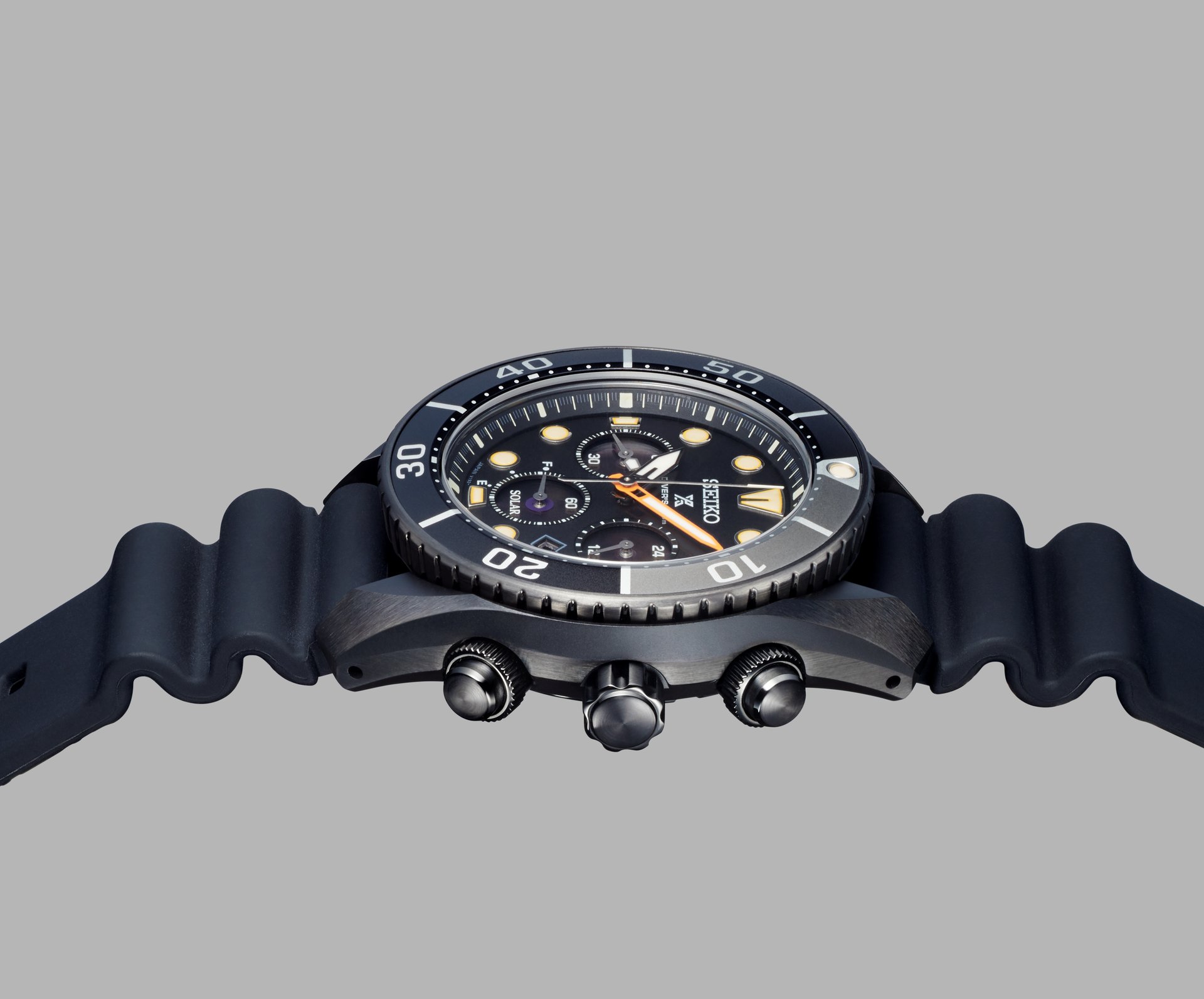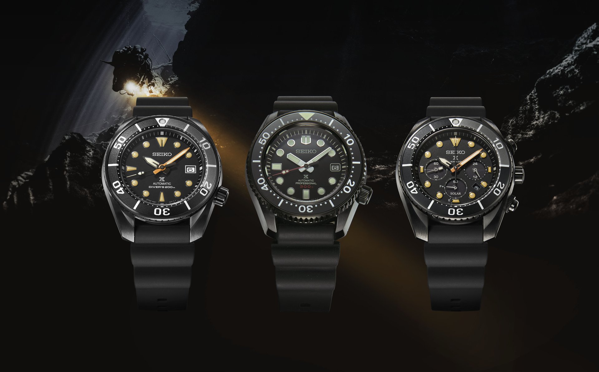 Seiko Prospex Black Series Limited Edition – The tropical seas show many expressions as the sun sets, changing its color from a cobalt-blue to a dark jet-black wrapped in the silence of the night. The mystical charm of the sea at night makes night diving a sought-after activity for those fascinated by the contrasting appeal from the sea at daytime. Today, a series of all-black diver’s watches inspired by the dramatic and mysterious world of the nighttime ocean is born.