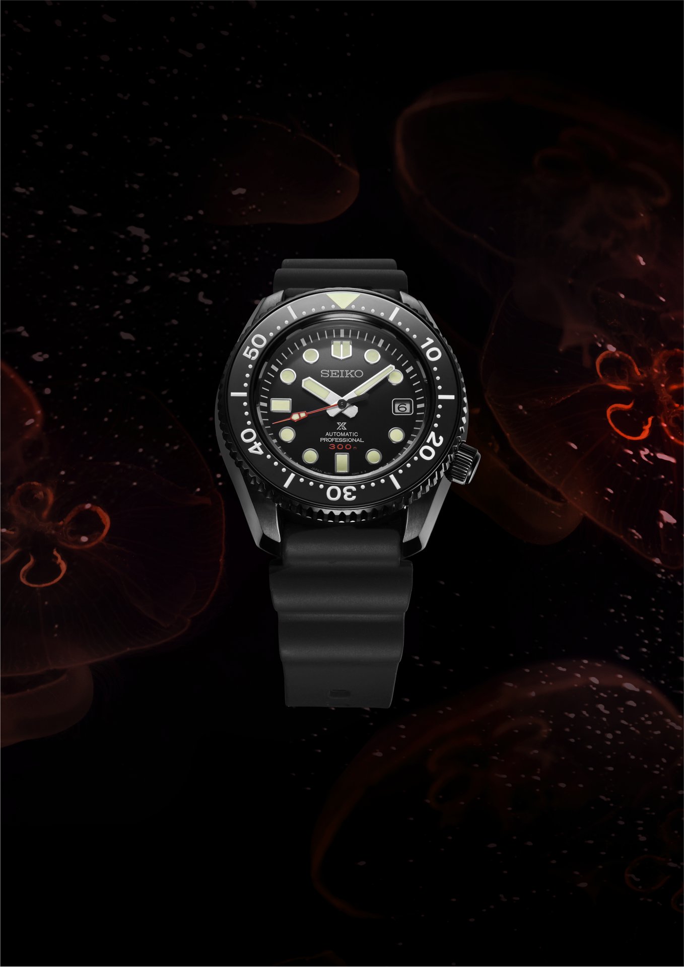 As culmination of Seiko’s developments in watchmaking technology, today a saturation diver’s watch in an all-black case with a red-accented dial offering water-resistance of up to 300m is introduced.