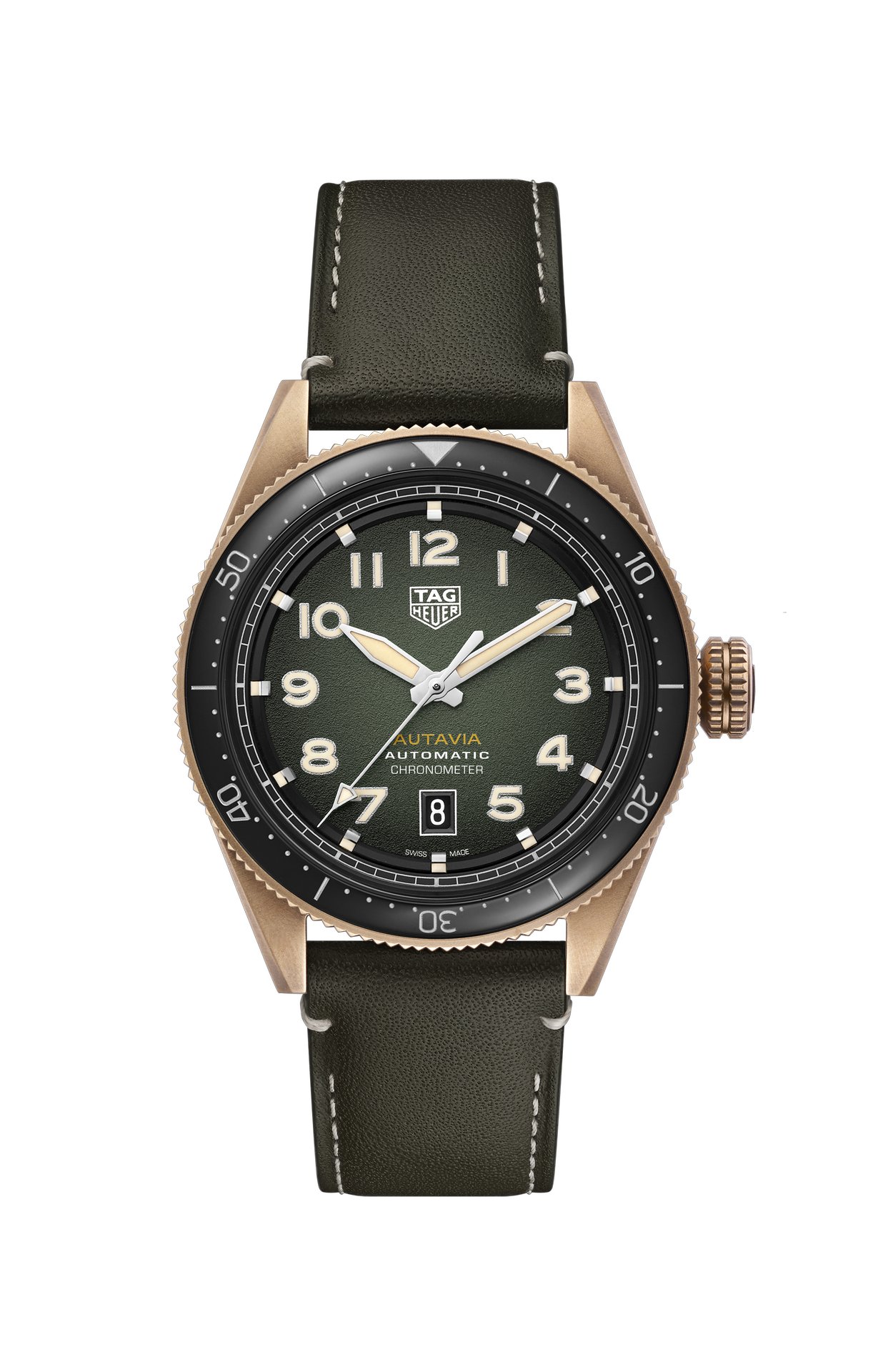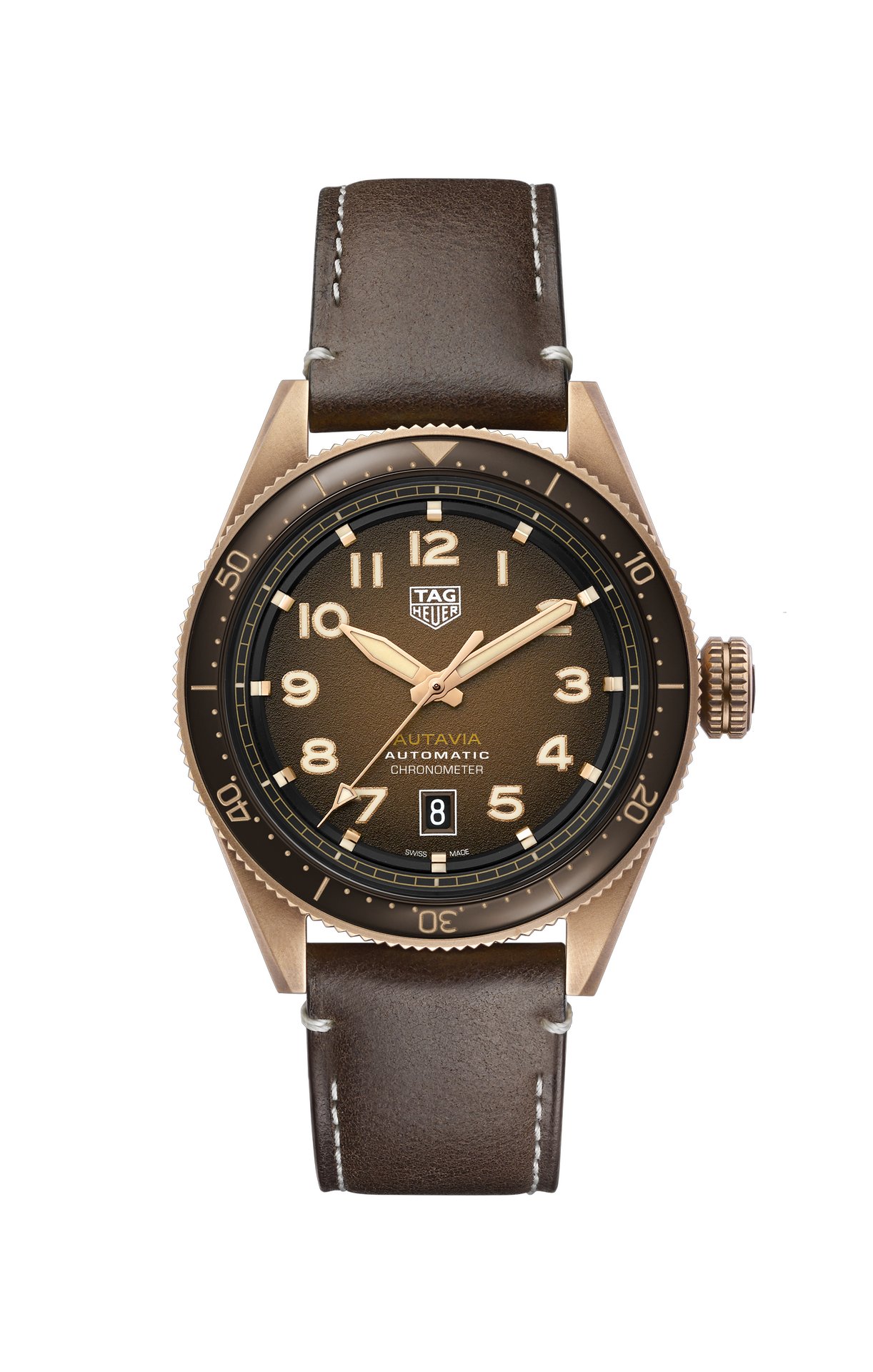 TAG Heuer’s stylish, cockpit-inspired watch features eye-catching elements that are rooted in the history of the line. What fans loved about the original – its functionality, timeless style and numerous combinations – are also evident in these stylish new models. The extra-large crown takes inspiration from pilot’s watches and timers that featured oversized crowns to make them easier to use while wearing gloves. The original Autavia was known for being highly legible in any conditions, and this is also the case with the bronze versions. The hour markers and hour, minute and seconds hands are coated in SuperLuminova®, making it possible to read the time even when the wearer’s adventure leads them into the dark.
