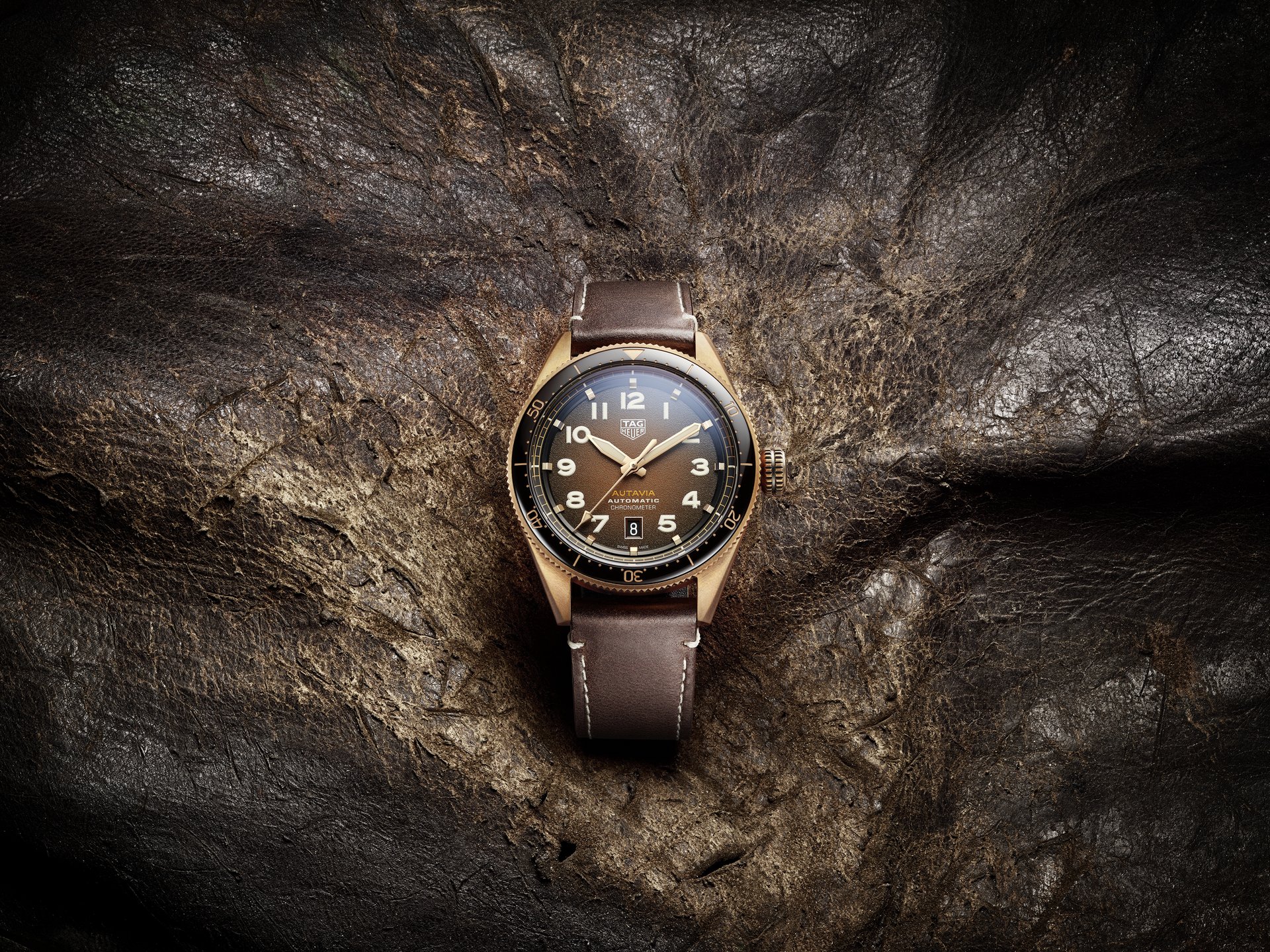 Bronze is not only elegant and characteristically timeless, it is also rugged and ready for a lifestyle that includes the great outdoors. The warm appearance of the metal alloy has long been valued by watch fans and collectors. It is anti-magnetic and resistant to normal wear and tear. Bronze is also well known for its maritime heritage – it is not susceptible to saltwater corrosion, making the bronze Autavia models suitable for ocean adventures.