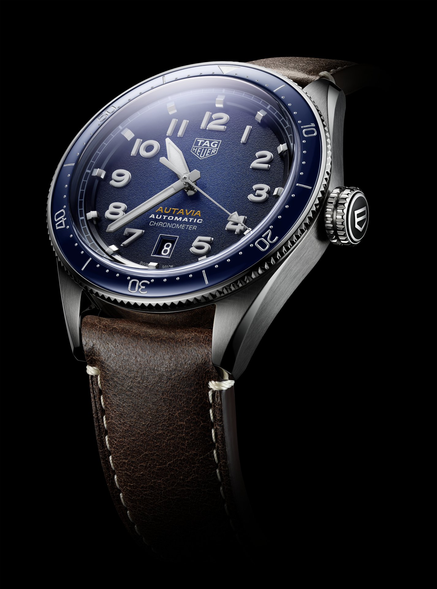 Suitable for any adventure or any style, the strap or bracelet of every model in the Autavia collection is interchangeable. The leather calfskin straps come in dark brown or light brown. A NATO strap is included in the watch box of the timepieces that are presented on a stainless-steel bracelet. The bracelet and strap are easy to switch at home using simple push buttons on the underside of the case – no tools are necessary. The NATO straps, leather straps and stainless-steel bracelets are sold separately, so wearers can create their own combinations to complement their unique look.
