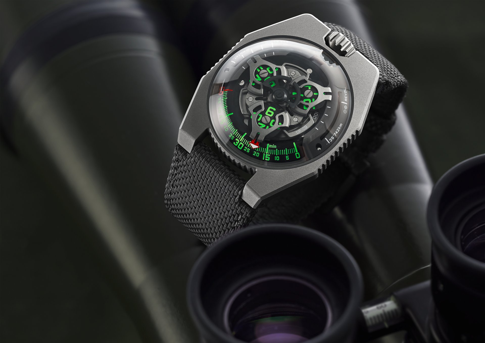 It’s a journey displayed on the dial of the UR-100 GunMetal.