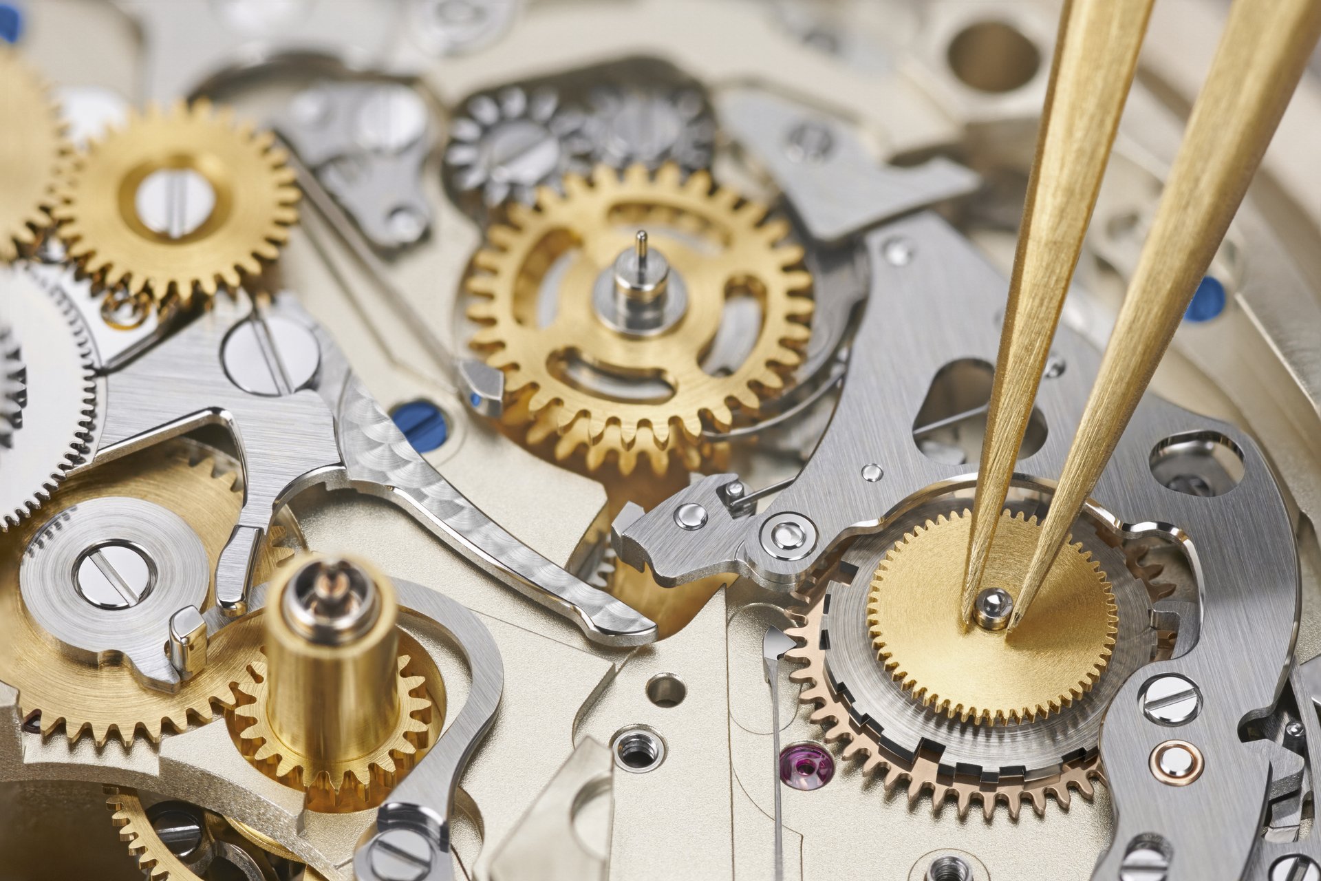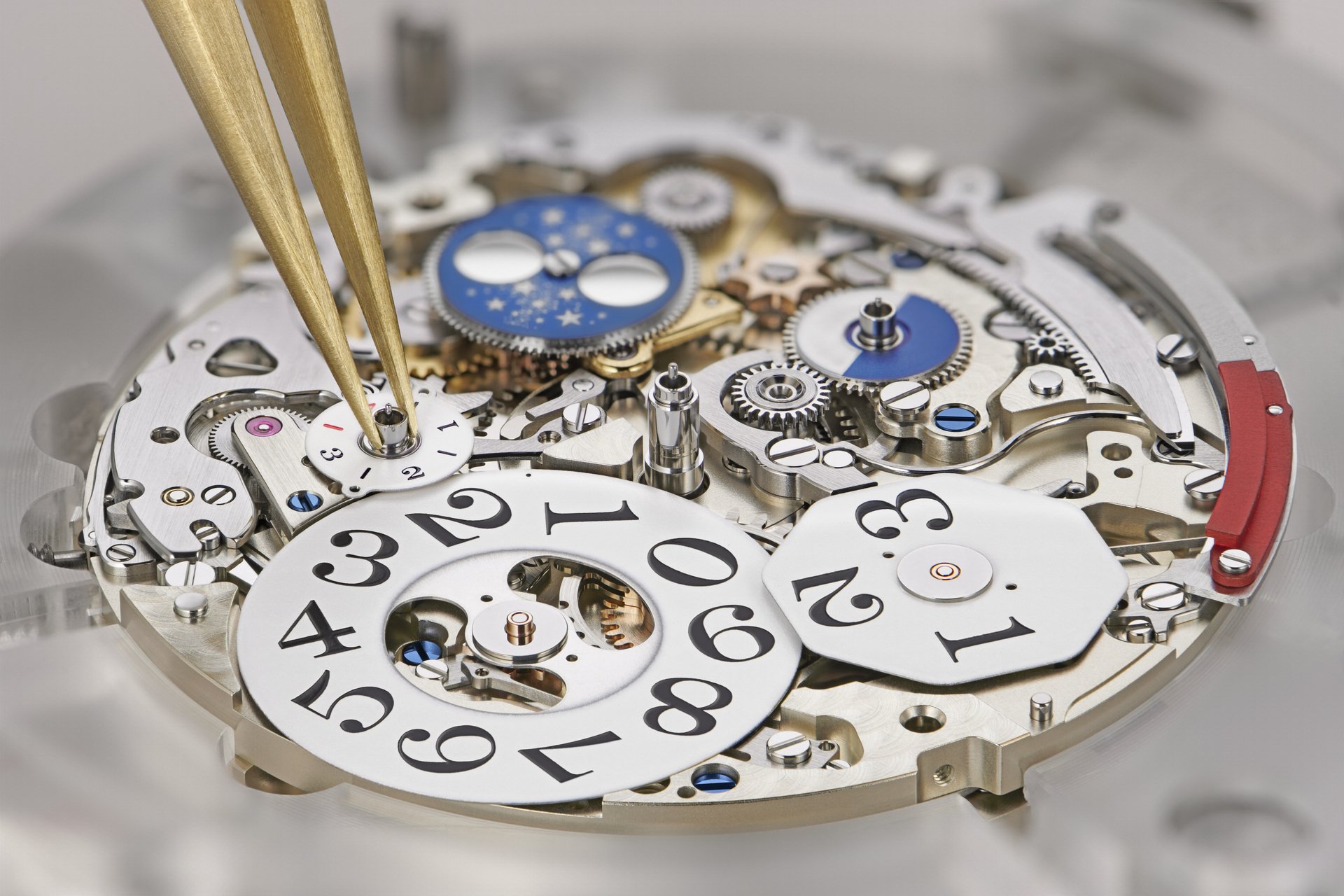 TOURBOGRAPH PERPETUAL “Pour le Mérite” (calibre L133.1); the bearing of the programme wheel is being lubricated with oil. It goes around once in four years and contains the information as to the different lengths of the 48 months in the four-year cycle.