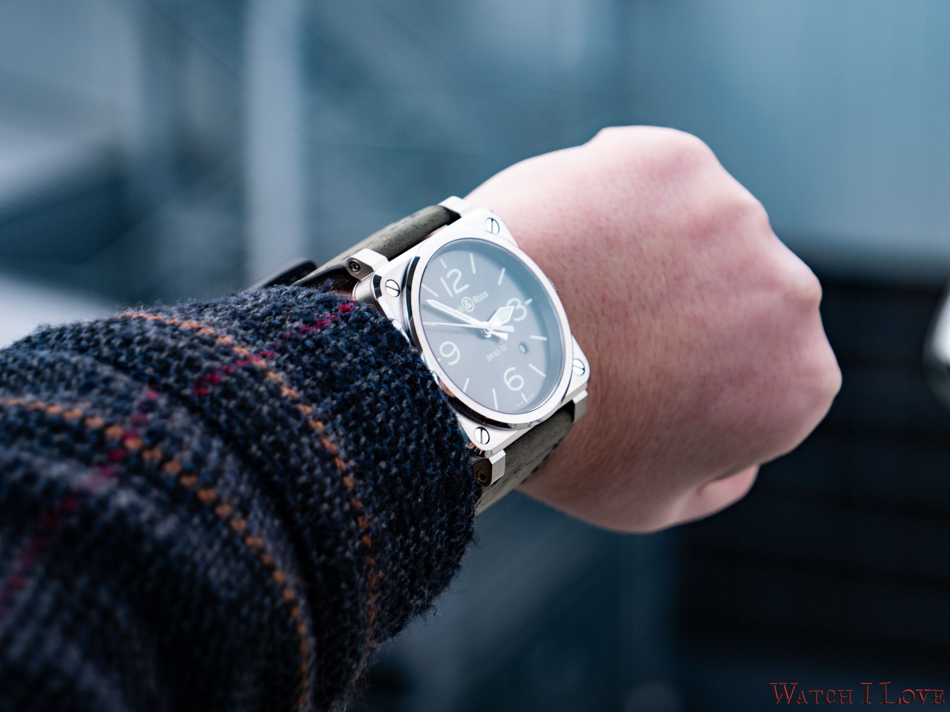 The watch feels great on the wrist. So great that I had to split my wrist time with Diana (my wife). The great legibility and the grey theme catch her attention. Bold but not too intrusive. Large but not uncomfortable. It has an easy way of setting and winding, completely effortless. I can understand perfectly why ladies collector tend to add Bell & Ross to the wish list or on the daily wear list.
