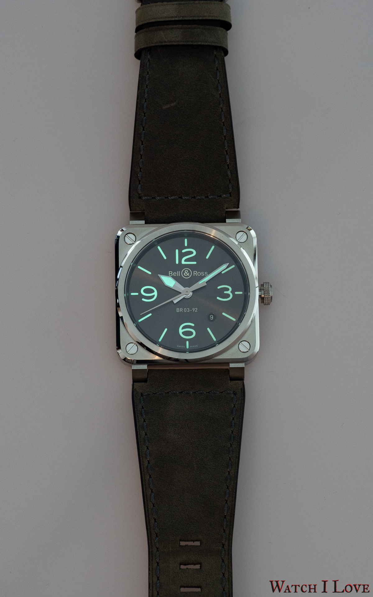 And if you are asking how cool the Super-LumiNova® C3 is on the dial of the Bell & Ross BR 03-92 Grey Lum I will just tell you this: I was at the Imax 3D last Sunday. I was waiting to start the Hubble documentary and it was relative dark (not pitch black) and I had a quick look to see if it is late. Besides the bright numerals and hands, the guy behind me leaned over and I could hear: “Oh! Woah”.