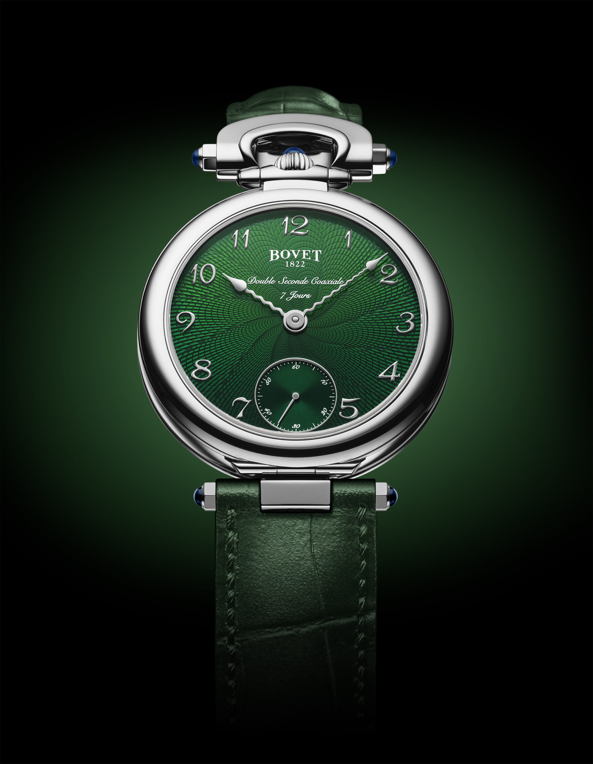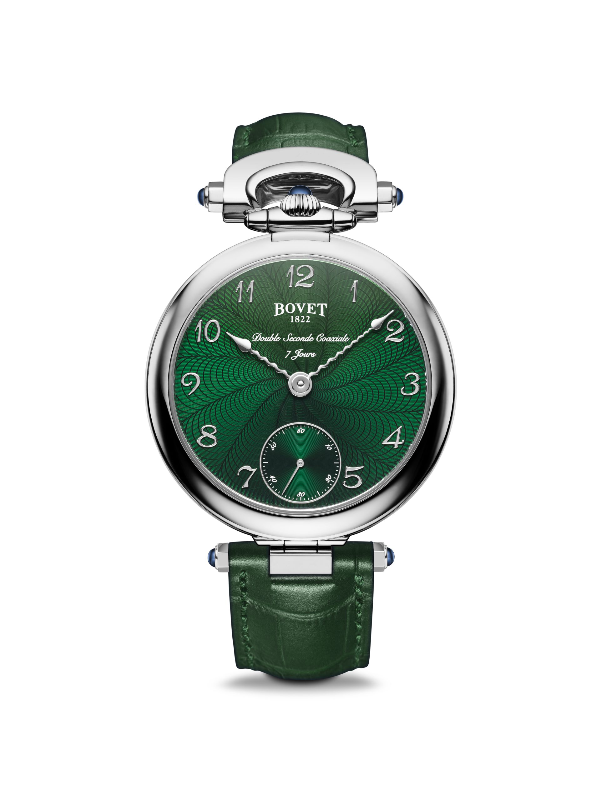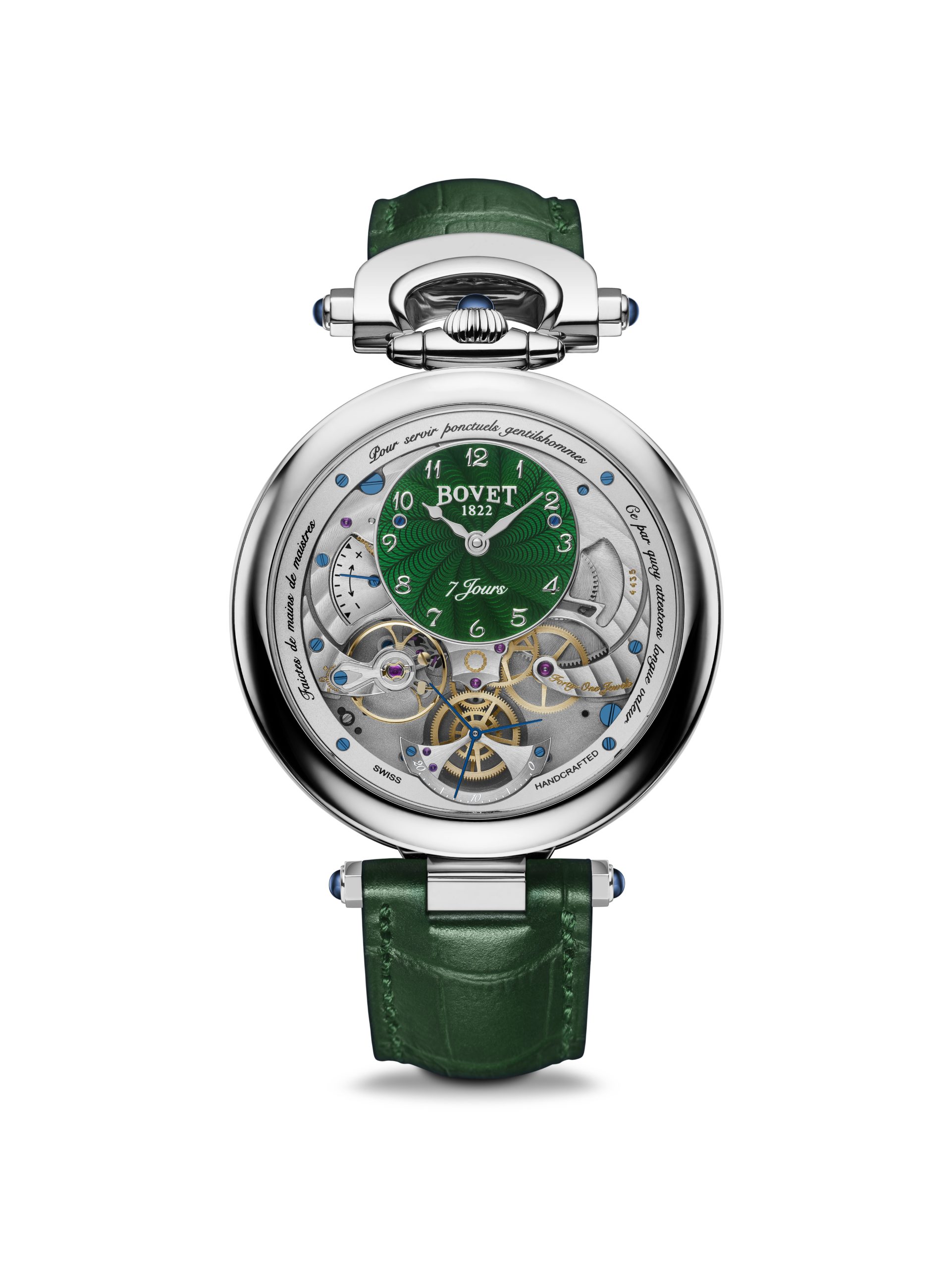 In 2020, the House of BOVET is showcasing green dials across its collections. The iconic Bovet Miss Audrey and Monsieur Bovet are two of the many designs adorned in this colour. In many cultures, green is a symbol of hope, luck, growth, and nature. Today, this link also symbolizes environmental protection. What cleaner energy is there than the one that powers a mechanical watch movement ? Or what eco-friendlier approach than storing this energy in a barrel that can provide this function for centuries?