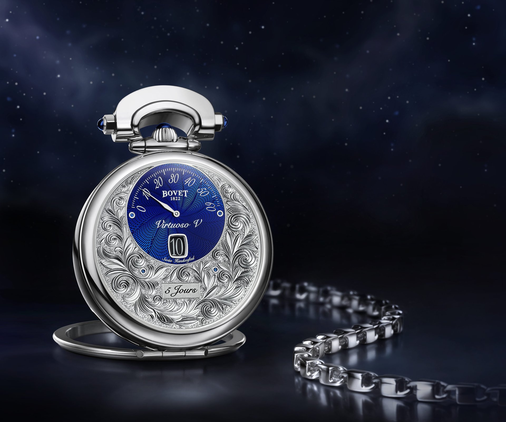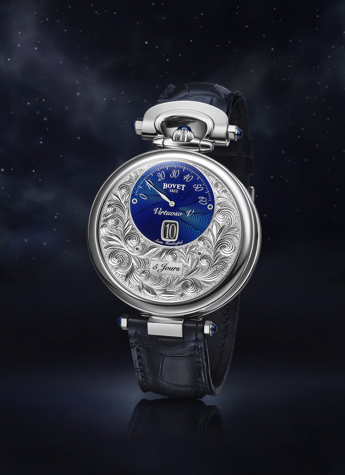 Introduced to the BOVET collections in 2015, Virtuoso V was the first timepiece powered by the Virtuoso II calibre to feature additional complications. These were a jumping hour paired with retrograde minutes. Five years later, the Maison’s artisan watchmakers and dial-makers have joined forces to give it a new face – Bovet Amadéo Fleurier Virtuoso V.