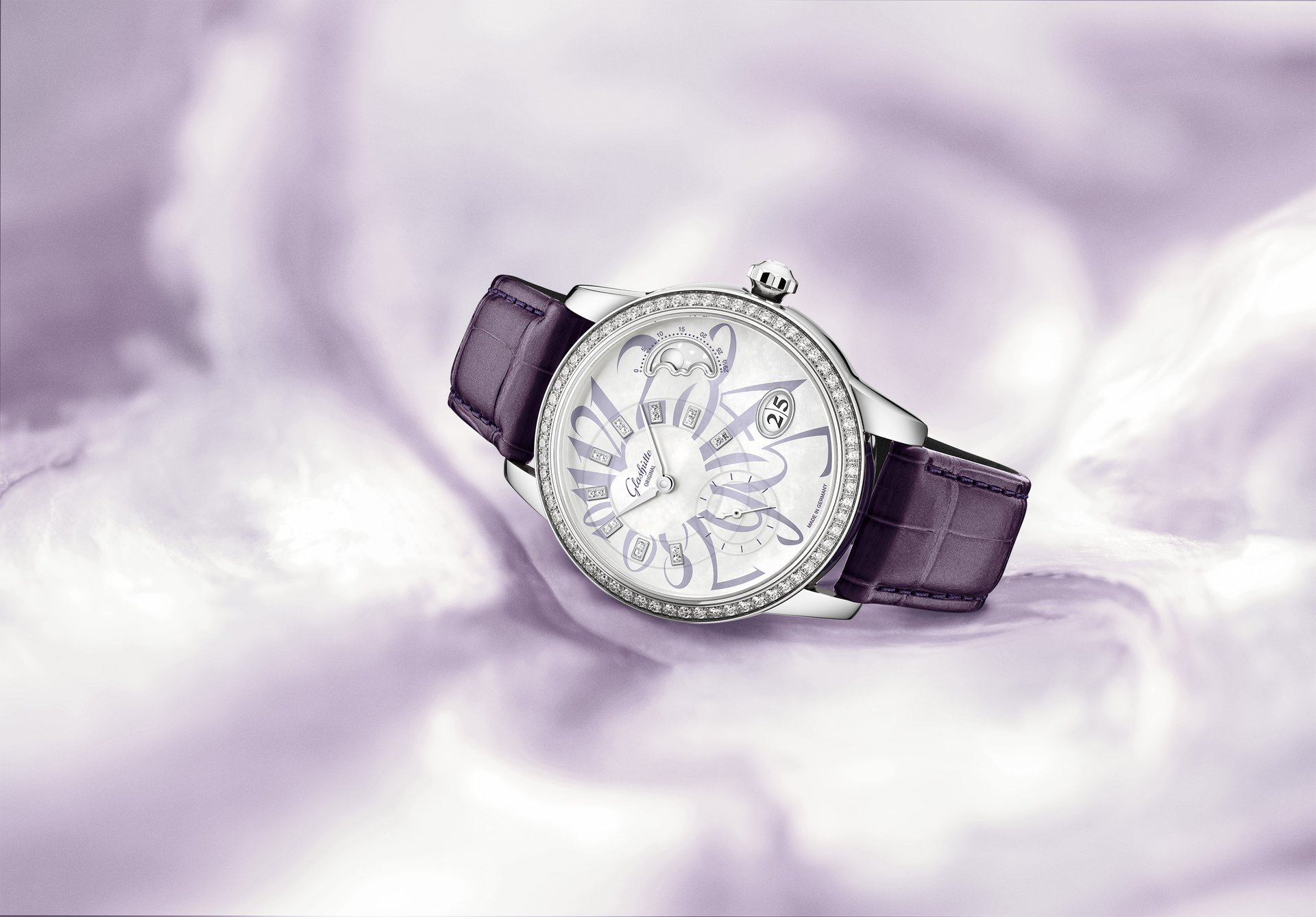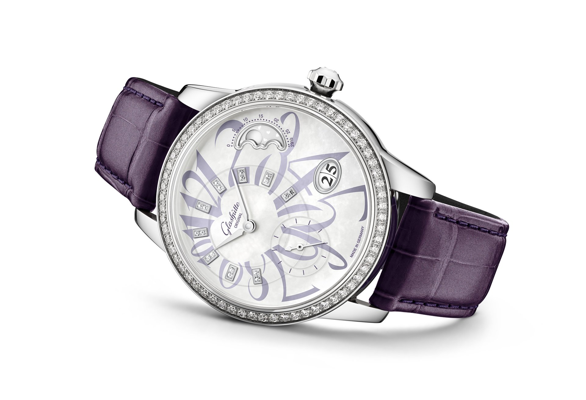 On the day of love, the most beautiful feeling in the world takes precedence. Romance and hope lie in the air, hours and minutes fly by and moments are as light as a feather. This feeling of awakening love is reflected in the new PanoMatic Luna from Glashütte Original. The dial of the new ladies’ watch is presented softly and playfully, with diamond-set rod indexes and lilac Arabic numerals forming a heart at the centre. The PanoMatic Luna is limited to 25 pieces and adds another feminine masterpiece to the Lady Collection.