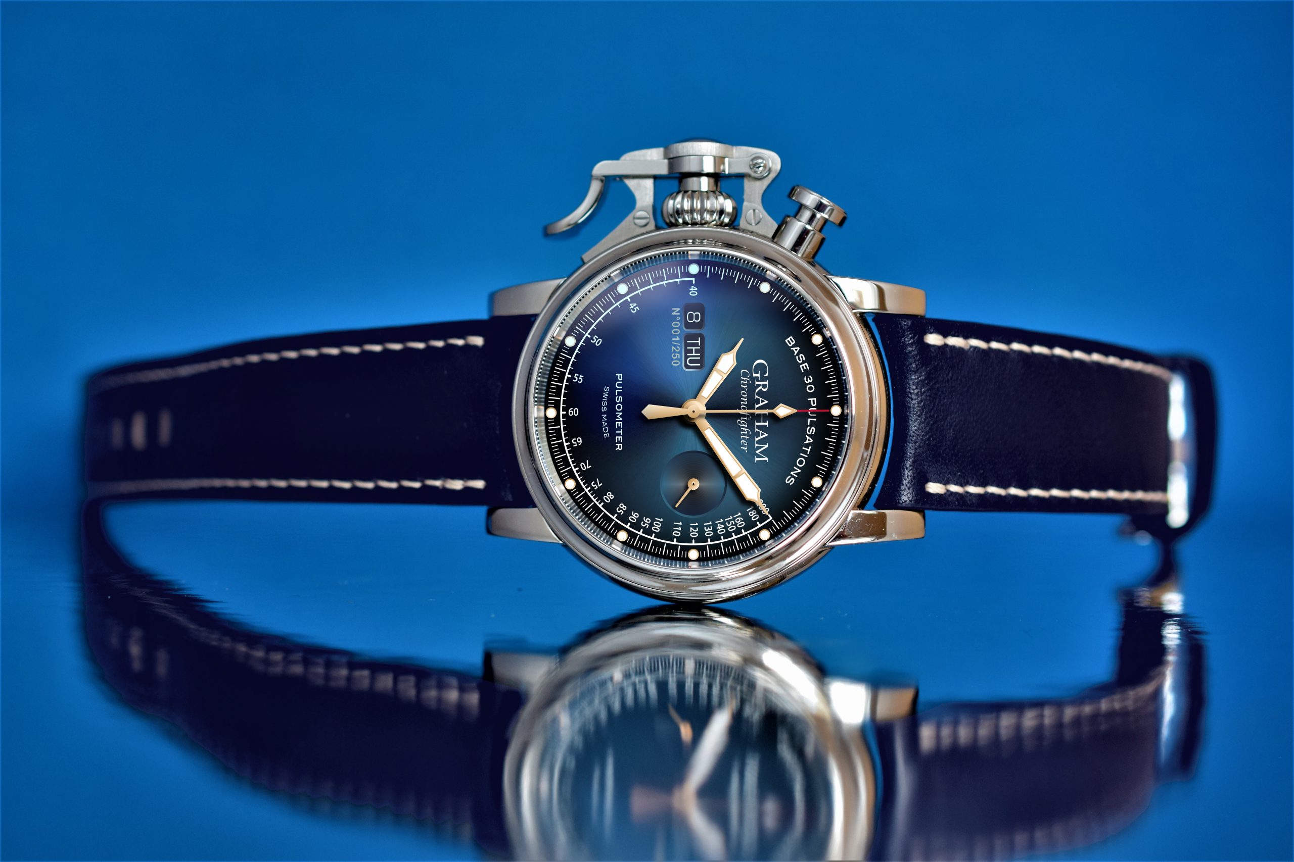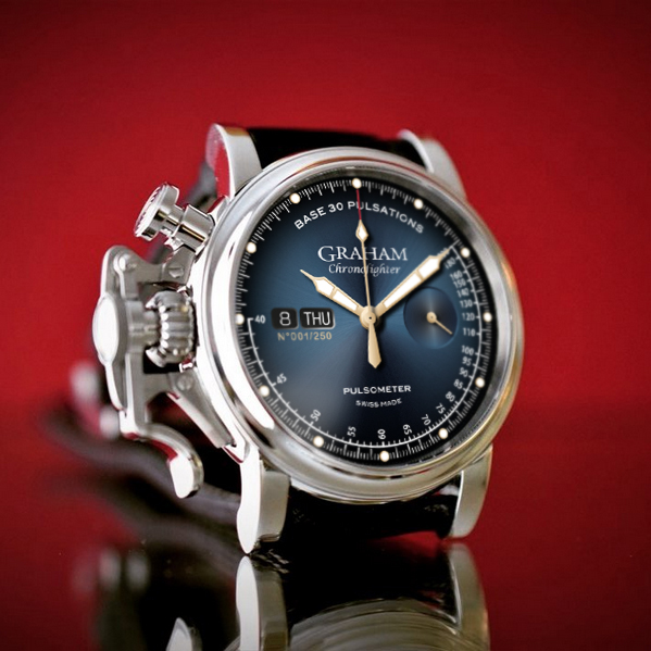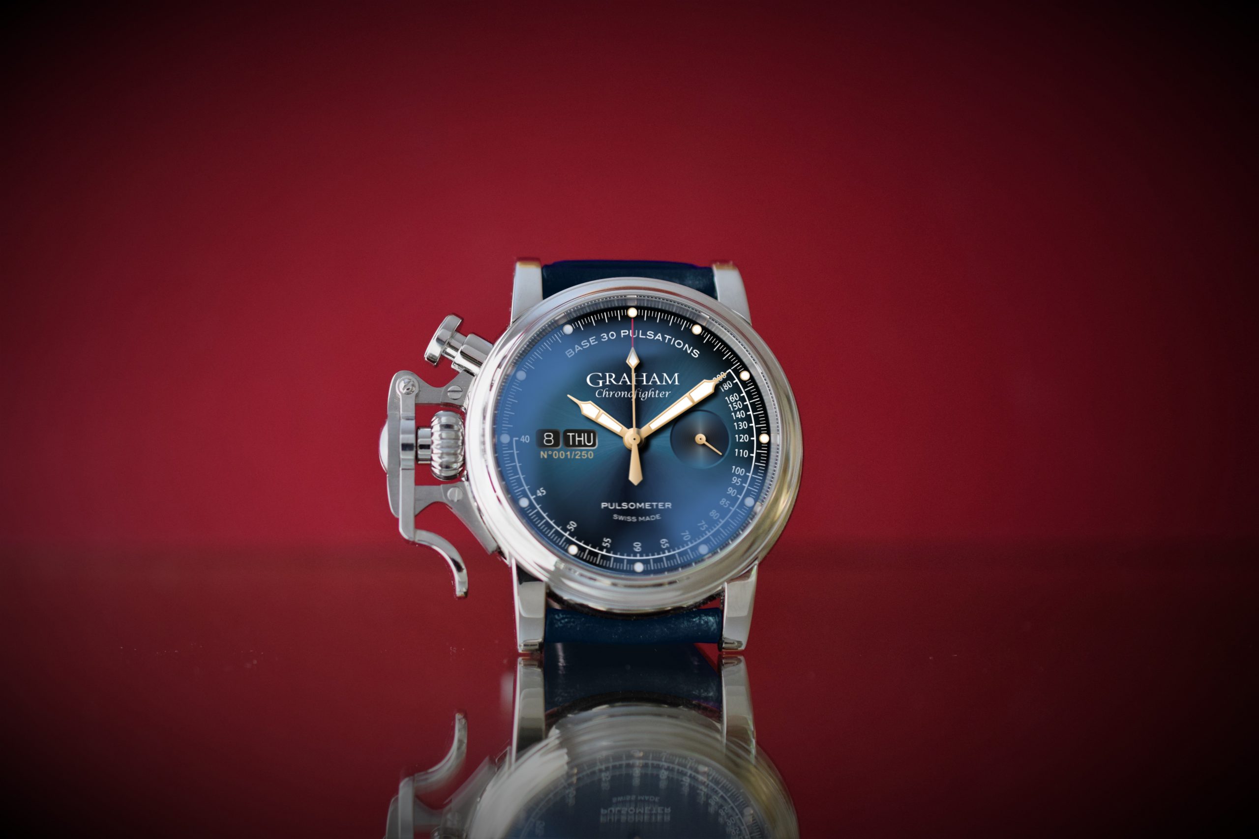 Graham has proven expertise in feeling the pulse of the times. The latest member of the Chronofighter Vintage range synchronises sophisticated modern horology with the inspirational beat of 1950s Los Angeles. With an integrated pulsometer function, this eye-catching automatic chronograph has the capacity to monitor all rhythms of the heart and soul with great accuracy. It’s able to measure human heartbeats and feels equally at home with the peaks and troughs of electronic house music. The mini-metronome has the potential to make the heart skip a beat in terms of stunning looks, authenticated by the iconic stop-start trigger. Whether syncopated jazz music or motivating gym playlists are on the programme, the Graham Chronofighter Vintage Pulsometer Ltd presents a convincing case for mechanical being the new smart.