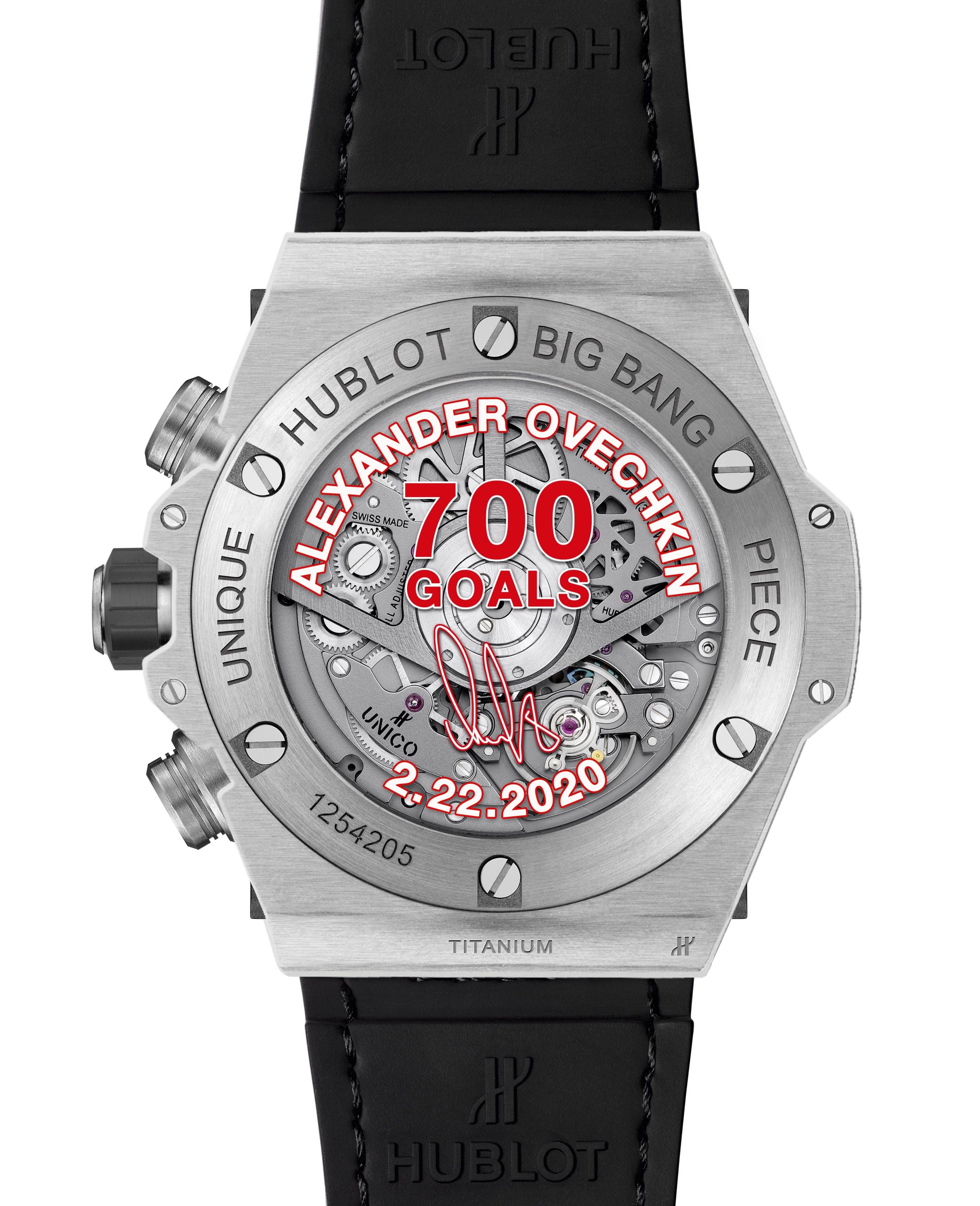 Congratulations Alexander Ovechkin! Alexander, captain of the Washington Capitals ice hockey team and a Hublot Friend of the Brand, scored his 700th career goal on February 22 in a game against the New Jersey Devils in Newak, NJ. To mark this milestone achievement, the Capitals presented ‘Ovi’, as Alexander is affectionately known, with a unique Hublot Big Bang UNICO Titanium.