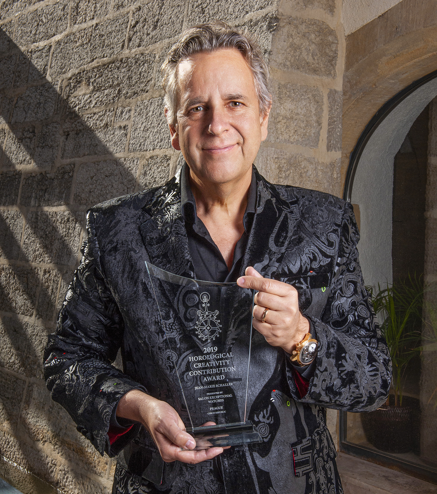 The amazing Salon Exceptional Watches (SEW) in Prague brought together 44 leading watchmaking brands. A single prestigious distinction, the HOROLOGICAL CREATIVITY CONTRIBUTION PRIZE, was awarded for the very first time – and Jean-Marie Schaller was proud to be its very first recipient. As panel member Igor Sirota explained, the prize was awarded in recognition of Jean-Marie’s outstanding overall contribution to watchmaking.