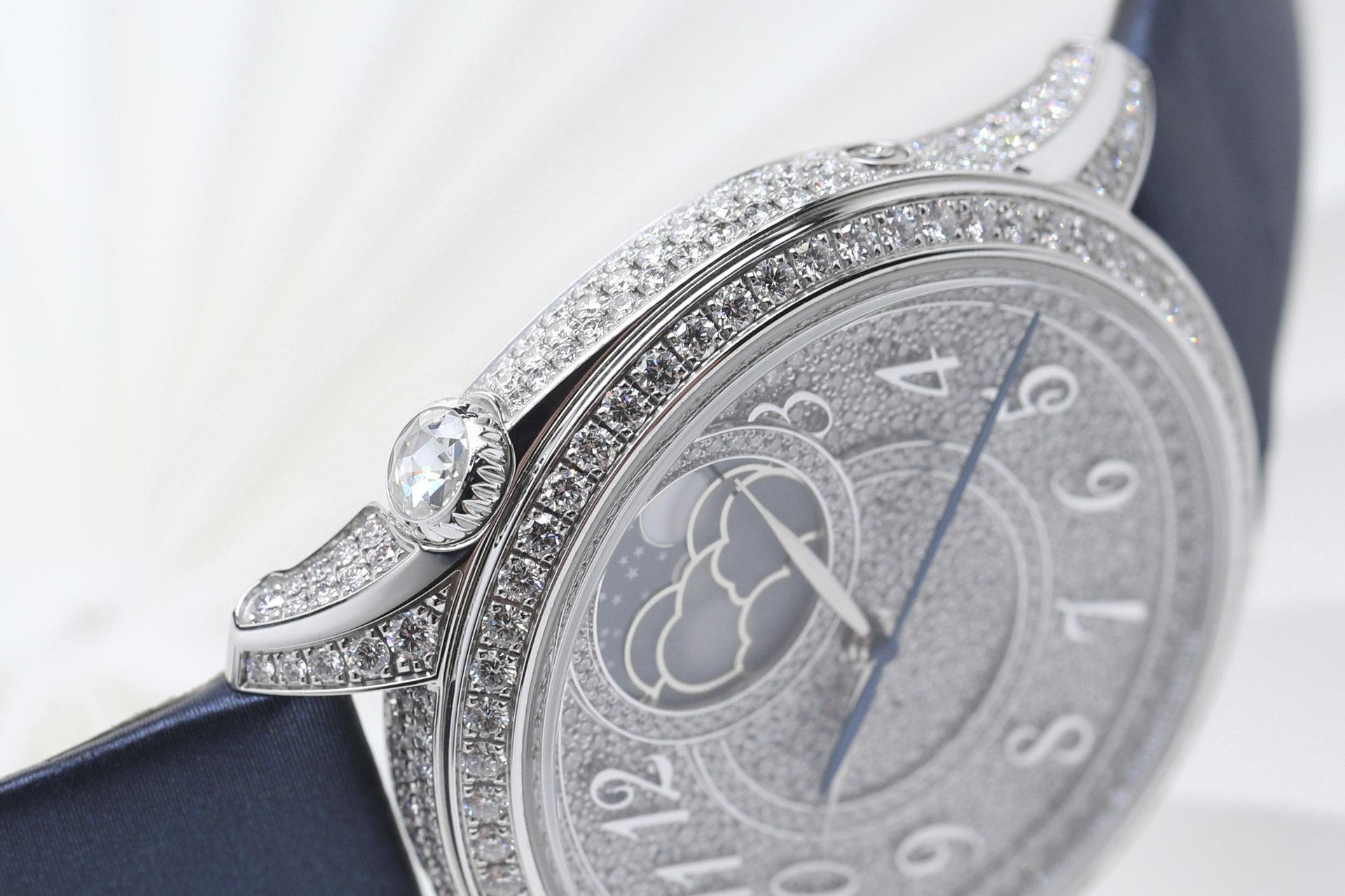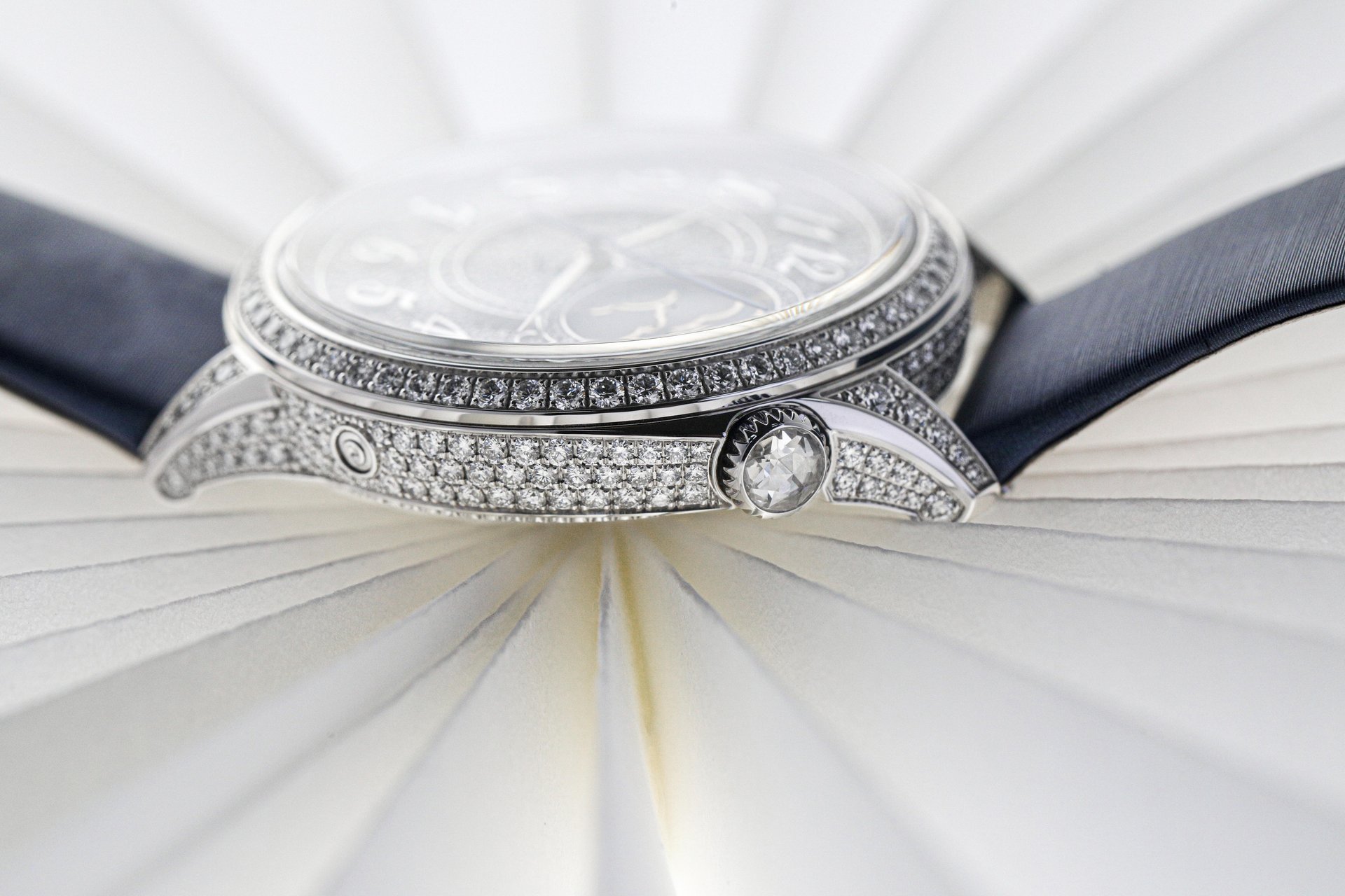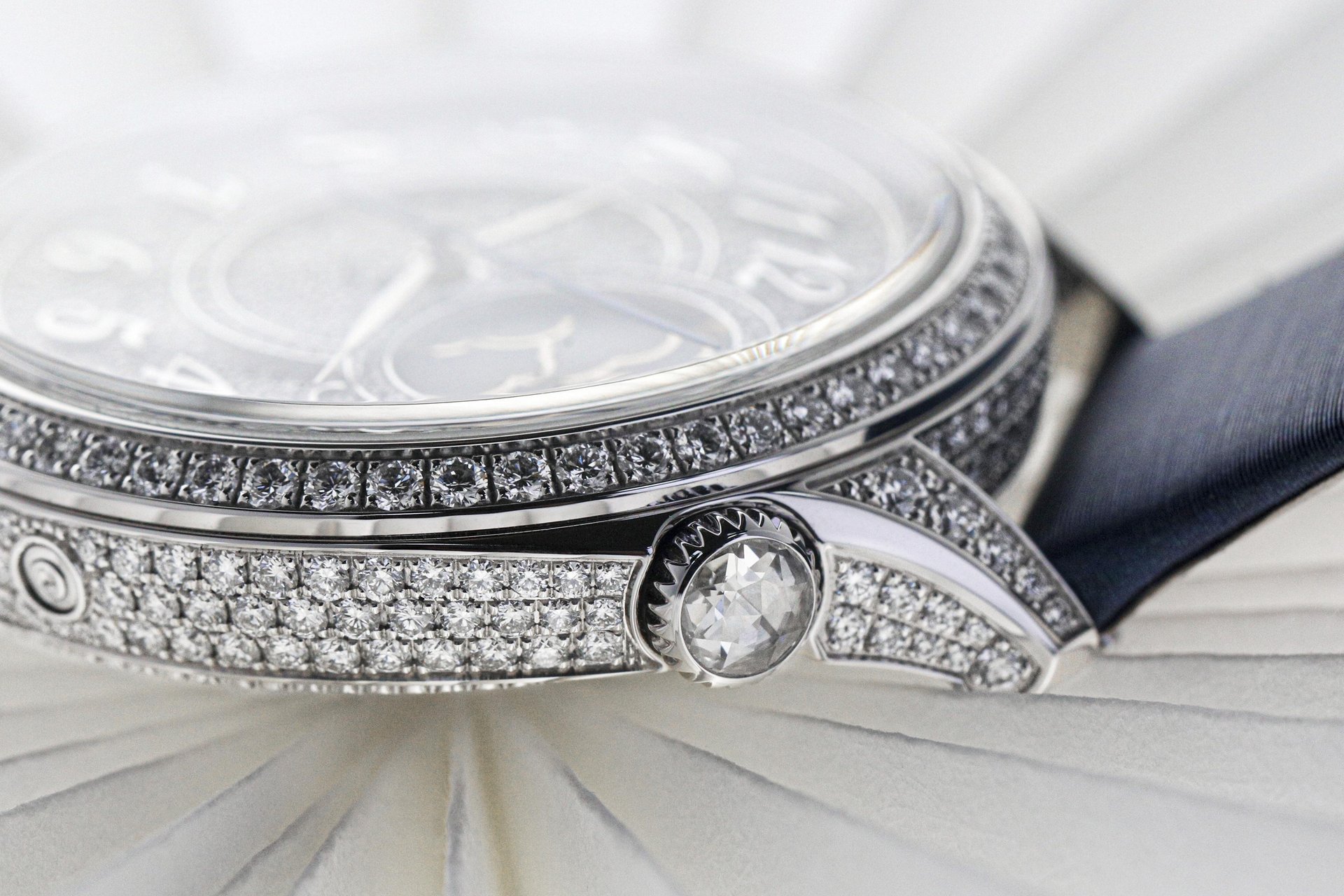 - White gold case set with 292 round-cut diamonds (~3.00 ct)