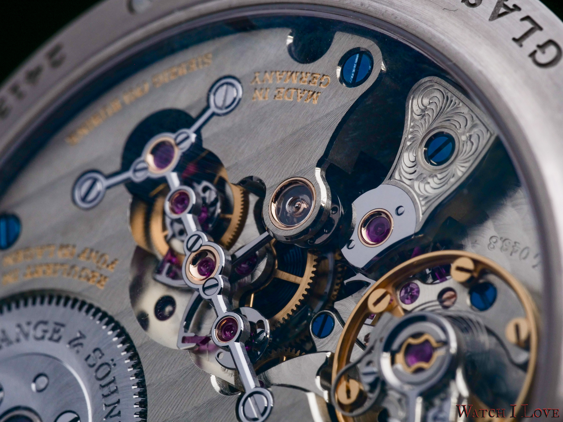 A. Lange & Söhne Zeitwerk Date is powered by a new movement, the Calibre L043.8. The movement is significative more complex than the predecessor, L043.8 using 516 parts, in opposite with the 415 found inside the L043.1.