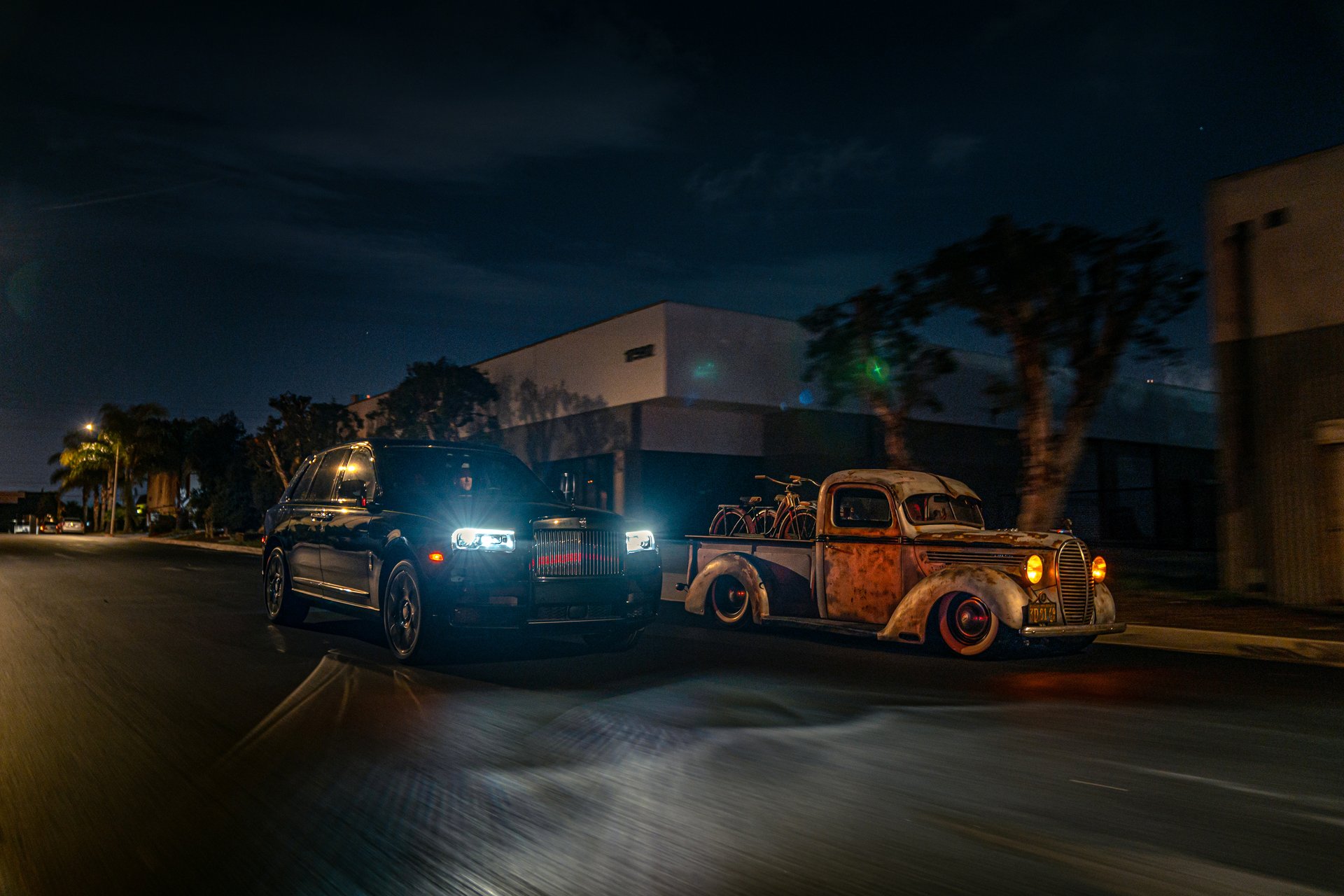 To celebrate the arrival of this transformative motor car, automotive culture photographer, Mark Riccioni, was invited by Rolls-Royce to create a pictorial series of Black Badge Cullinan greeting fellow automotive subcultures in Greater Los Angeles, California. Following his assemblage of these exceptional vehicles, each of which acutely represents the subculture it belongs to, he captured each encounter under the cover of darkness.