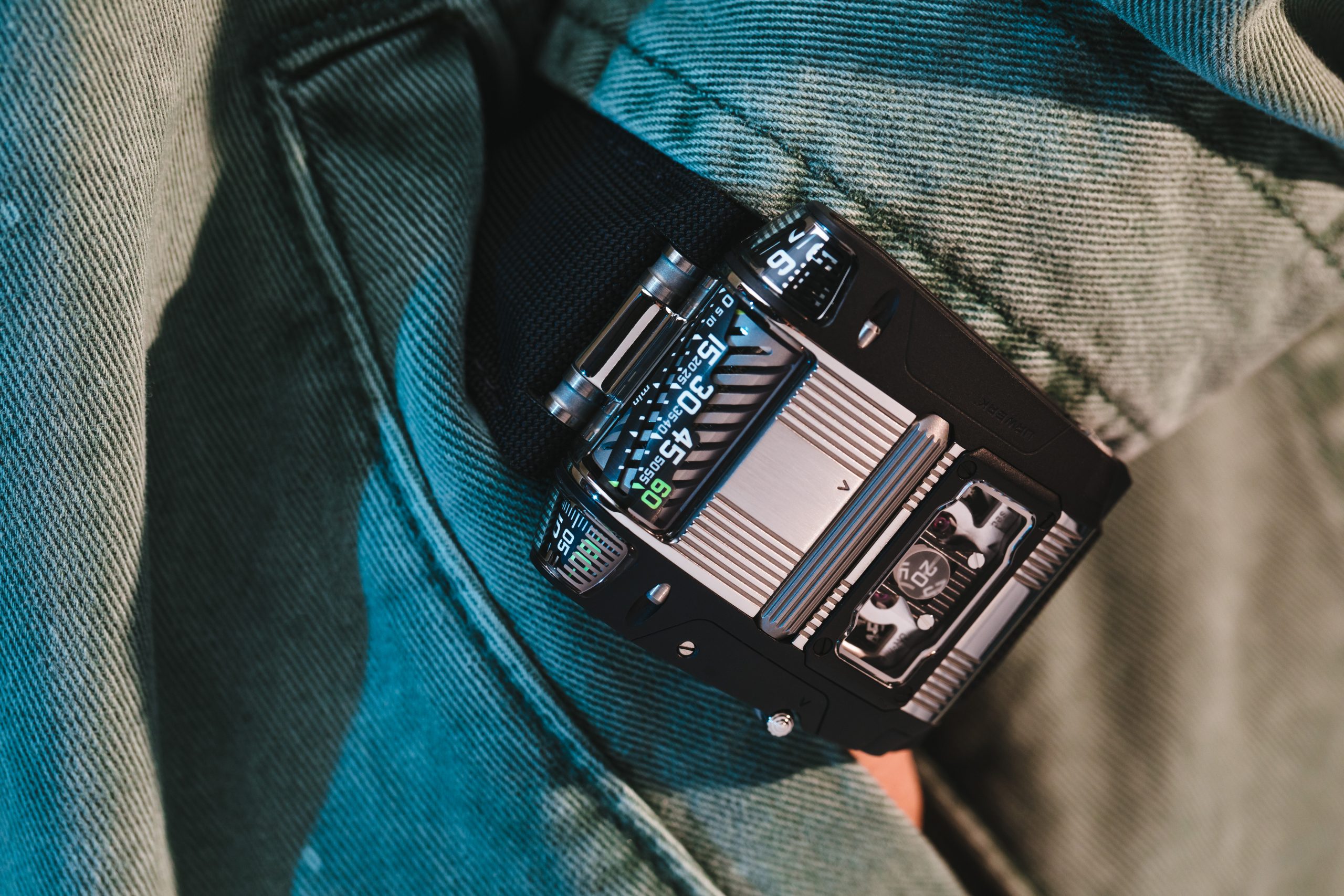 The third and, in many ways, most stimulating new concept that the UR-111C introduces is its fresh take on the crown, for winding and setting. Doing away with the conventional, side-mounted winder, URWERK’s new piece introduces a roller system, positioned right across the middle of the case top. Rolling will further charge the watch’s self-winding movement. When small lever to the right side of the case is released, the same roller can be used to set the time, with stop-seconds functionality.