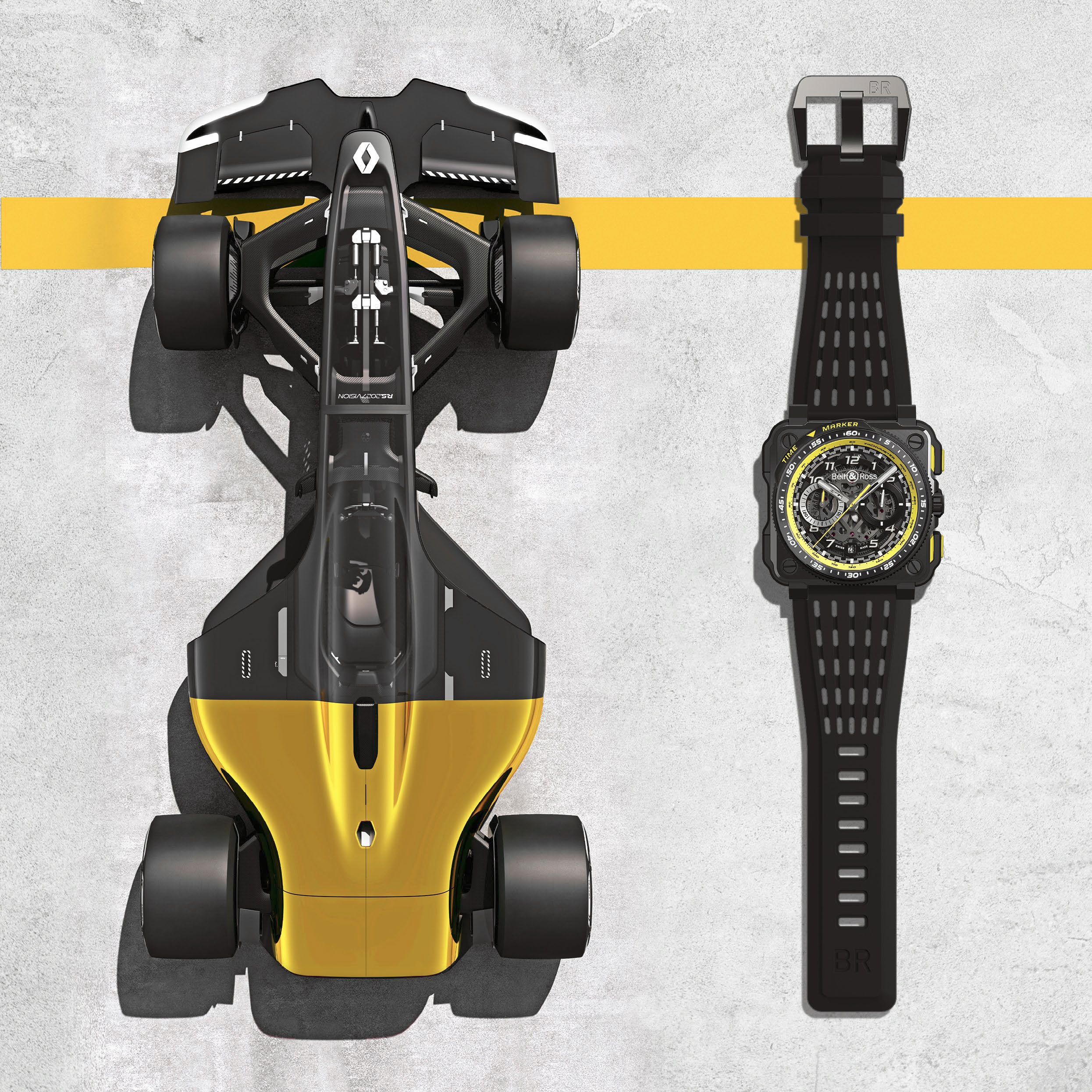 “These R.S. models showcase our expertise, our DNA and are in harmony with the design scope of our partner, the Renault F1® Team”, explains Bruno Belamich, Bell & Ross’s Creative Director.