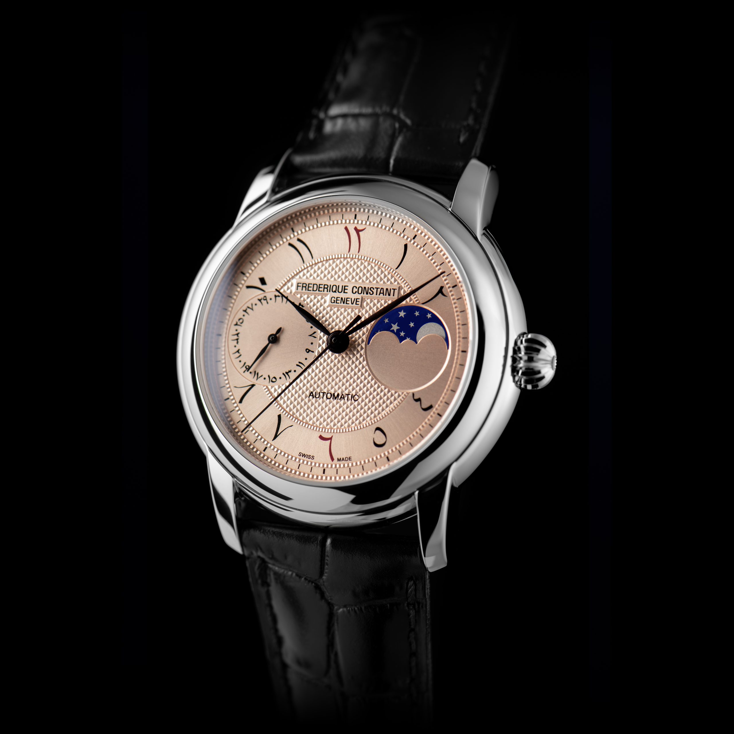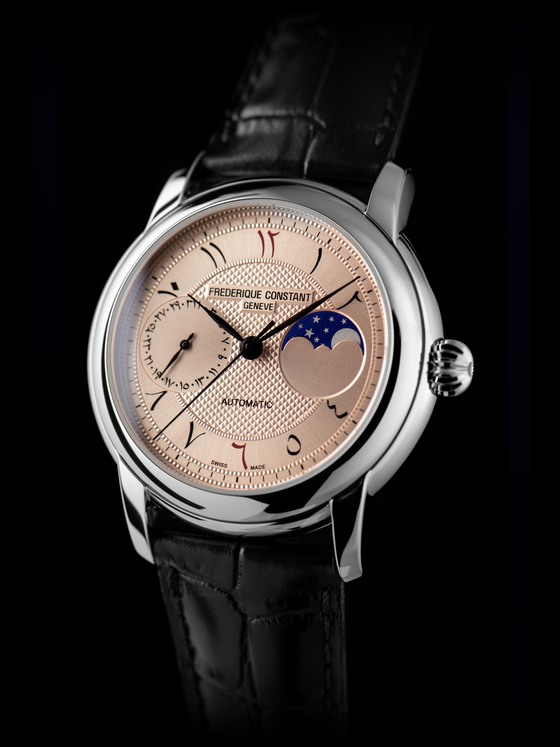 Not less than three exclusive Manufacture models have been created for the occasion. If you visit the boutique, you will be able to admire a Classic Worldtimer Manufacture and a Classic Tourbillon Perpetual Calendar Manufacture offering a unique dial design with the maroon colour of Qatar’s flag. The third limited edition is a Classic Moonphase Manufacture offering a FC-712 in-house calibre, featuring hours, minutes, date counter and moon phase display with a specific salmon colour dial and black printed Arabian numeral indexes.