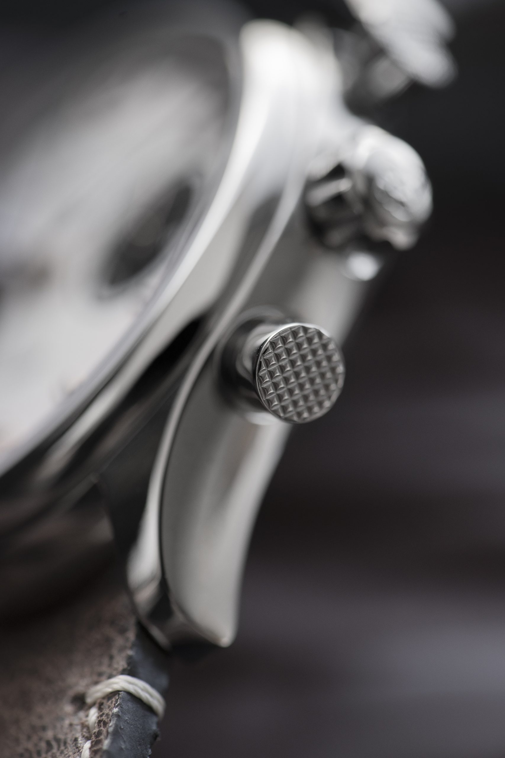 The limited-edition timepiece with a diameter of 42 mm, which offers enough space for excellent readability, appears as a stainless steel version. The use of stainless steel ensures excellent values and properties in terms of weight and robustness. The domed sapphire crystal over the dial is shock and scratch-resistant, making it the ideal material for the various stresses of racing. Thanks to its water-resistance of 0.5 bar (5 meters), the timepiece also proves itself optimally outdoors.