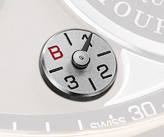 The Equation of Time merits further explanation. Horology seeks to measure time as regularly as possible; however the Earth orbits the Sun in an elliptical path. As the Earth sweeps close past the Sun, the period between successive solar zeniths, or the solar day’s length, changes. This causes the difference between solar time and mean time to vary from a few seconds to as much as 16 minutes during the year. The Equation of Time is the conversion factor between solar and mean time. To read solar time, simply look at the back subdial for the displayed date’s Equation of Time.