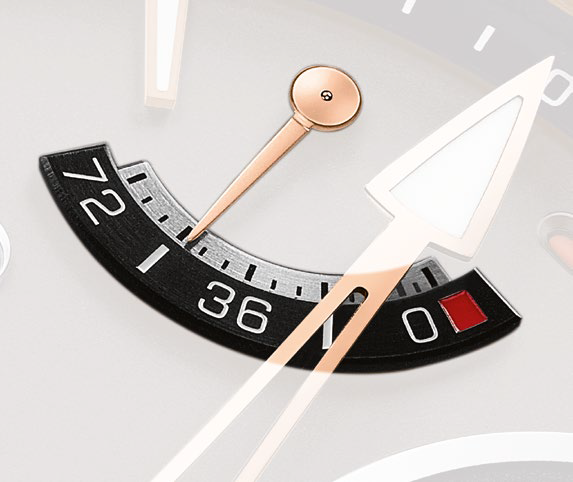- Small seconds, power-reserve and leap year indicator hand in polished blued steel