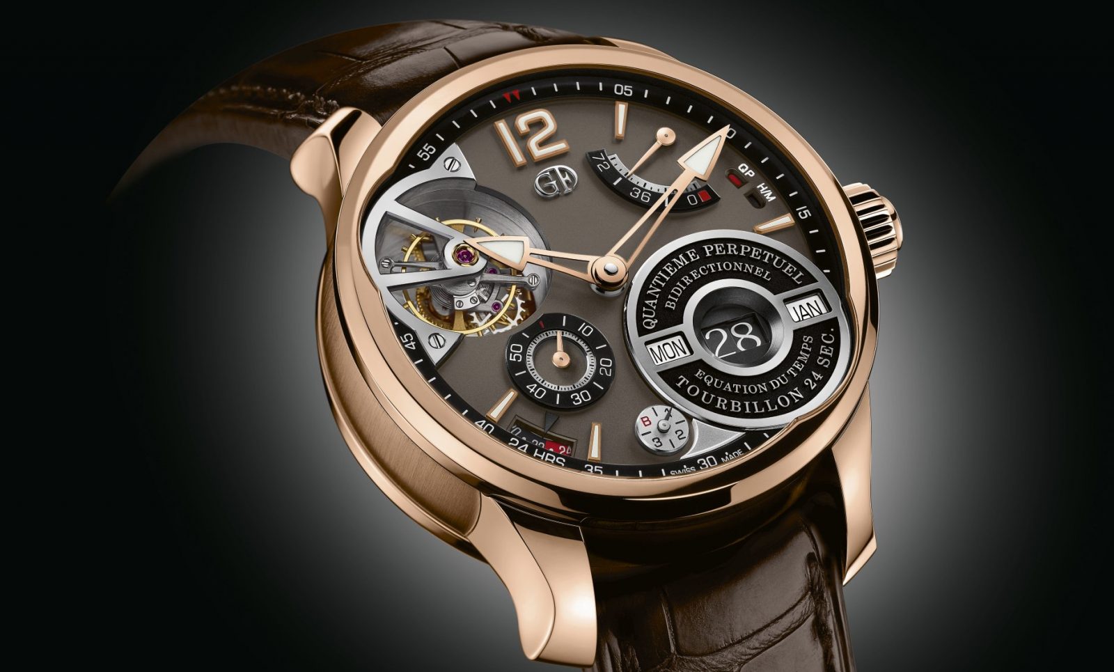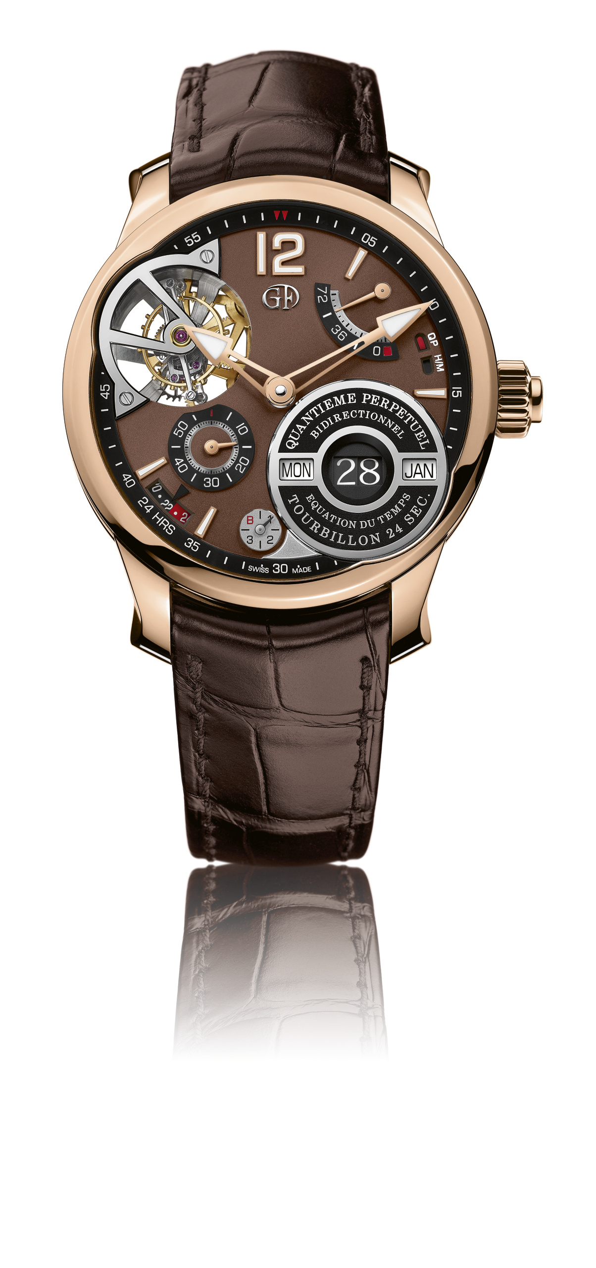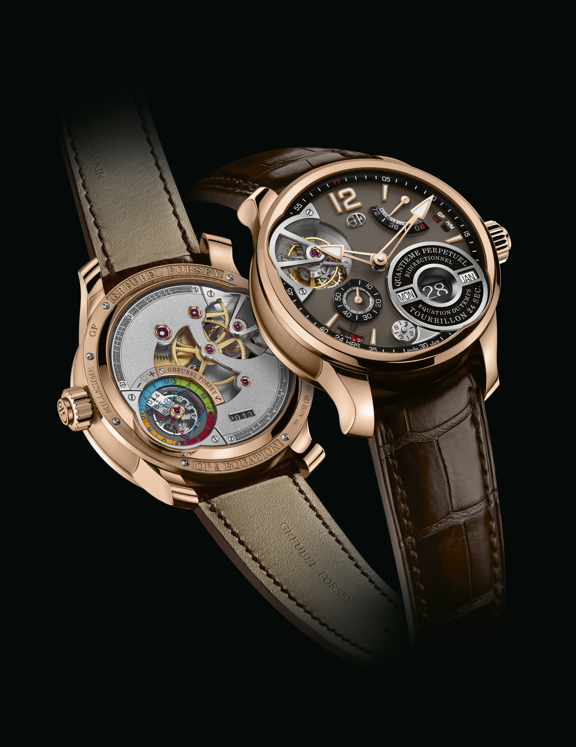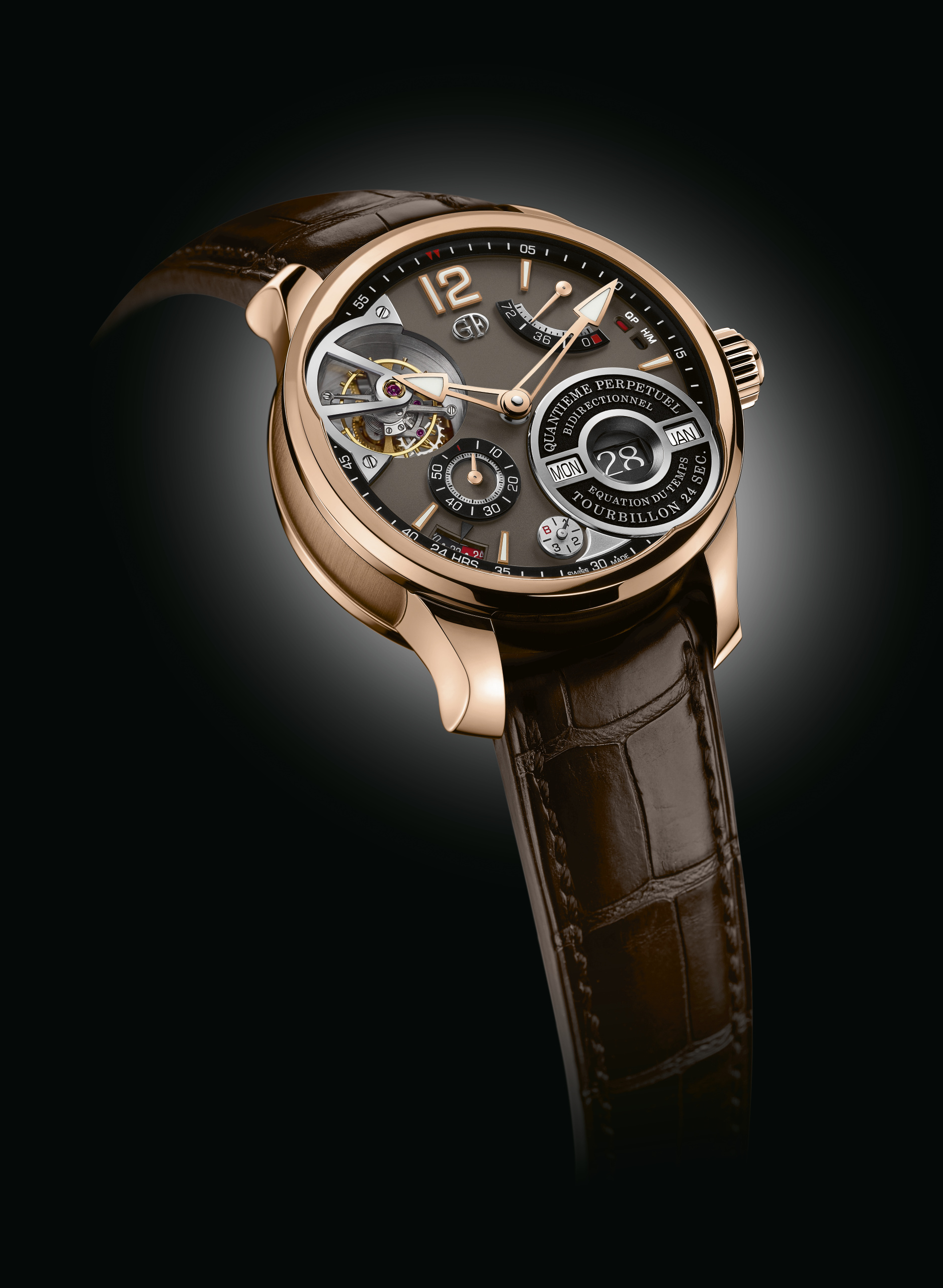 Following the GPHG (Grand Prix d’Horlogerie de Genève) award for the best Calendar Prize, Greubel Forsey presents its QP à Équation in a 5N red gold millesime with a chocolate coloured gold dial. By reinventing the prestigious perpetual Calendar (QP), with the QP à Équation, Greubel Forsey demonstrates through their art of invention that the history of mechanical watchmaking remains in a perpetual state of evolution.