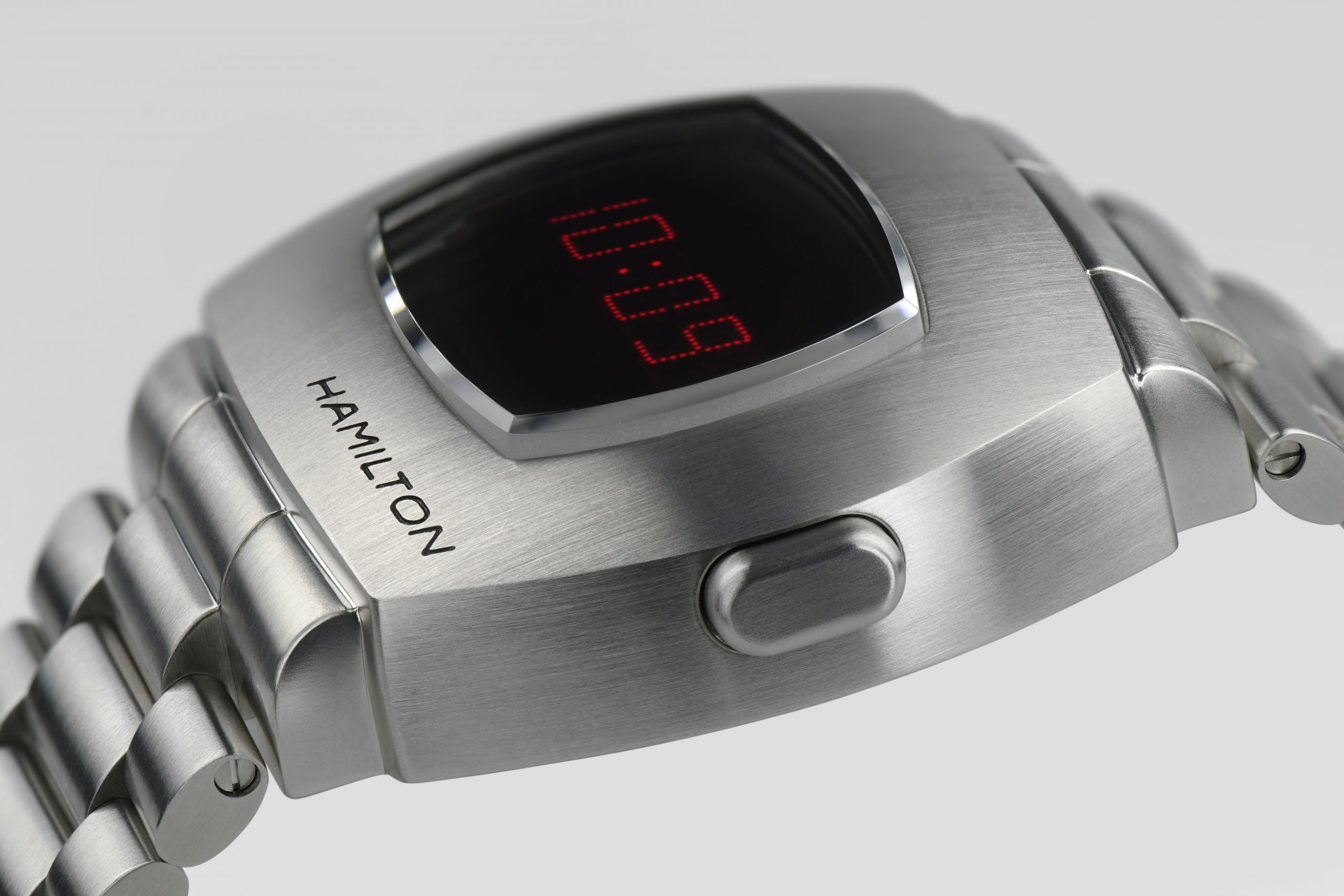 The original digital wristwatch is back. The Hamilton Pulsar was one of the emblematic creations of the space-age era. Its groundbreaking technology disrupted the market, and its futuristic looks made it a favorite of forward thinkers and style leaders including Jack Nicholson, Joe Frazier, Elton John and Keith Richards. With the Hamilton PSR, we’re proud to bring back the unmistakable style of the digital watch that changed the world.