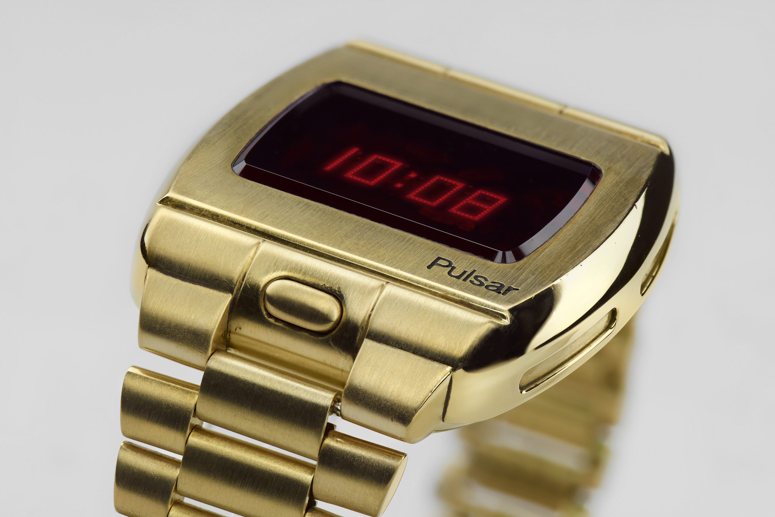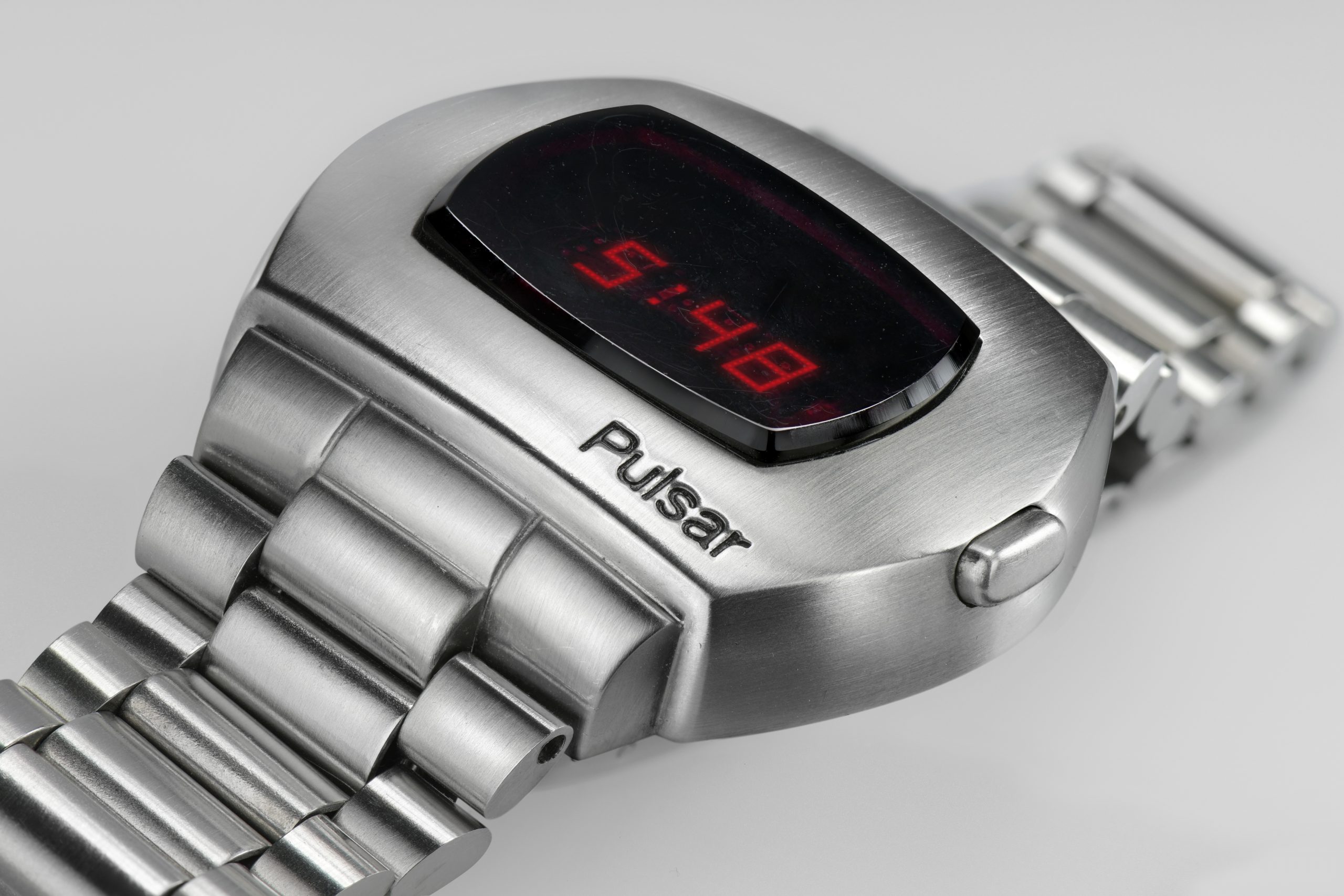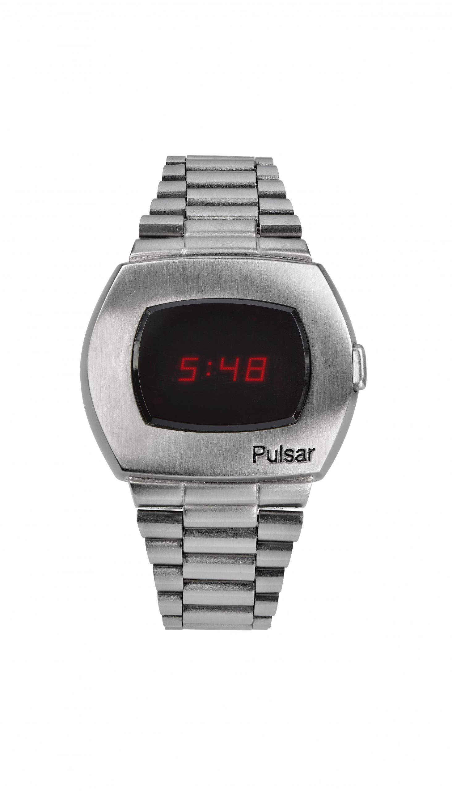 By the following year, the wrist computer was ready for the general public. The stainless steel Pulsar P2, with a more rounded case design and an improved chip module, launched in 1973, pioneering the nascent market for digital watches. Produced in large volume, it was a colossal success. Among those to wear it were Keith Richards, Joe Frazier, Elton John, Giovanni Agnelli and U.S. President Gerald Ford. It was the epitome of cool.