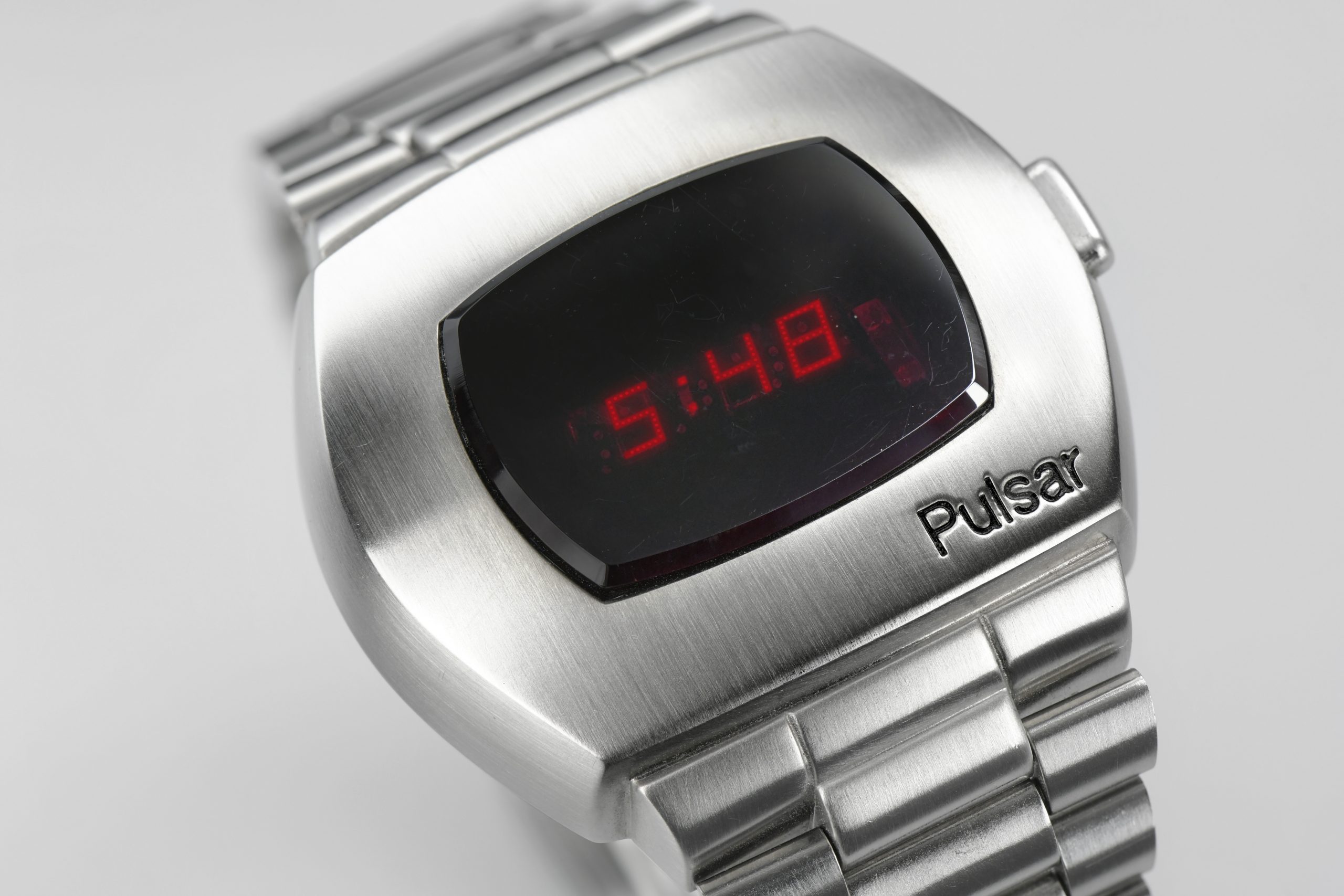 The public received its first glimpse of the Pulsar prototype on the US TV program The Tonight Show, when host Johnny Carson demonstrated its unique functionality: pushing a button on the side of the watch made the time flash in red LED numerals on the dark screen, while holding the button for longer revealed the passing seconds. The watch could be set via a unique magnetic bar hidden in the bracelet.
