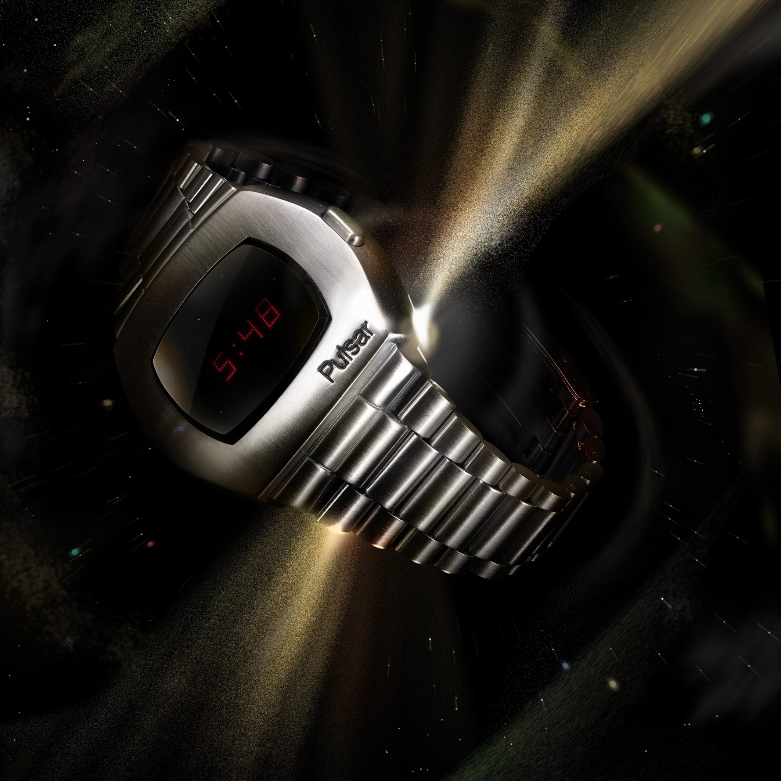 May 6, 1970 stands as one of the most significant moments in wristwatch history. At a press conference in The Four Seasons restaurant in New York City, Hamilton revealed to the world the very first digital electronic wristwatch. Named the Pulsar after the pulsating neutron stars that emit beams of radiation at ultra-precise frequencies, this seemed an object straight out of science fiction, with no moving parts, no ticking sound, and unmatchable durability and accuracy.